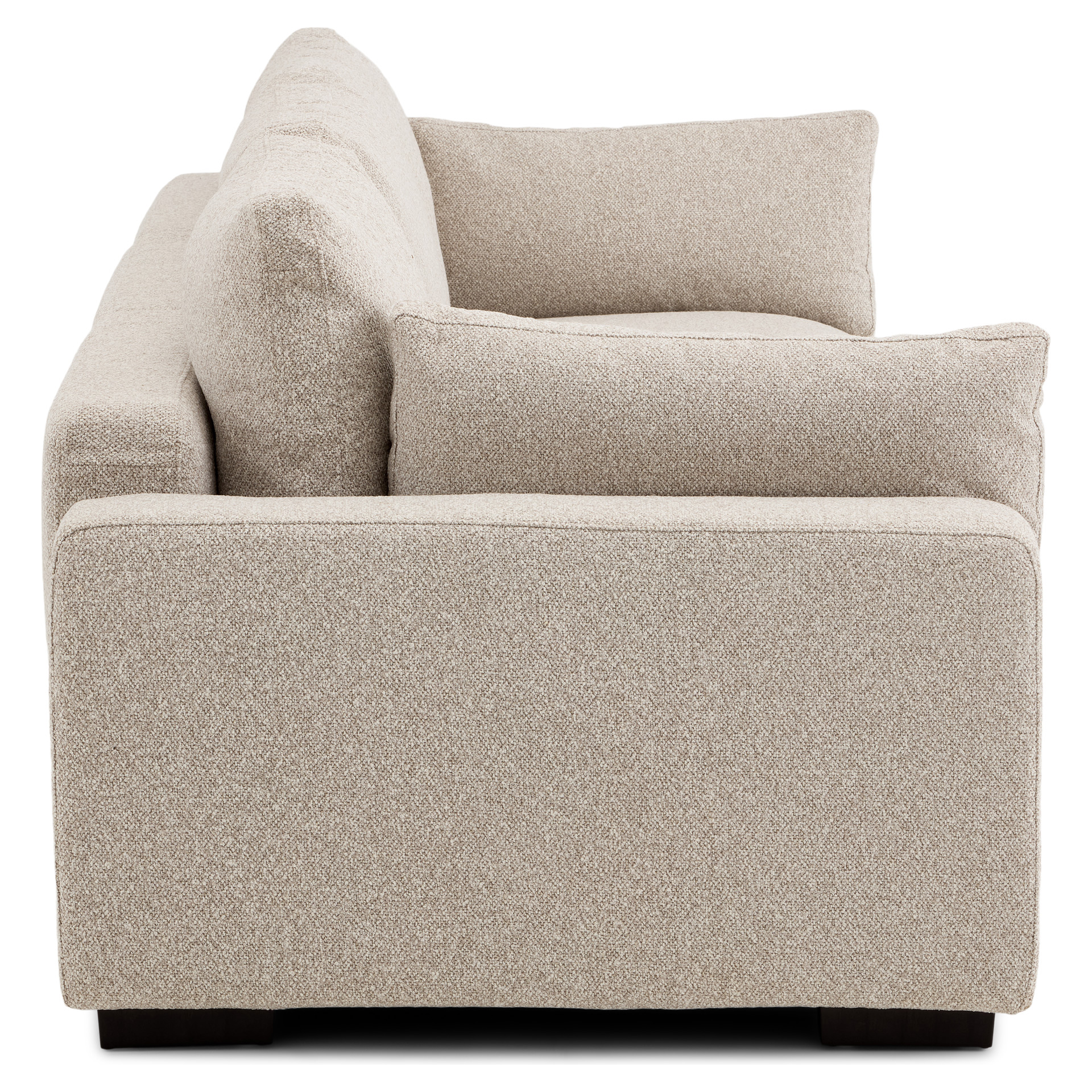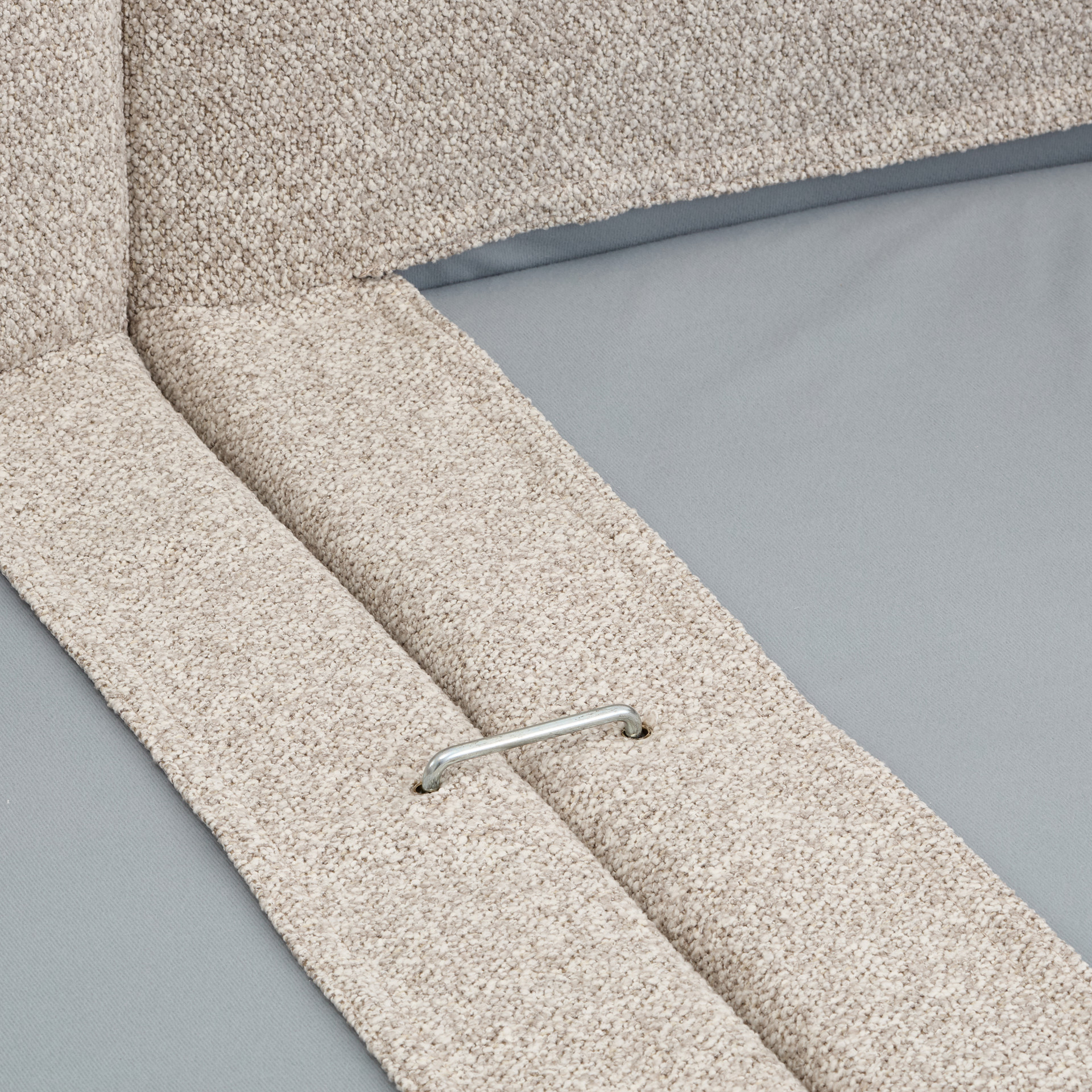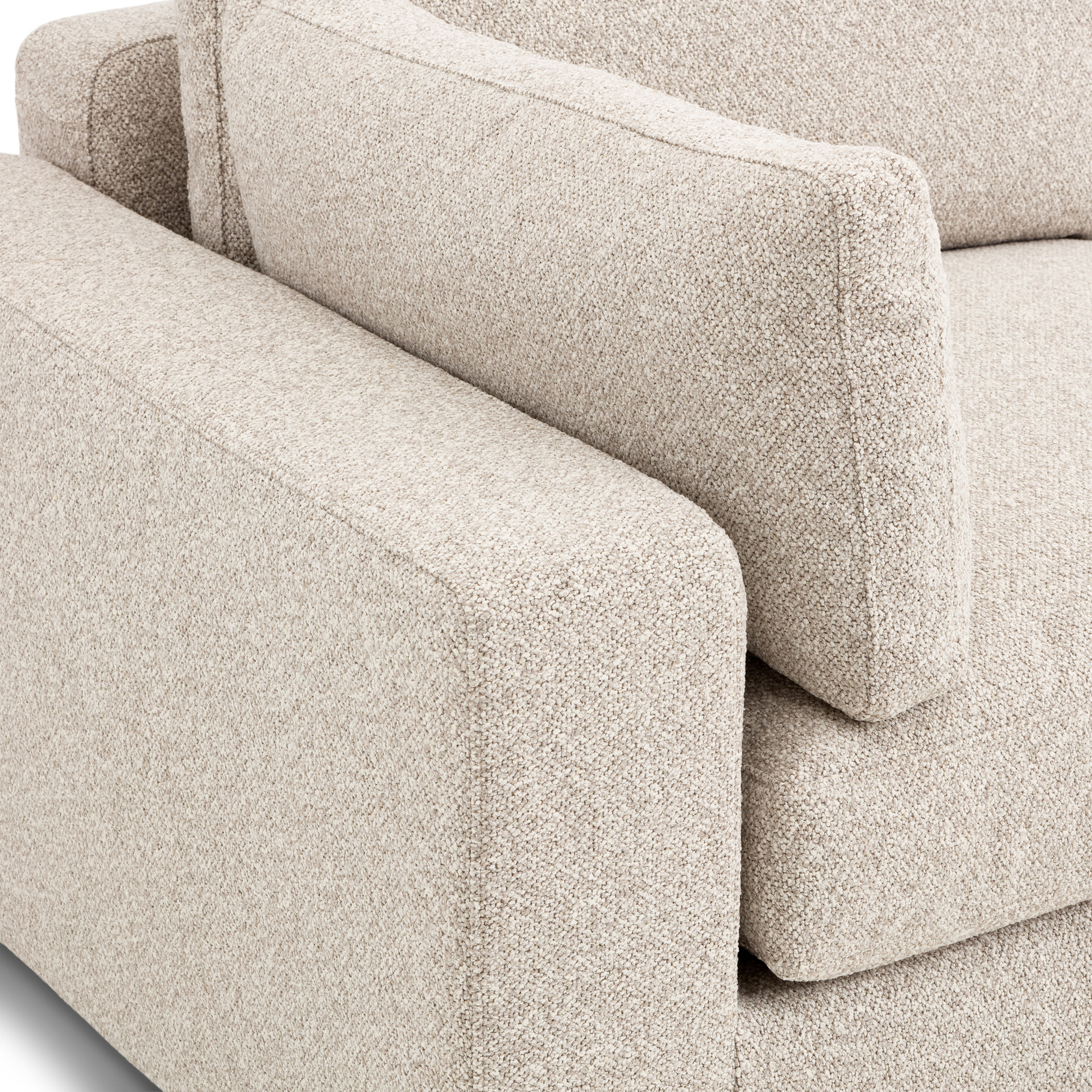 The Onza modular collection redefines modern comfort with its innovative design and luxurious appeal. Available as standard in a tweed greige fabric that blends perfectly with a variety of décor styles, it evokes sophistication and versatility.