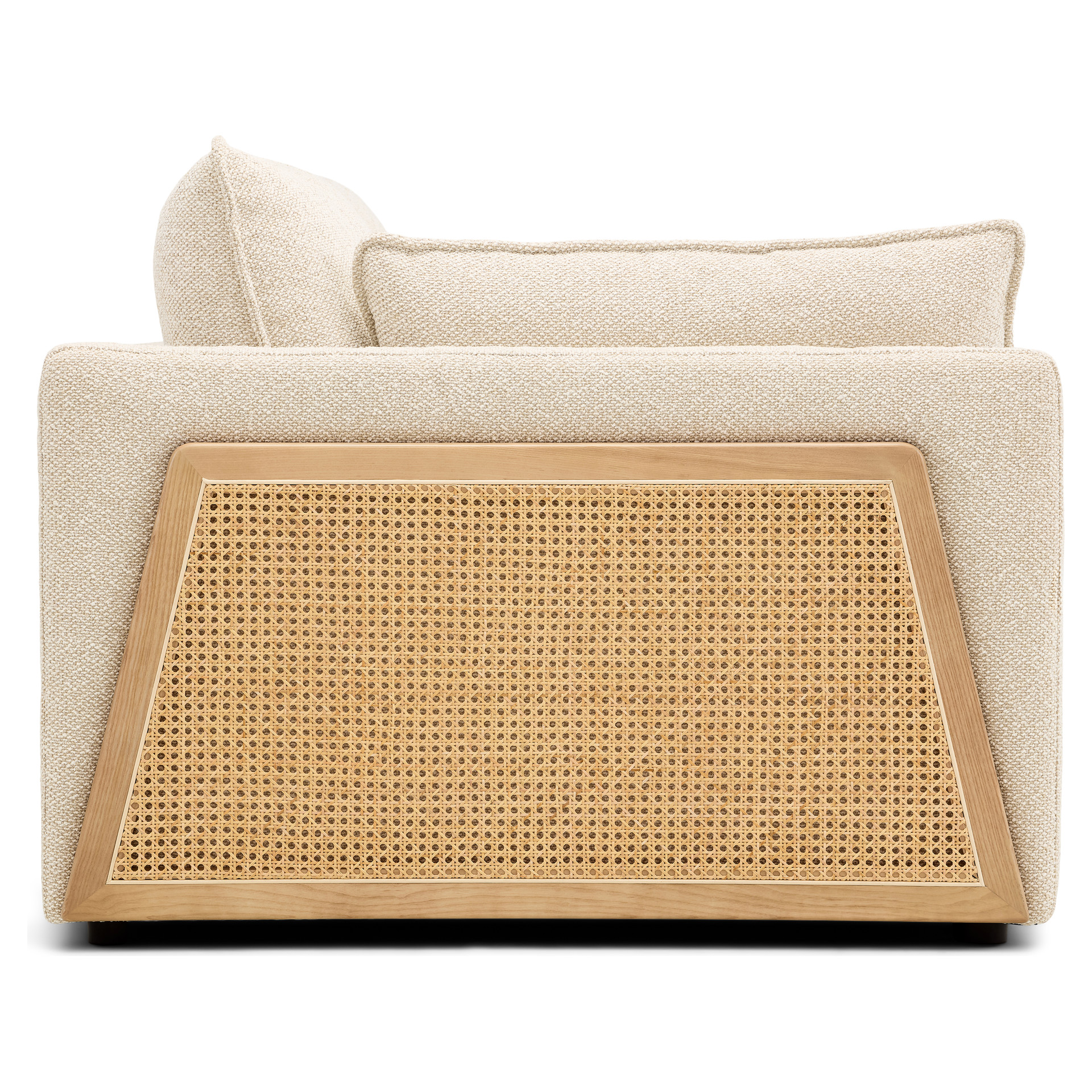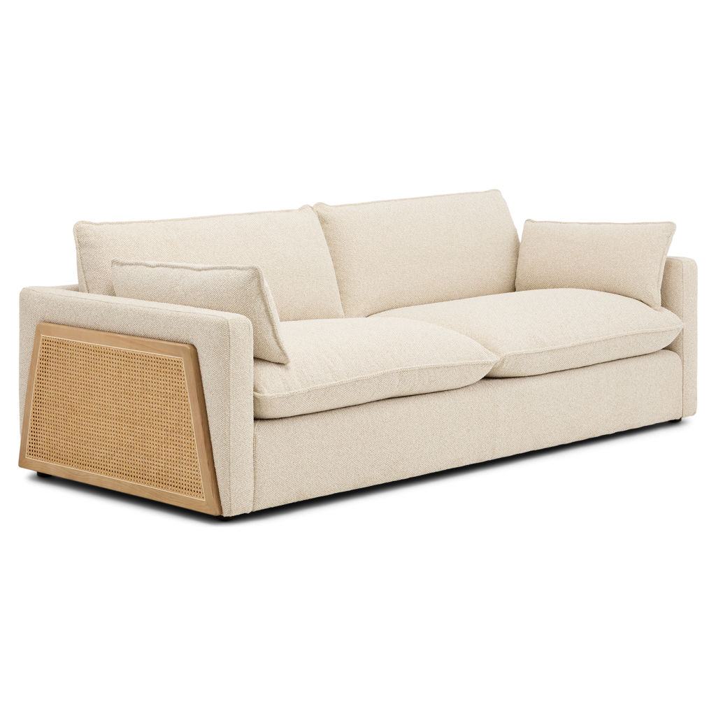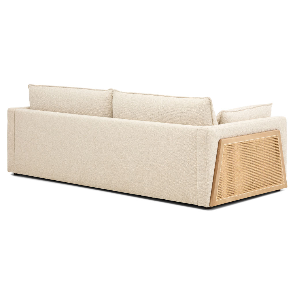 This sofa stands out with its distinctive personality and refined Scandinavian style. The cane detailing brings a warm, handcrafted feel, perfect for creating a cozy, inviting atmosphere.