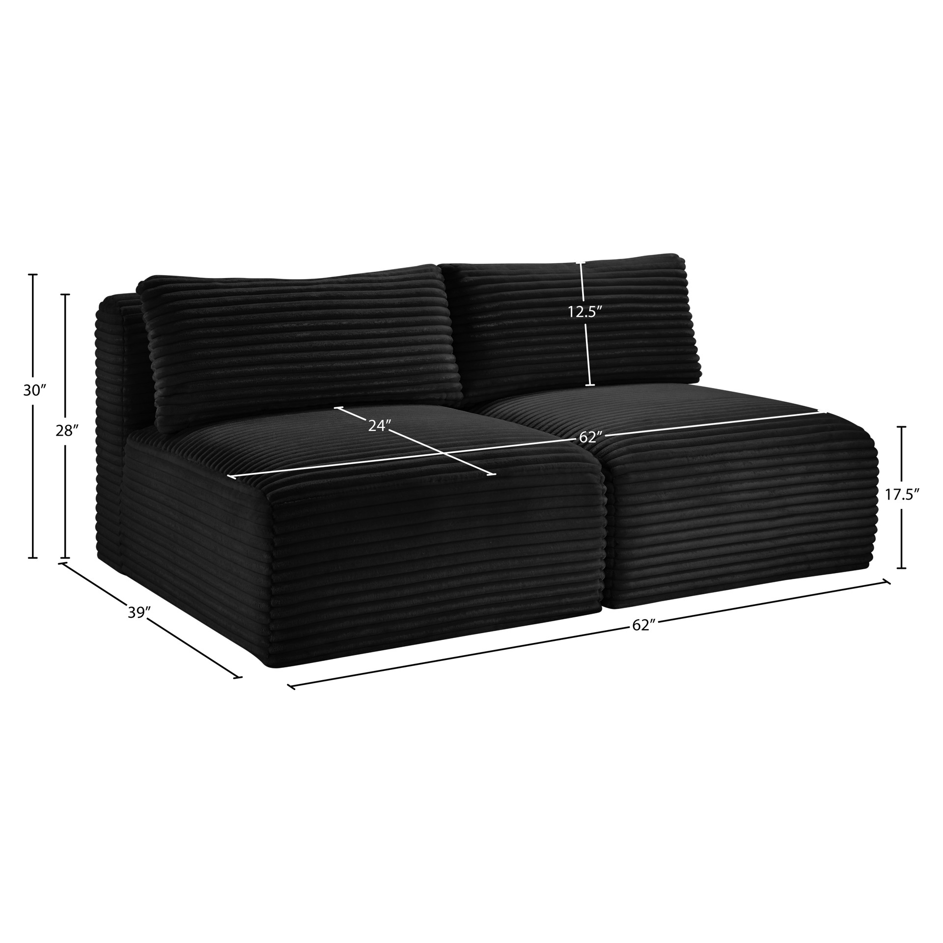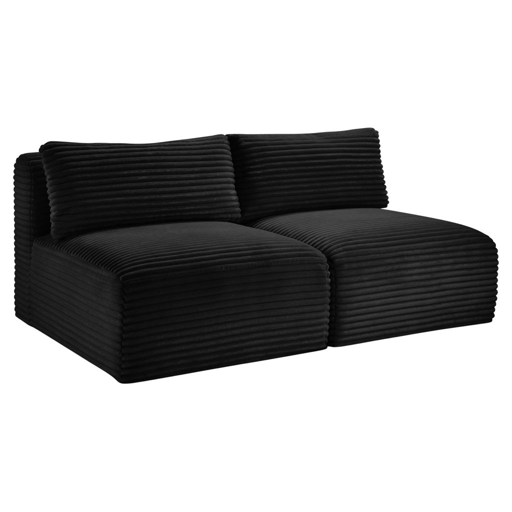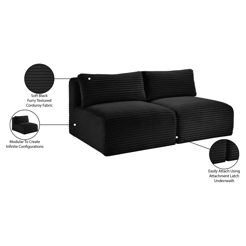 Shaggy 2-Piece Armless Corduroy Modular Loveseat Meridian Furniture 641BLACK-S62
