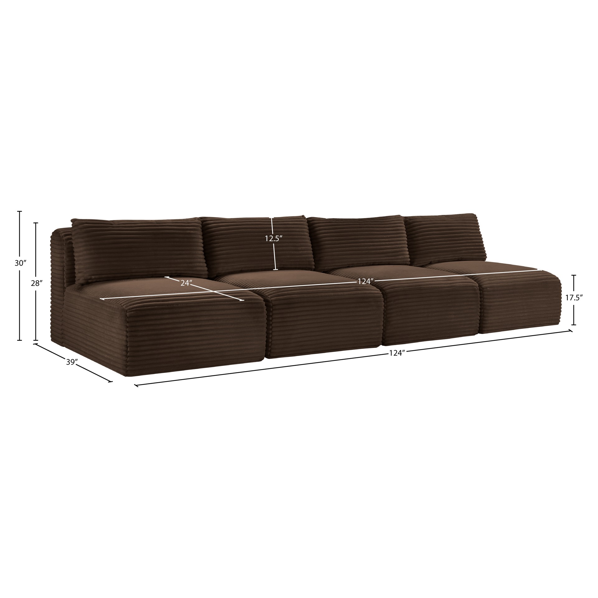 Shaggy 4-Piece Armless Corduroy Modular Sofa Meridian Furniture 641BROWN-S124