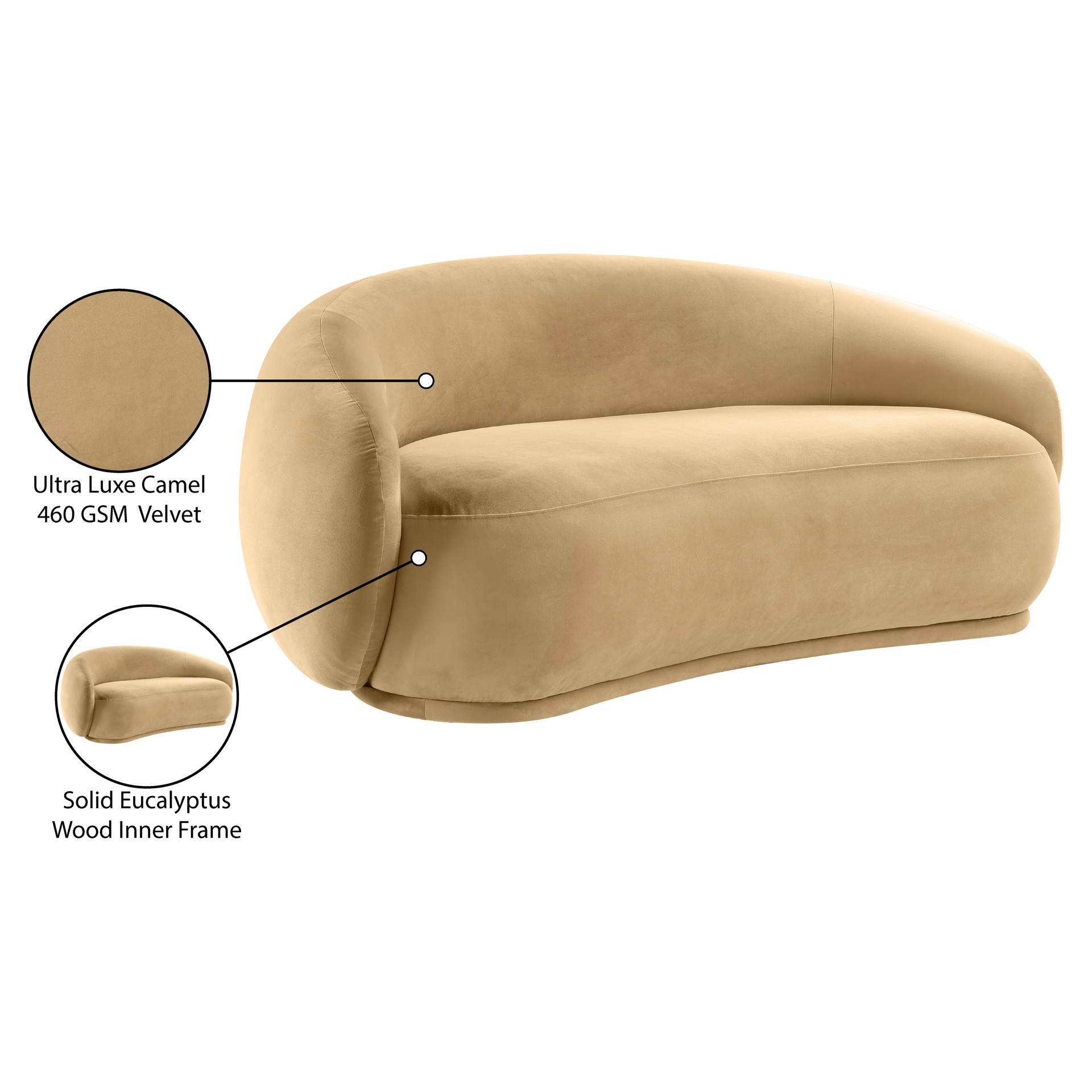 Drift away into a cloud of comfort with the Emery camel velvet loveseat.