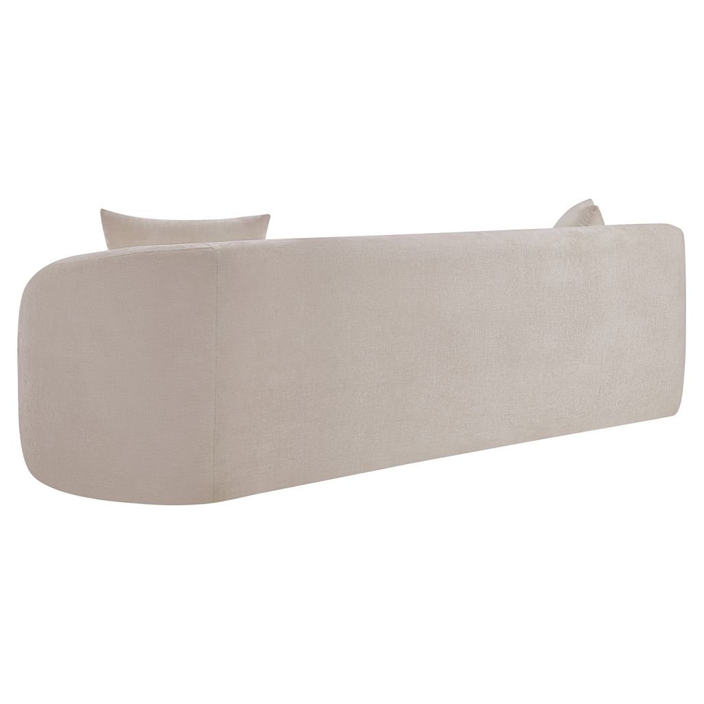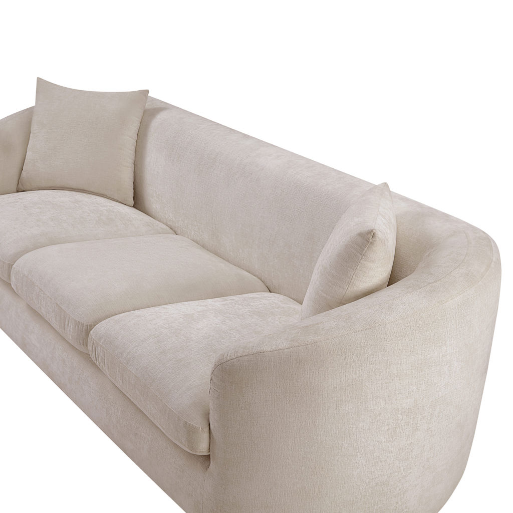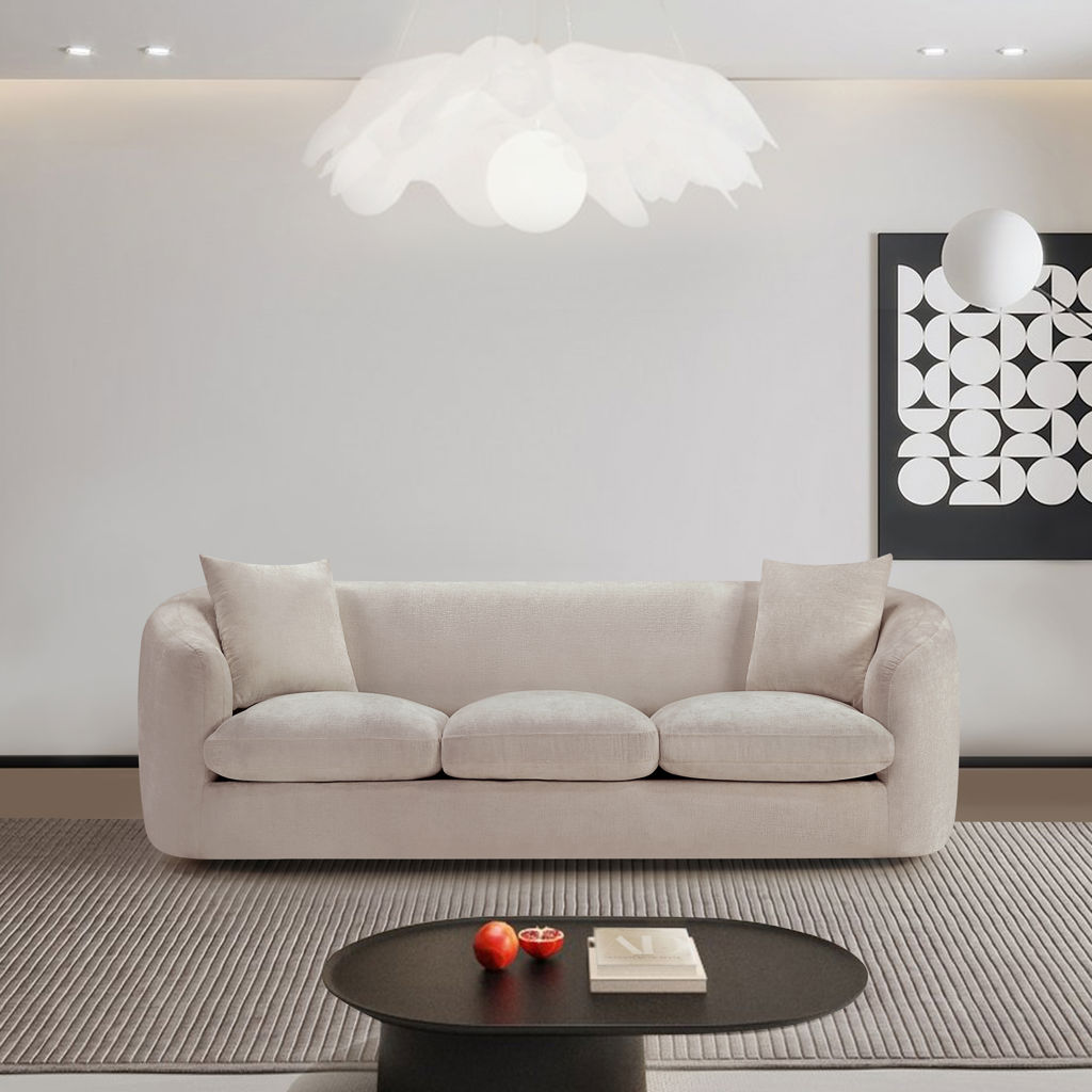 Discover the sophisticated charm of the Penelope sofa, crafted in luxurious soft beige chenille fabric. This elegant piece features a solid wood inner frame for durability and a contemporary design that elevates any space.