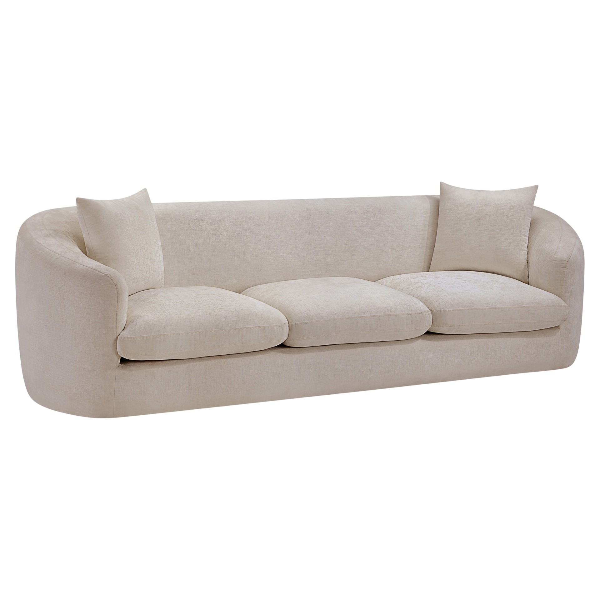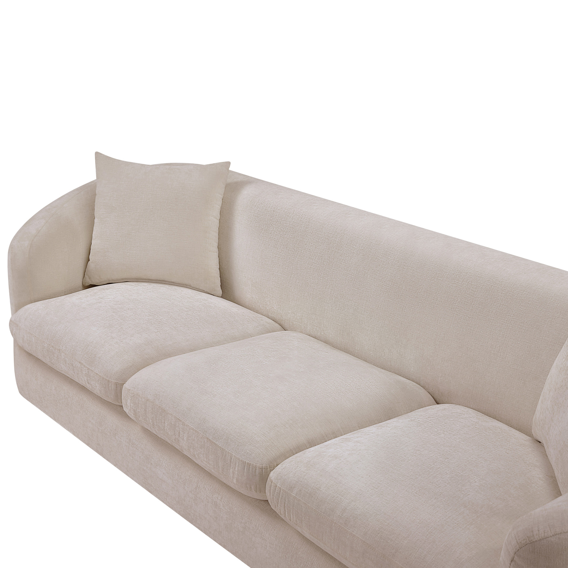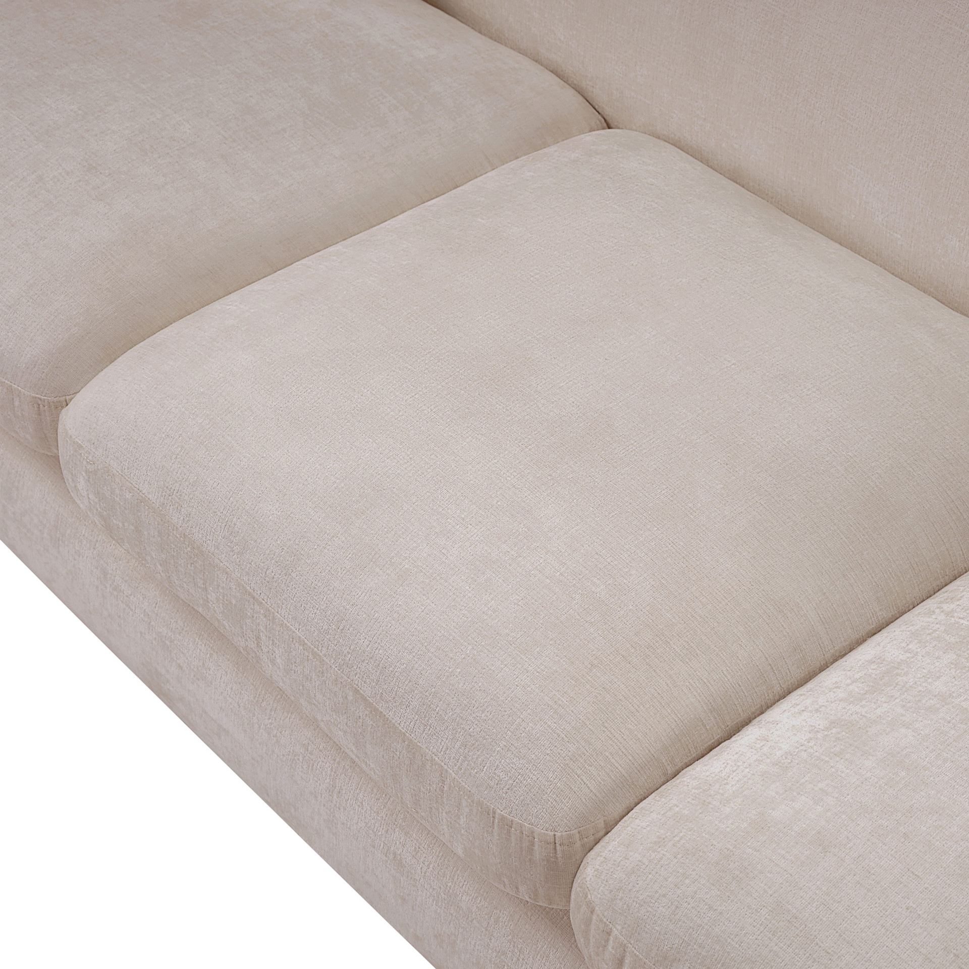 Discover the sophisticated charm of the Penelope sofa, crafted in luxurious soft beige chenille fabric. This elegant piece features a solid wood inner frame for durability and a contemporary design that elevates any space.