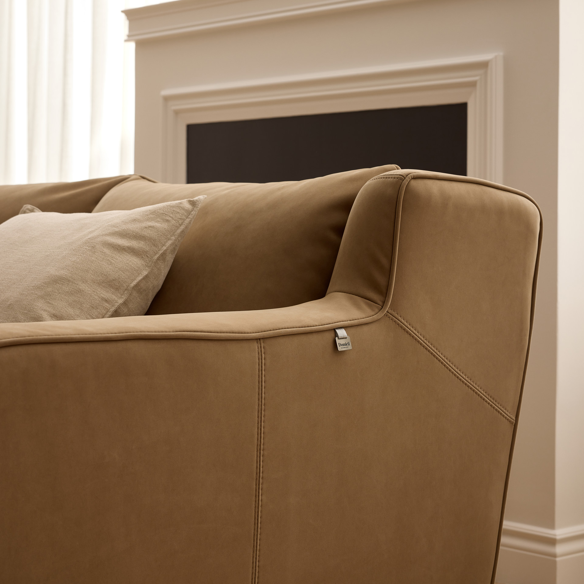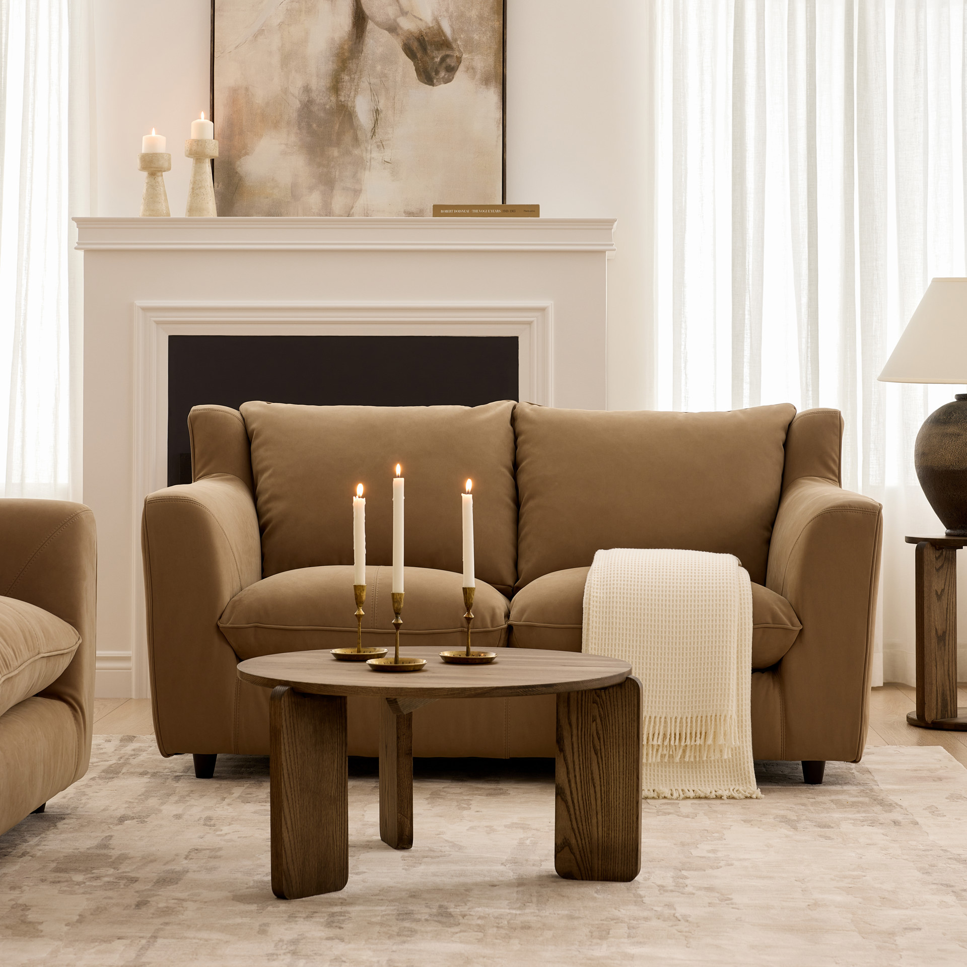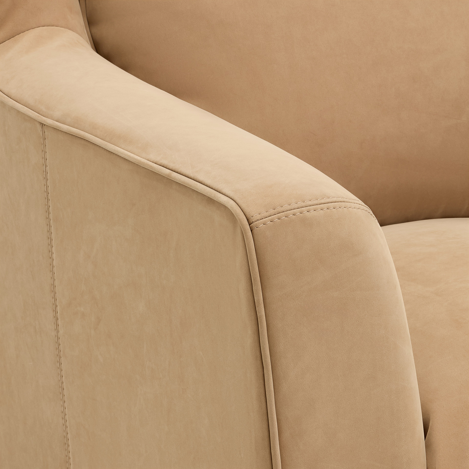 Bring warmth and softness to your space with this 2-seater fabric loveseat in a soothing sand tone.