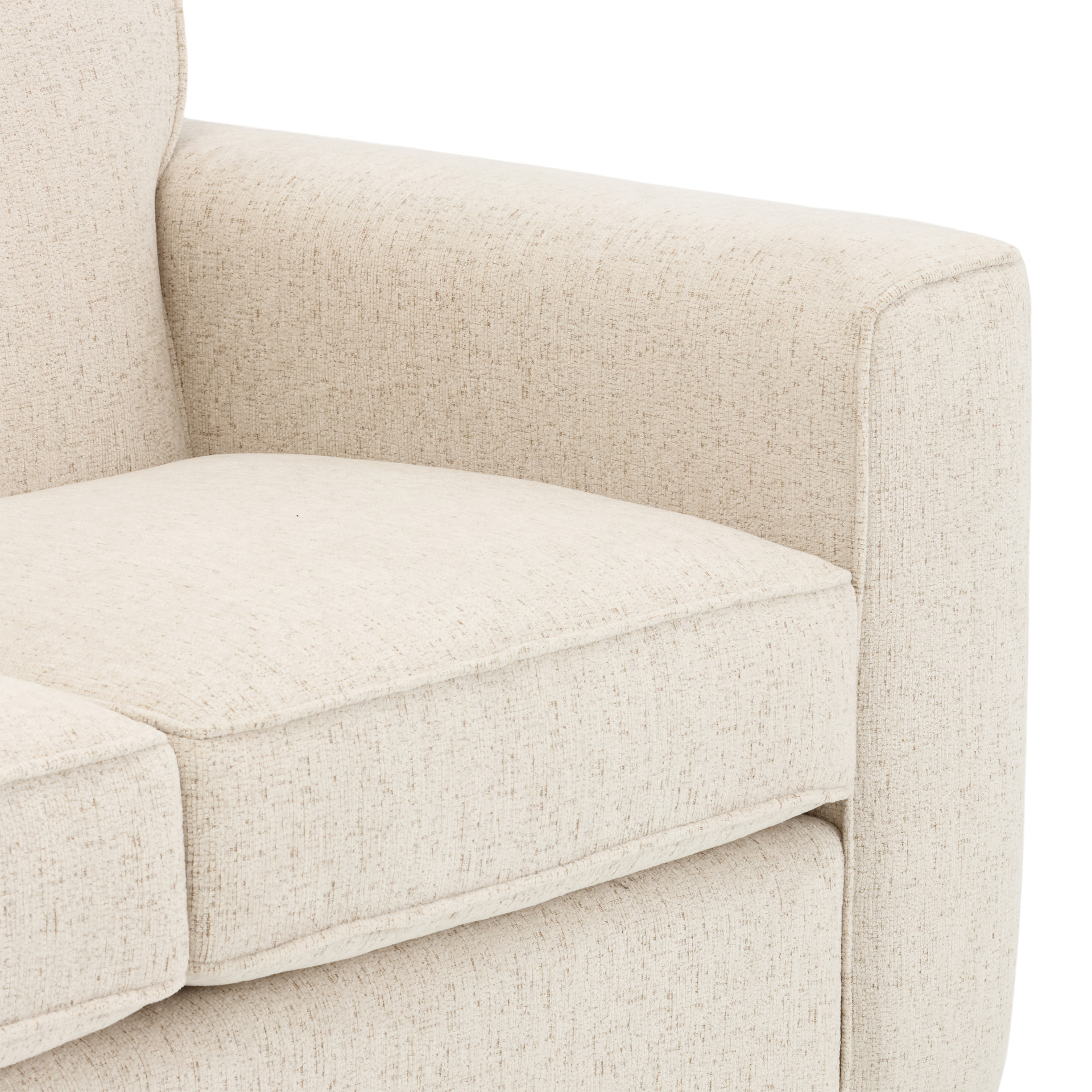 The stationary sofa from the 2705 series is upholstered in a soft ivory/cream fabric that feels pleasant to the touch, perfect for moments of relaxation. Its flat armrests with a contemporary design add a touch of refined elegance, while the plush cushions provide optimal support for superior comfort. Whether for entertaining or unwinding, the timeless style of the 2705 collection fits seamlessly into any décor. Bring chic, comfortable, and carefully crafted furniture to your living room, a choice as beautiful as it is practical.