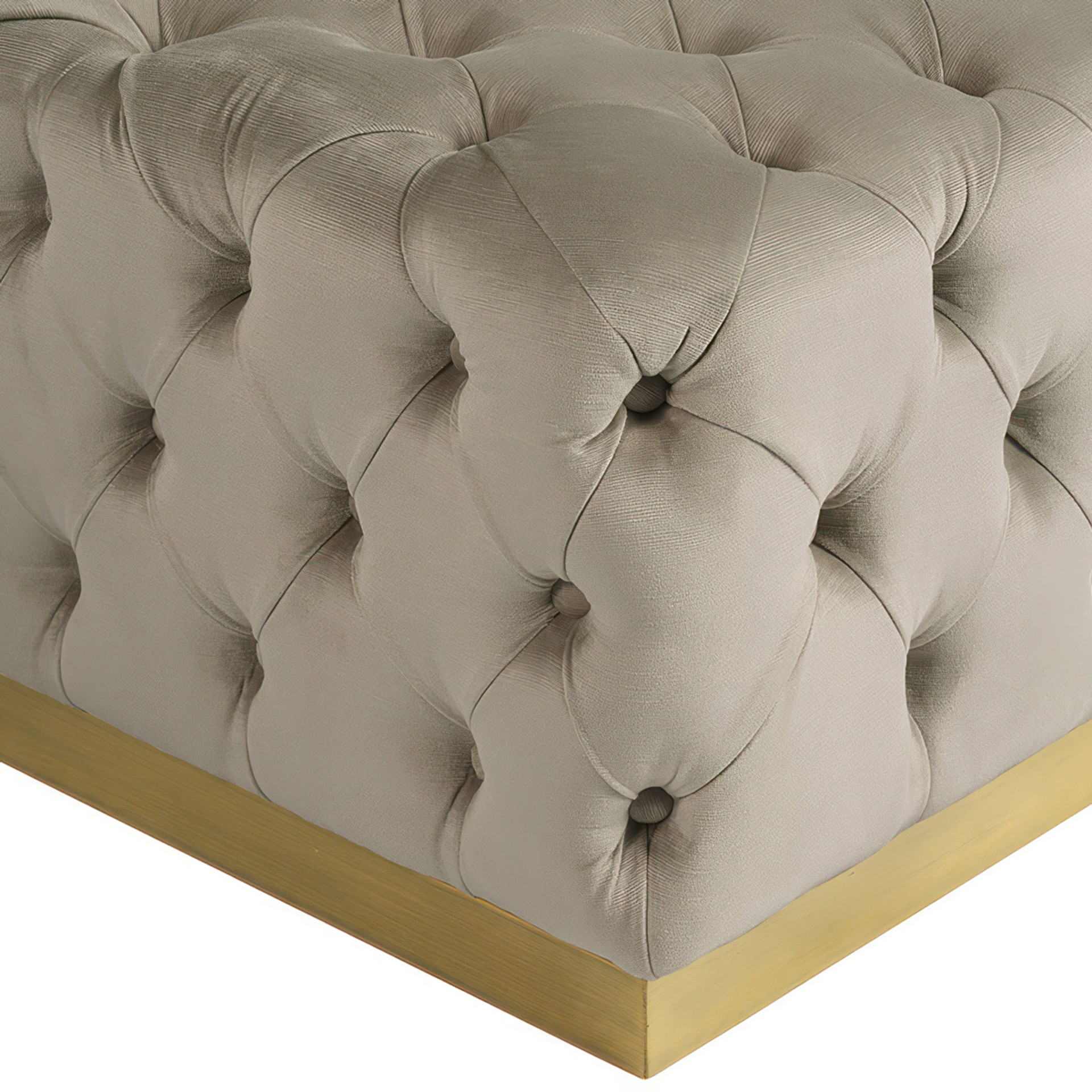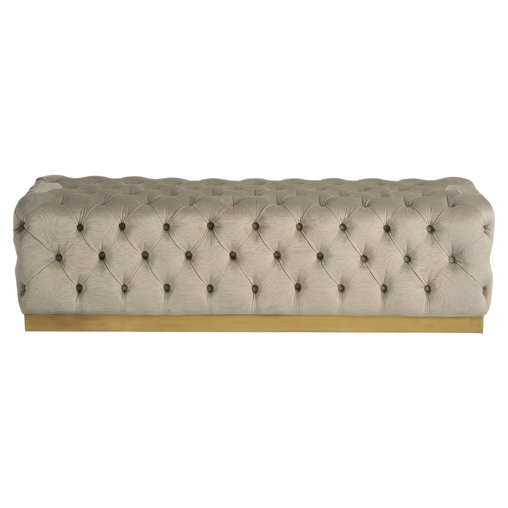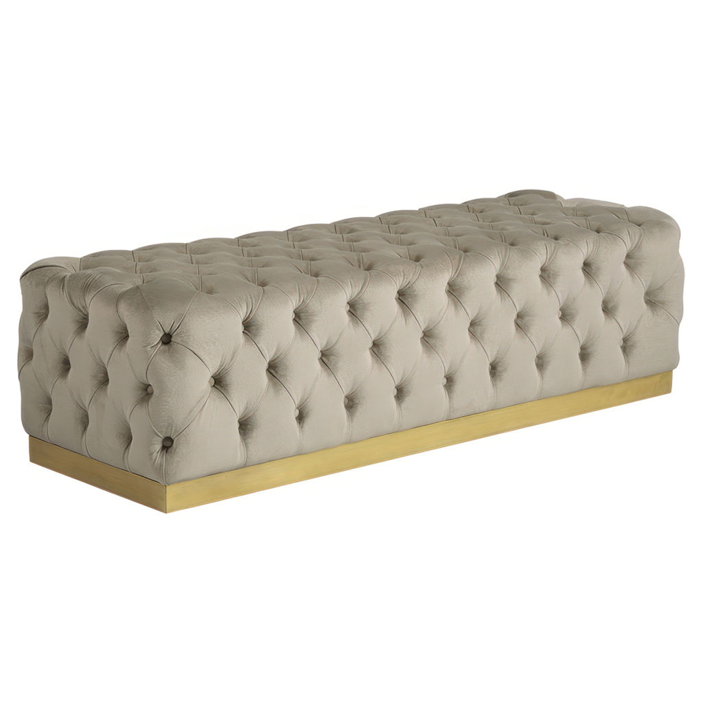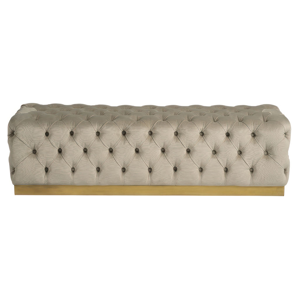 The gold-finished base brings a hint of understated luxury that instantly enhances your interior. Exceptionally versatile, this ottoman fits beautifully at the foot of the bed as a bench, in the entryway for putting on shoes, or in the living room as an accent coffee table.
