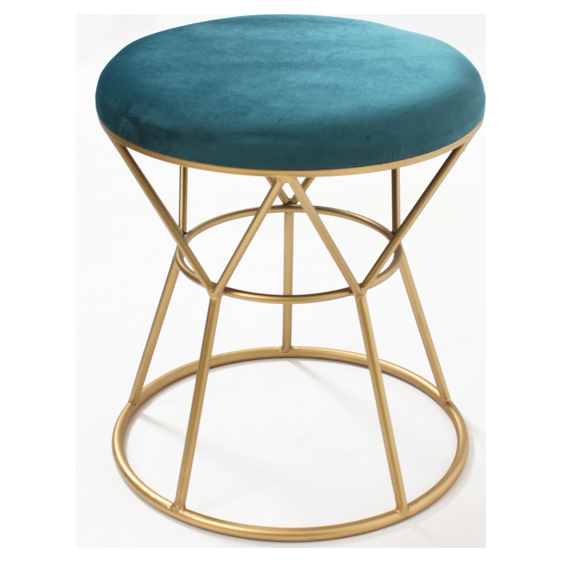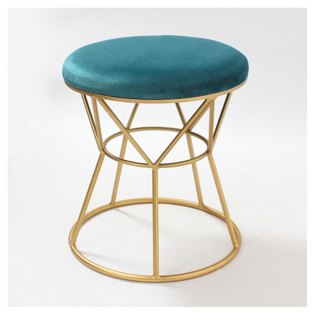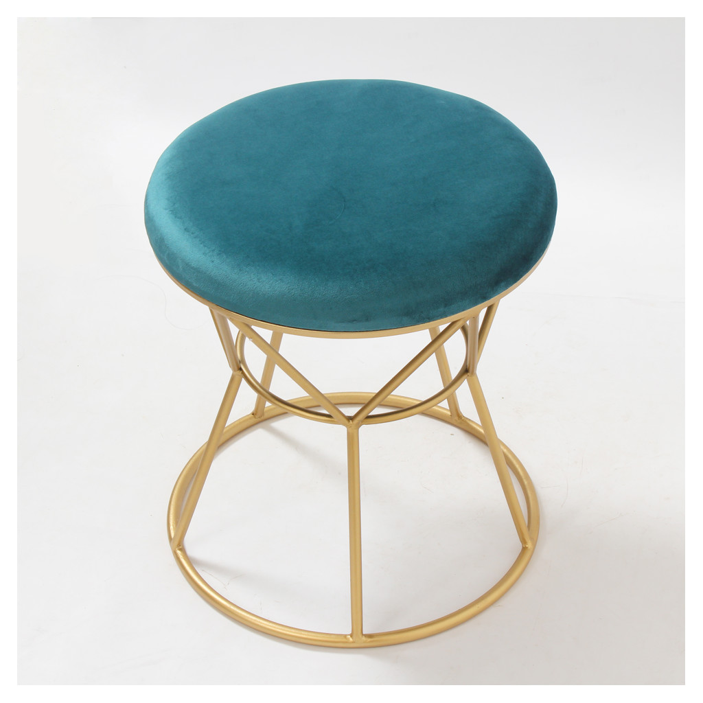 The turquoise velvet upholstery adds a rich, warm pop of color, while the generous padding provides exceptional comfort. Compact and versatile, this ottoman easily adapts to your needs, whether as an extra seat, a footrest, or a decorative display surface.