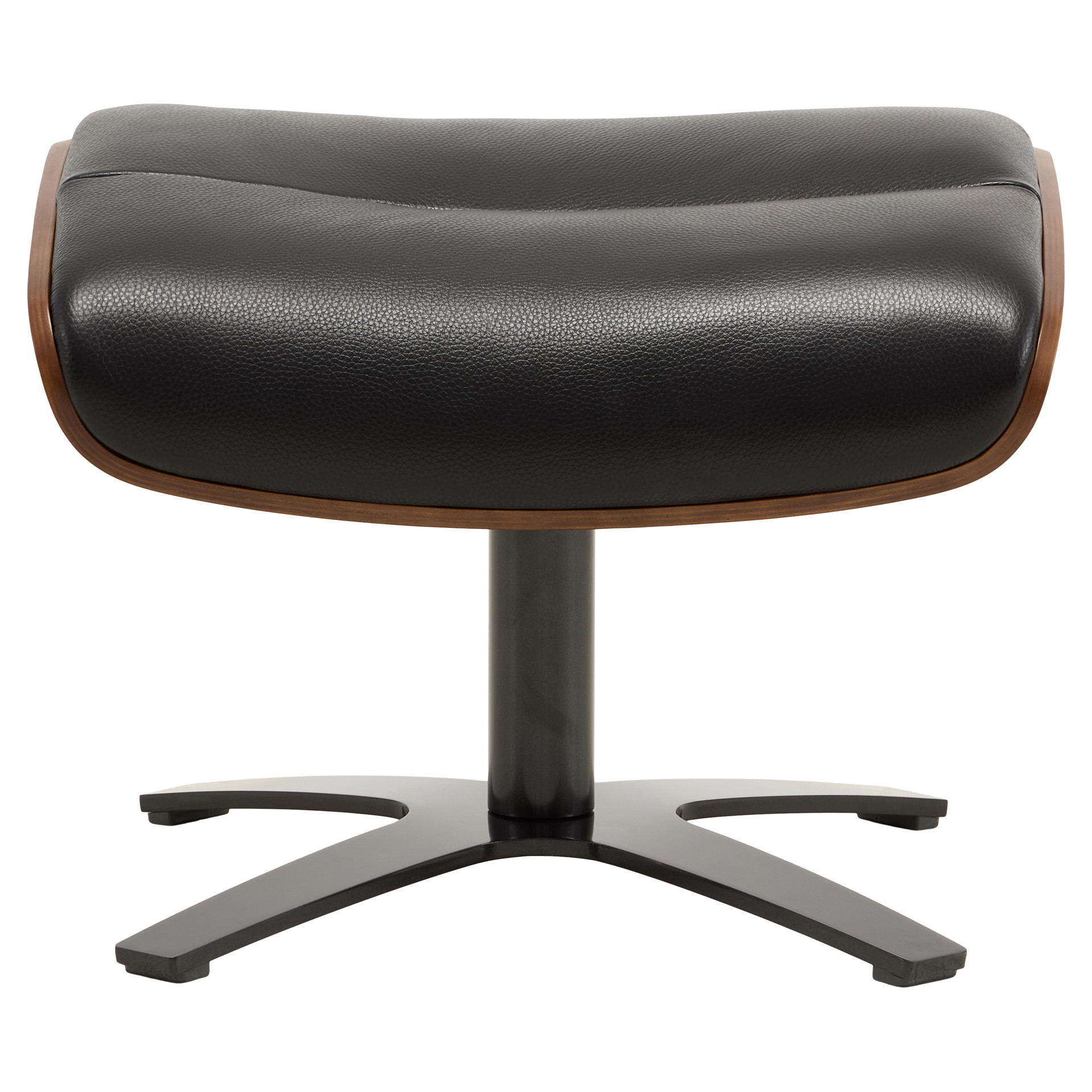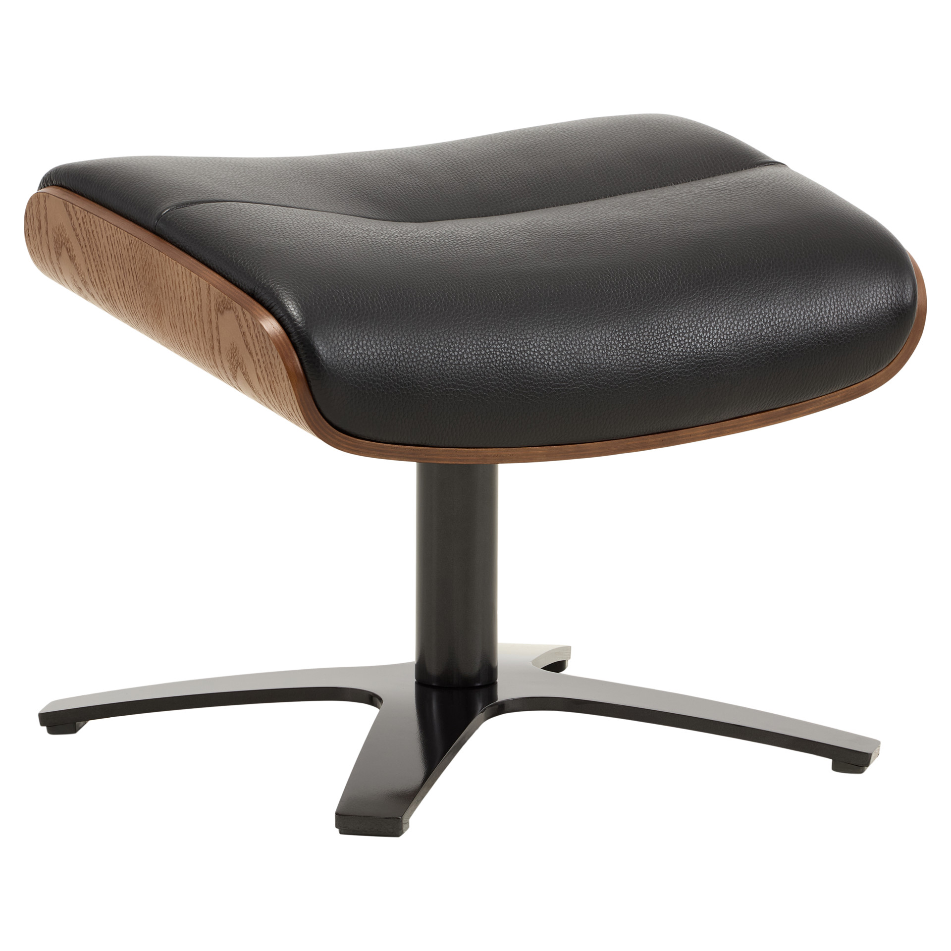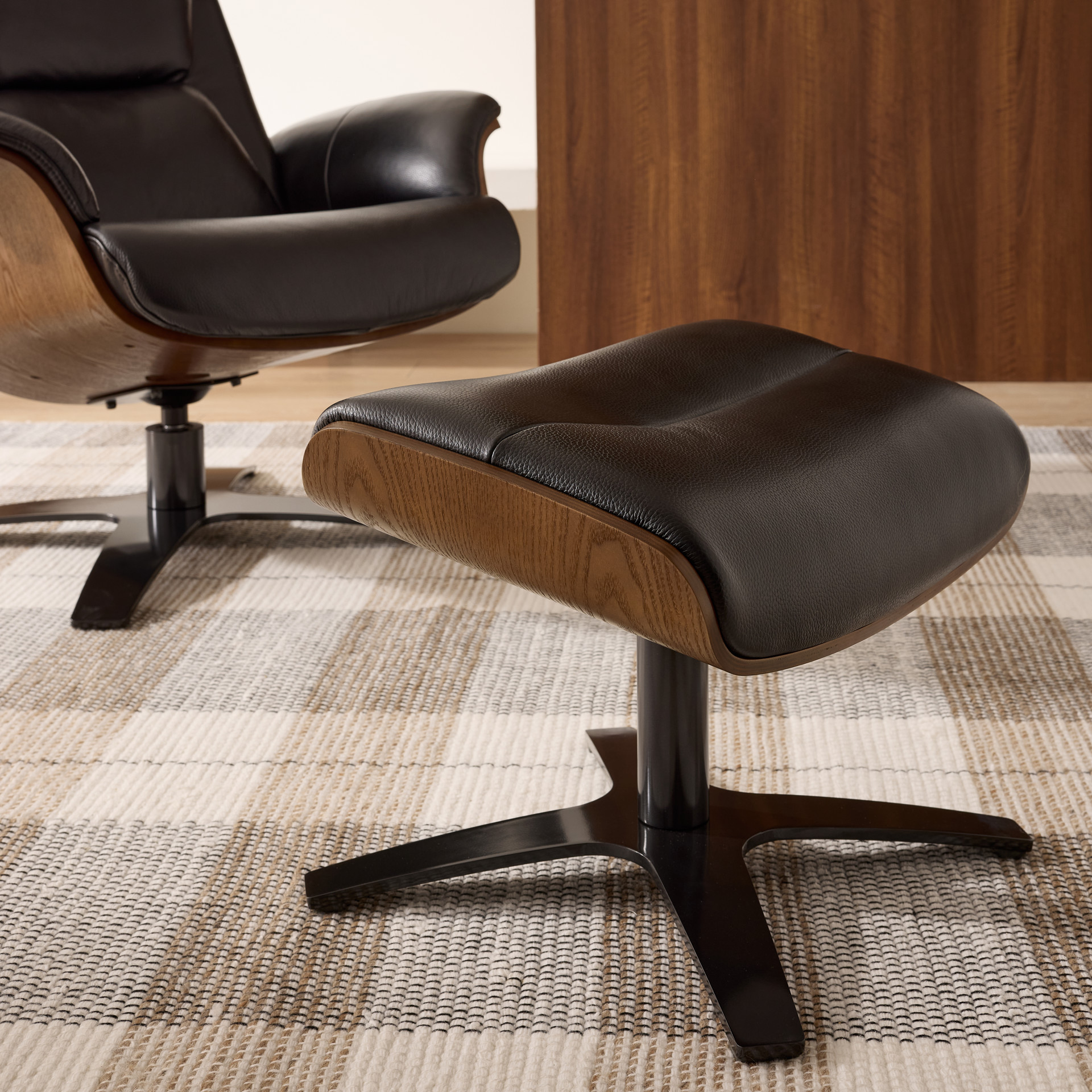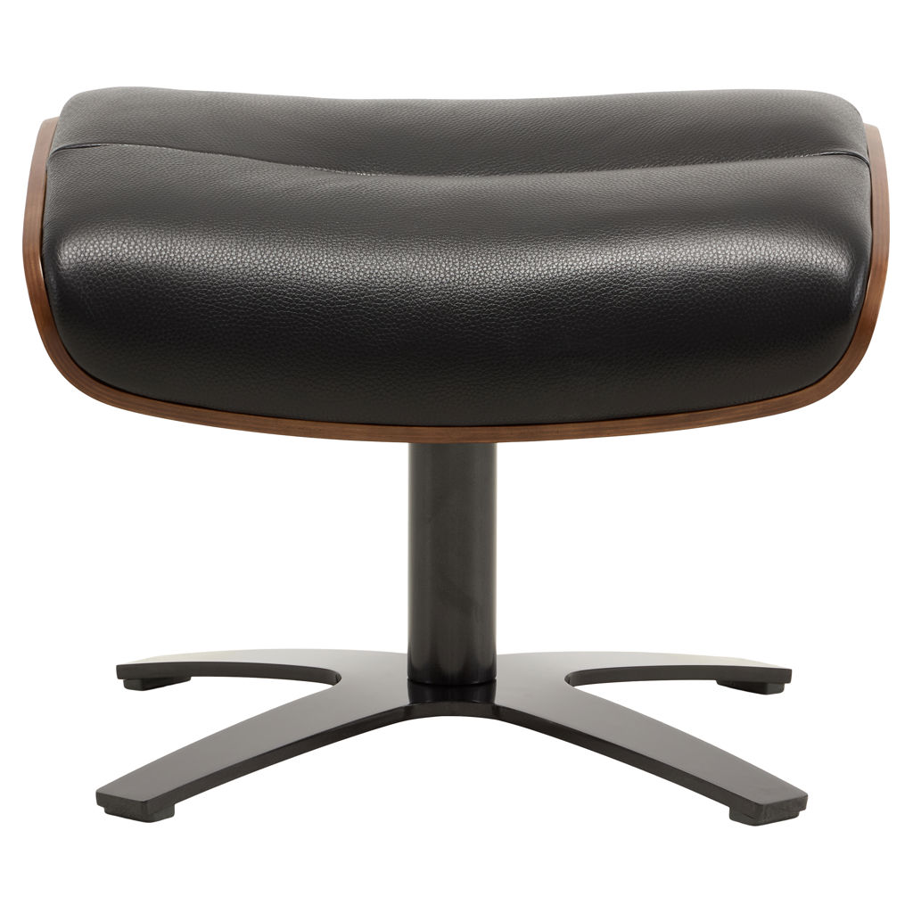 This elegant ottoman perfectly embodies the art of modern design. Its sculpted shape in genuine black leather offers exceptional comfort, while the natural wood base adds a warm, authentic touch to your interior.