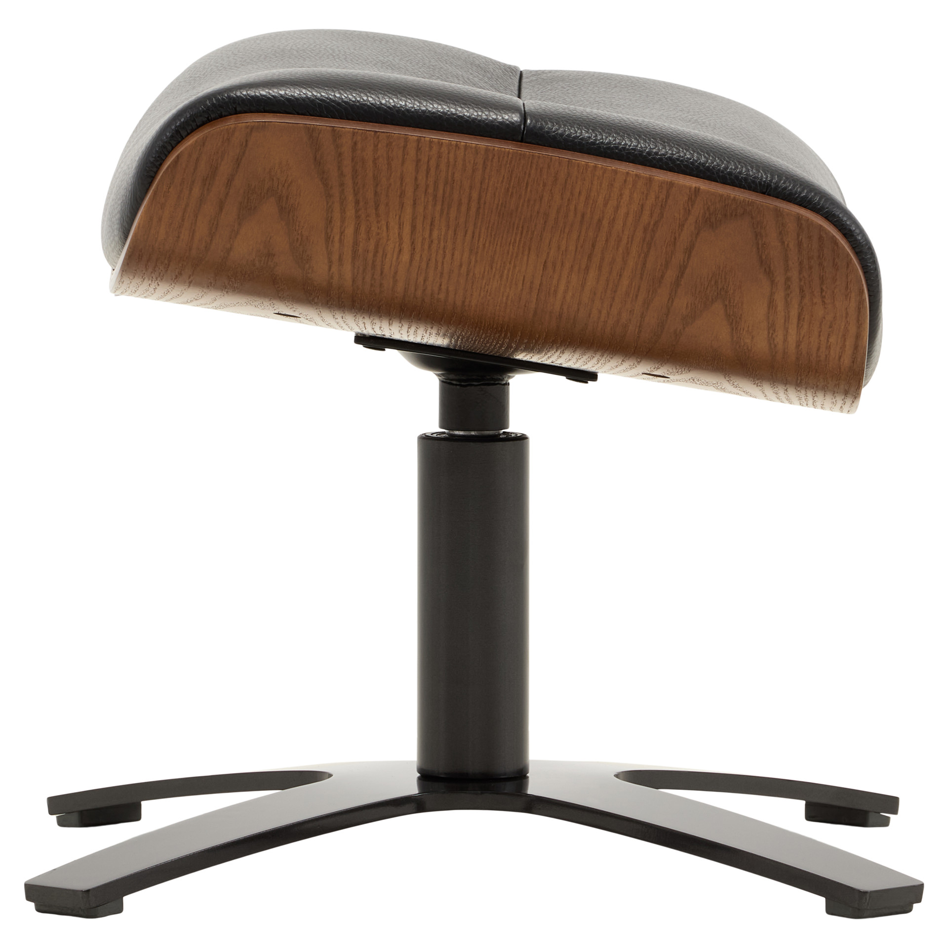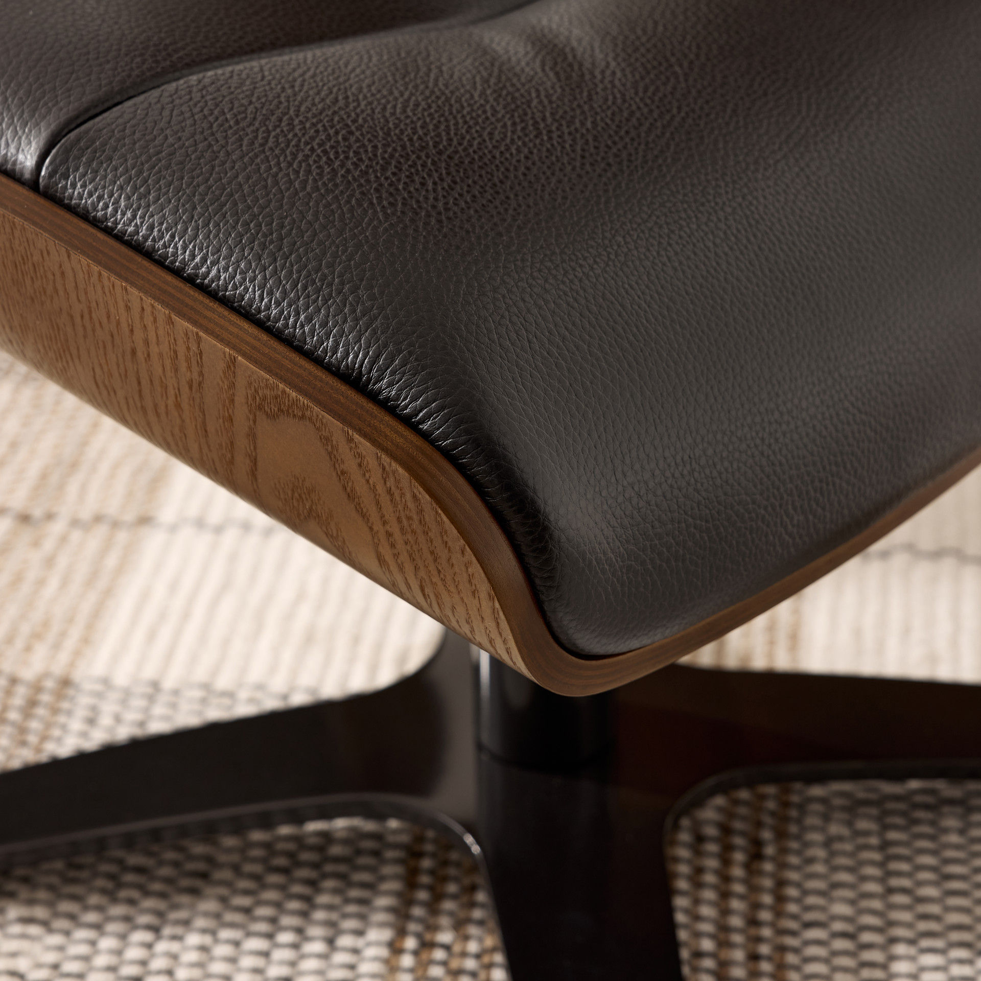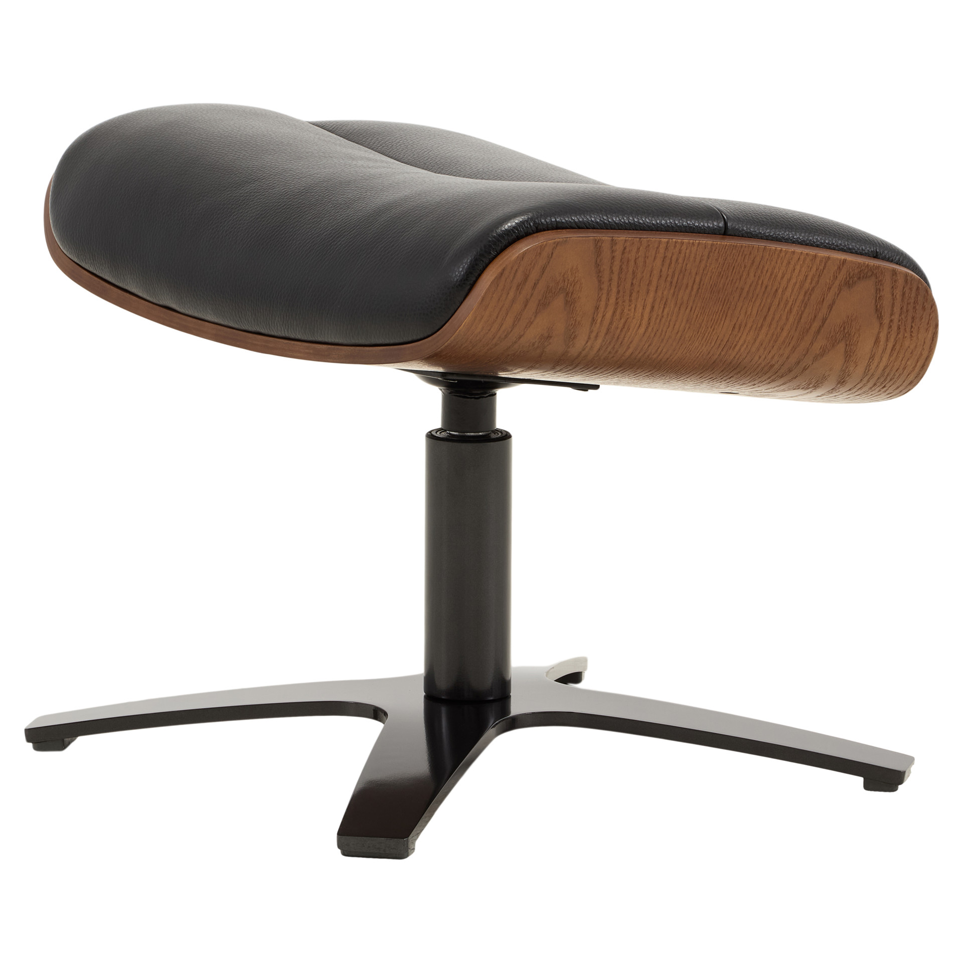 This elegant ottoman perfectly embodies the art of modern design. Its sculpted shape in genuine black leather offers exceptional comfort, while the natural wood base adds a warm, authentic touch to your interior.