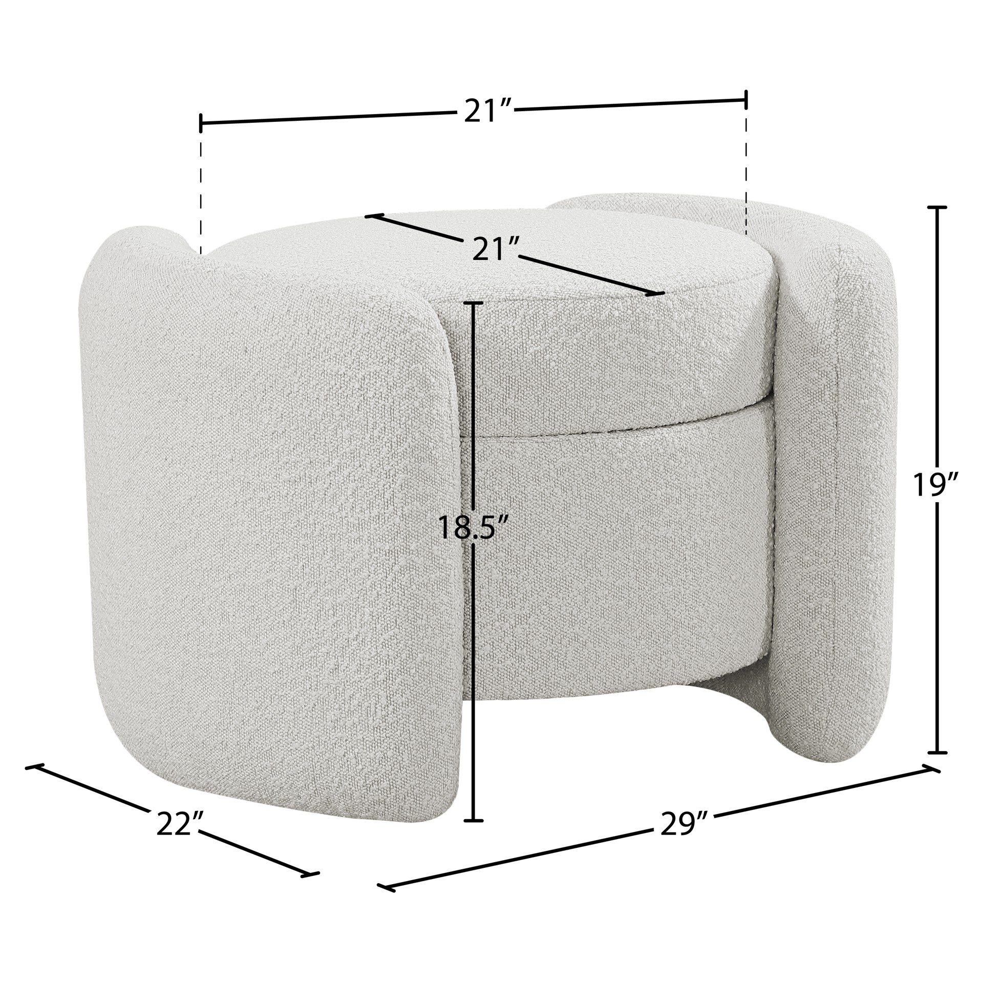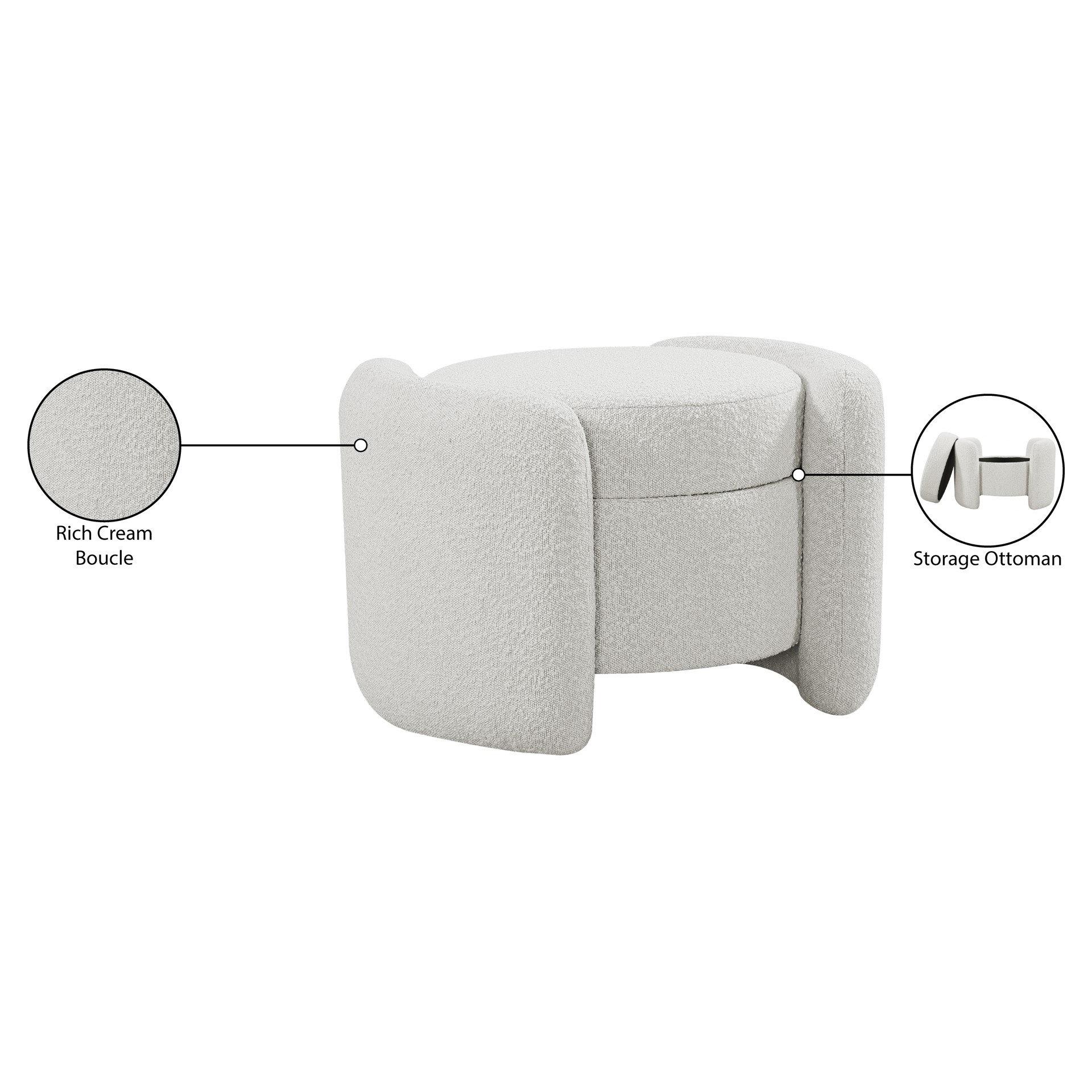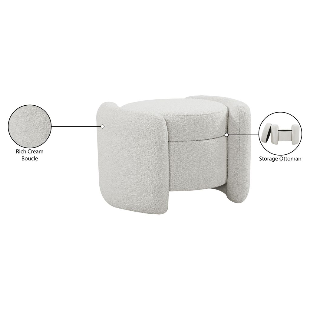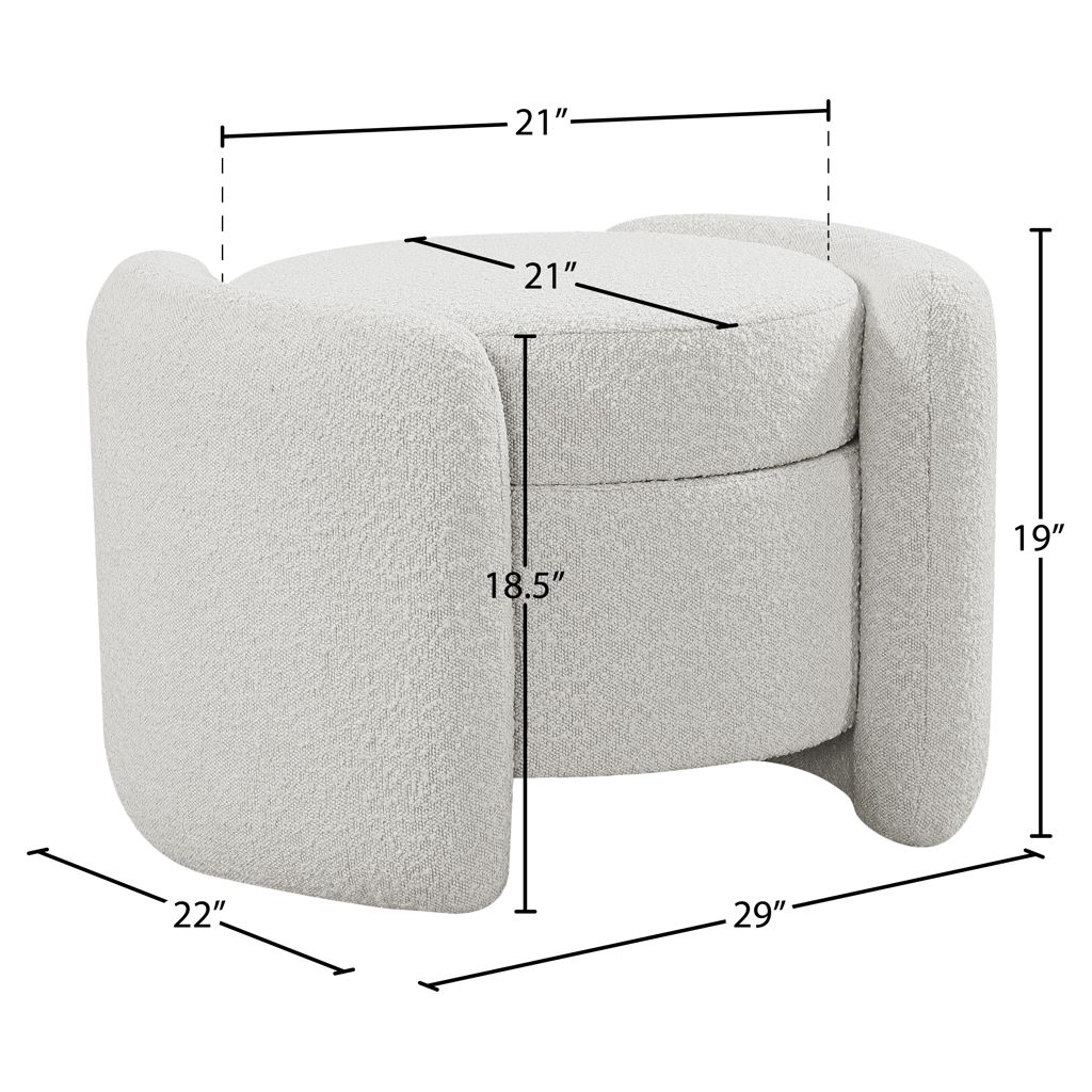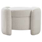 Kick back and relax in style with the Horizon ottoman from Meridian Furniture. Featuring elegant cream boucle fabric and a unique contemporary design, this ottoman will add a chic touch to any space in your home. Its seat width makes it the perfect size for resting your legs or provides your home with an additional seat for visitors. With its light weight, this ottoman can easily be moved, making it a versatile accent piece for any room.