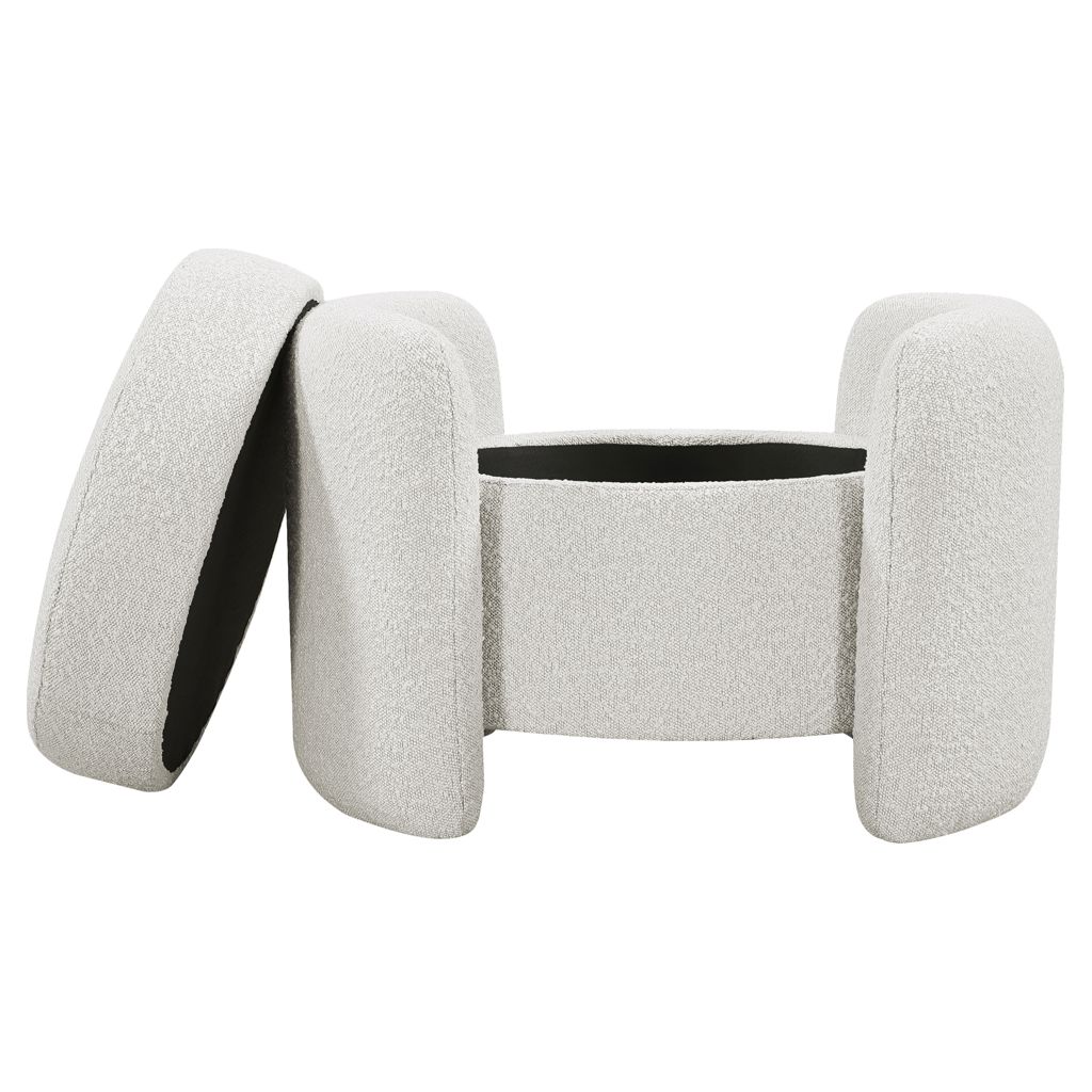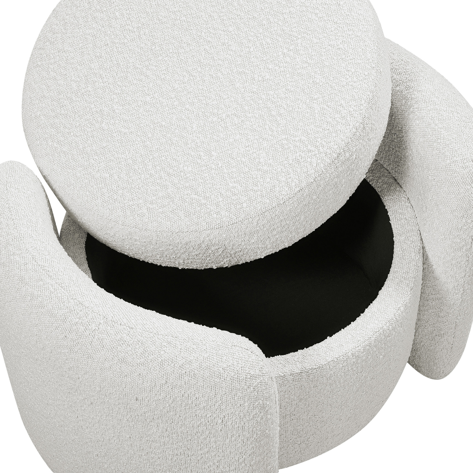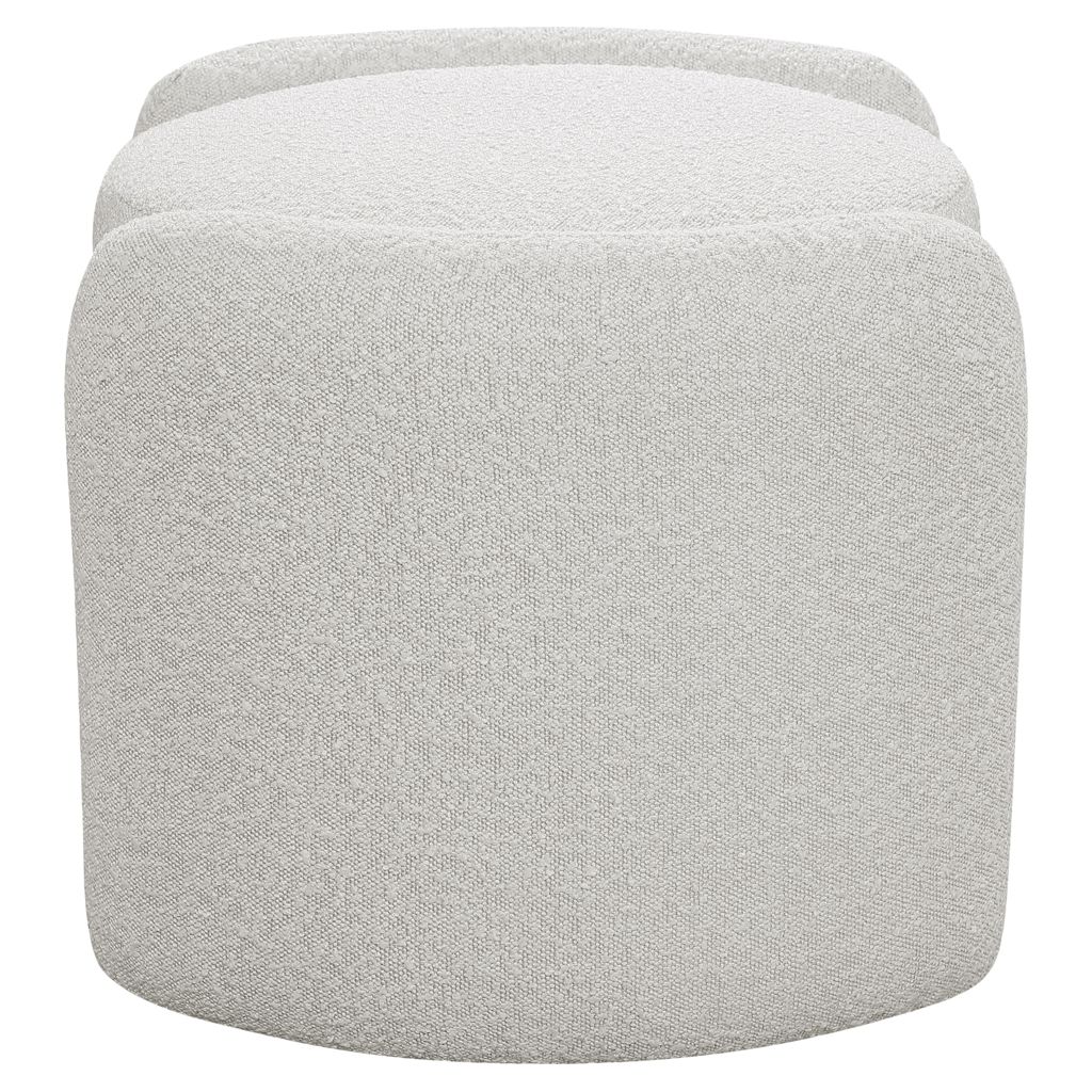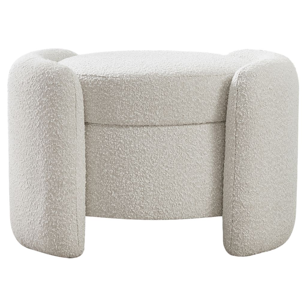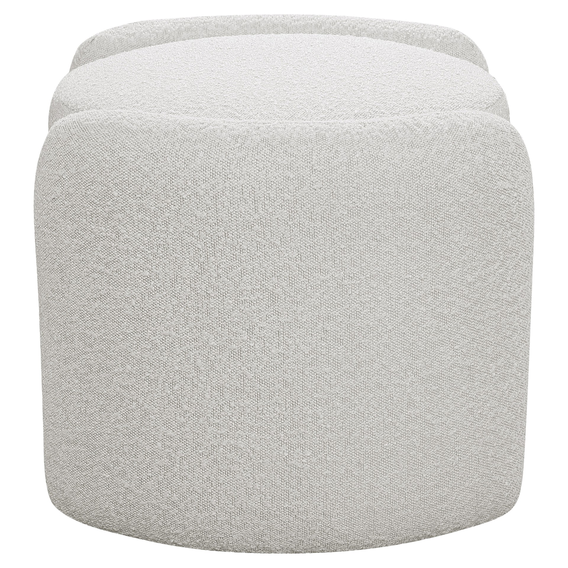 Kick back and relax in style with the Horizon ottoman from Meridian Furniture. Featuring elegant cream boucle fabric and a unique contemporary design, this ottoman will add a chic touch to any space in your home. Its seat width makes it the perfect size for resting your legs or provides your home with an additional seat for visitors. With its light weight, this ottoman can easily be moved, making it a versatile accent piece for any room.