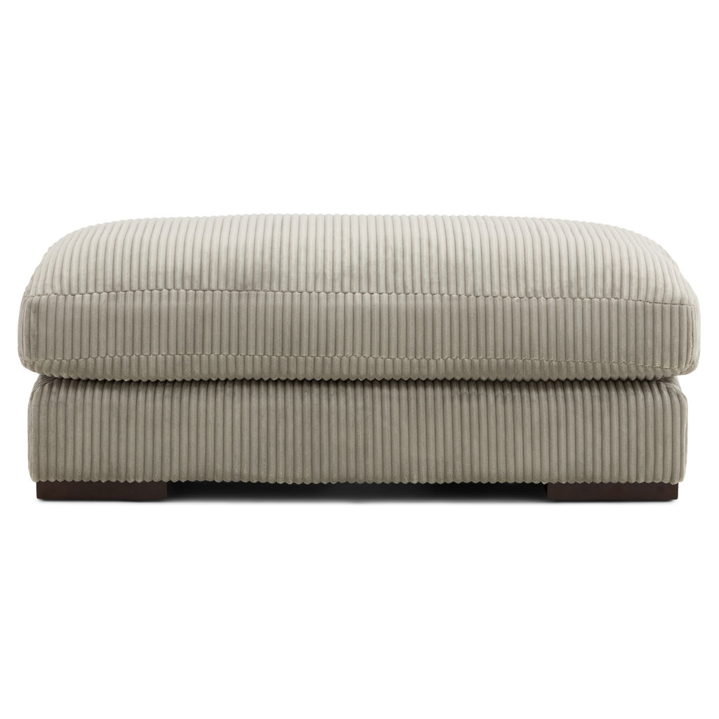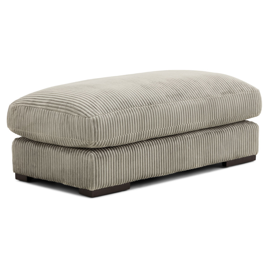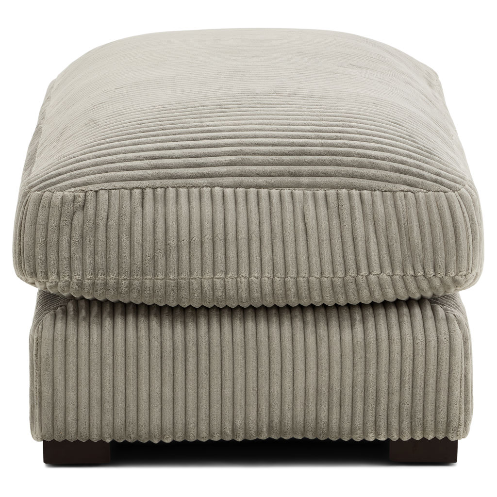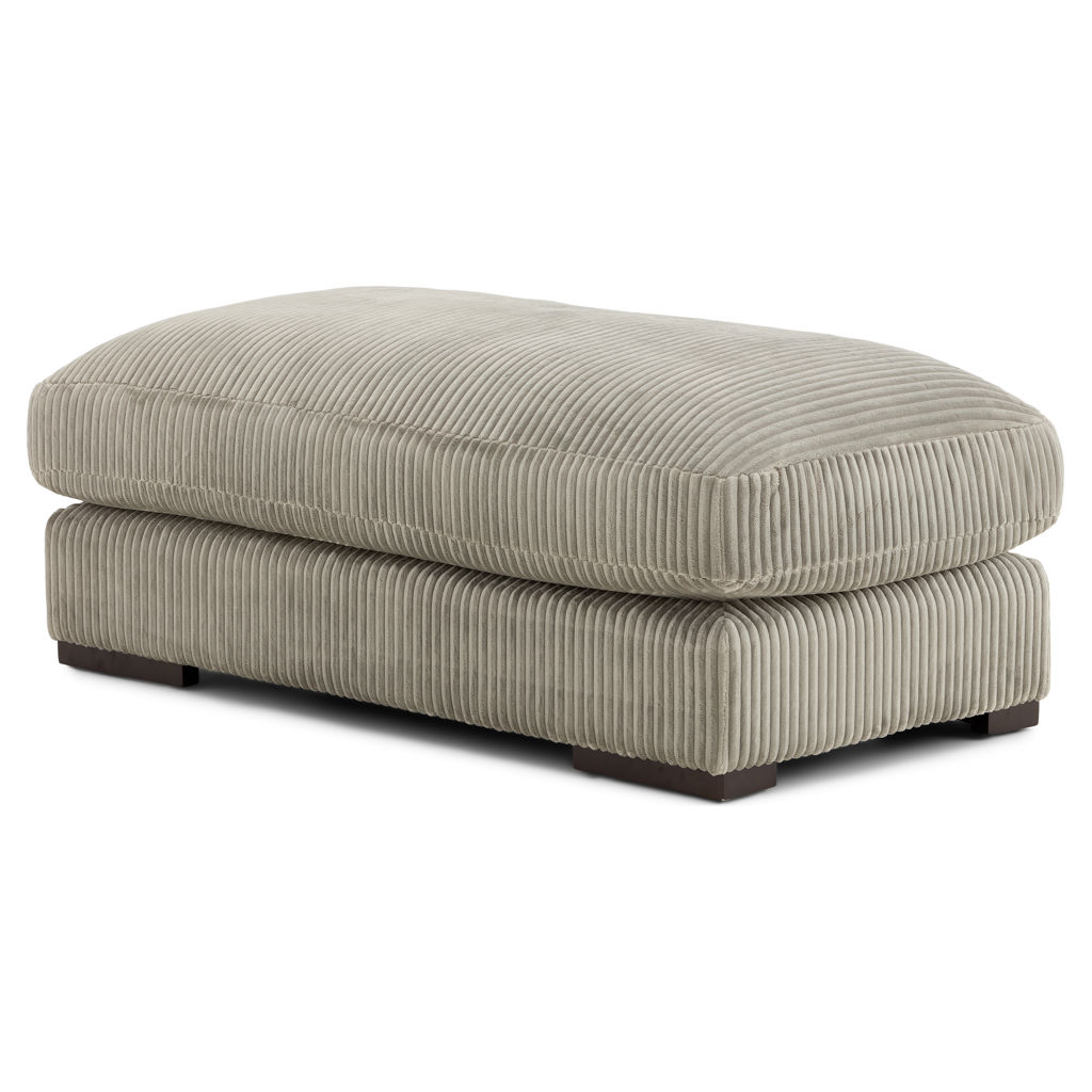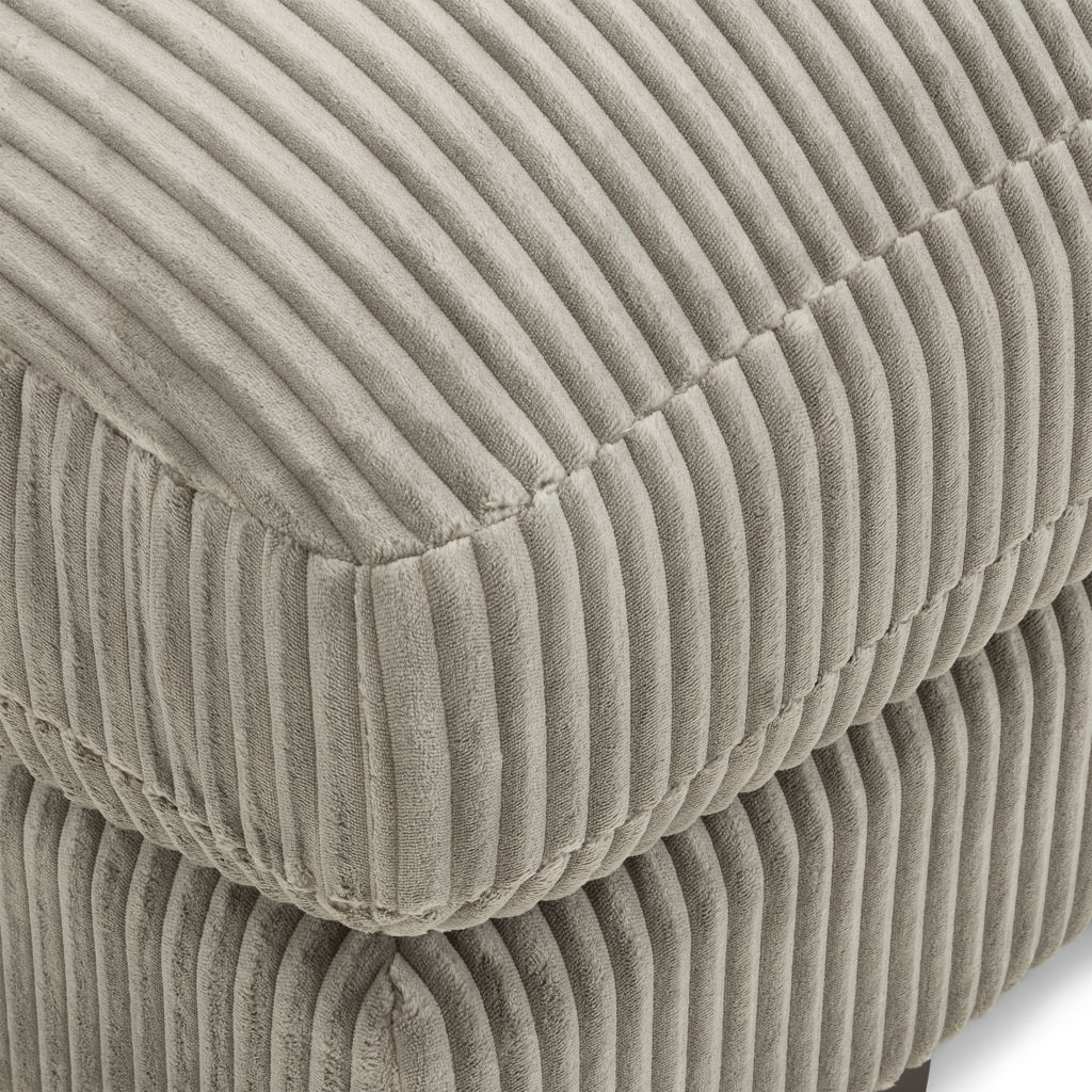 Add a touch of comfort and style to your living room with this grey-green corduroy ottoman.