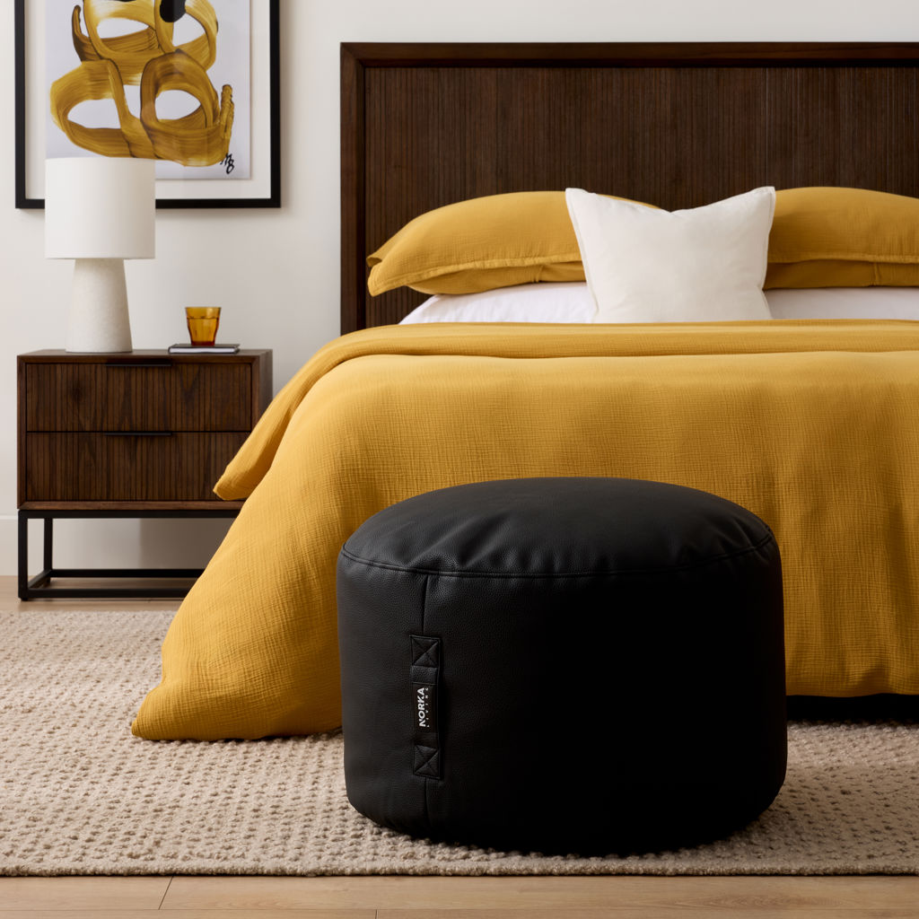 Norka Living's latest addition to the ottoman category. Choose our Aria ottoman to create a soothing ambience in your decor. This ottoman, in vegan leather, adapts perfectly to all color palettes. Take advantage of its versatility by using it as a chair, footrest, stool or decorative piece. It's up to you to incorporate it into your home!