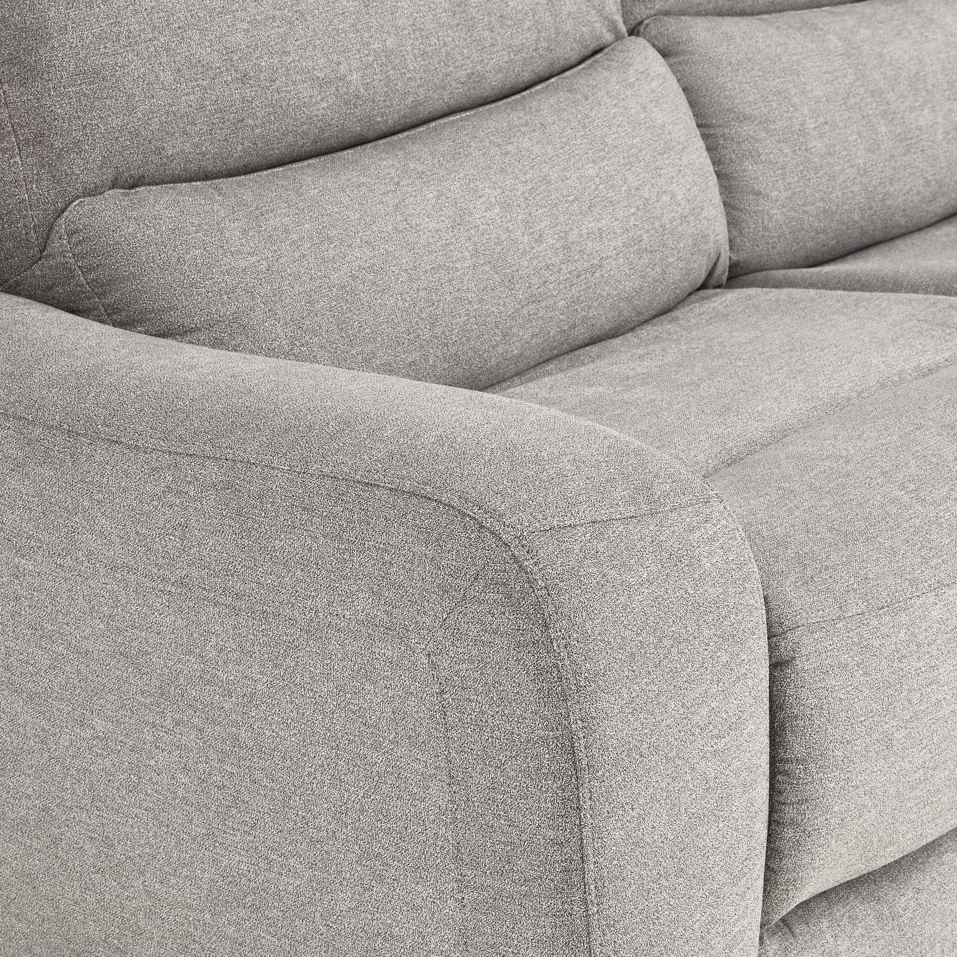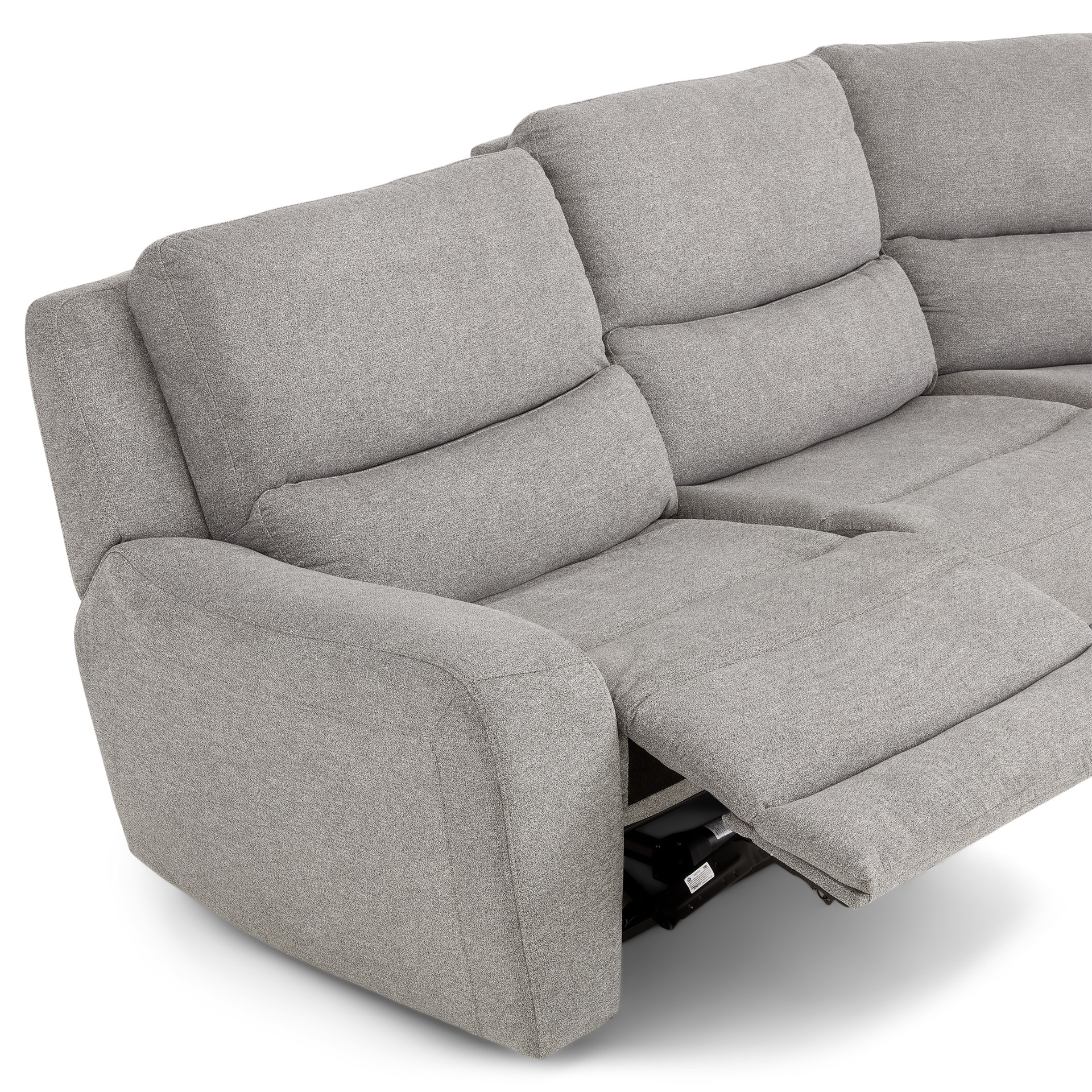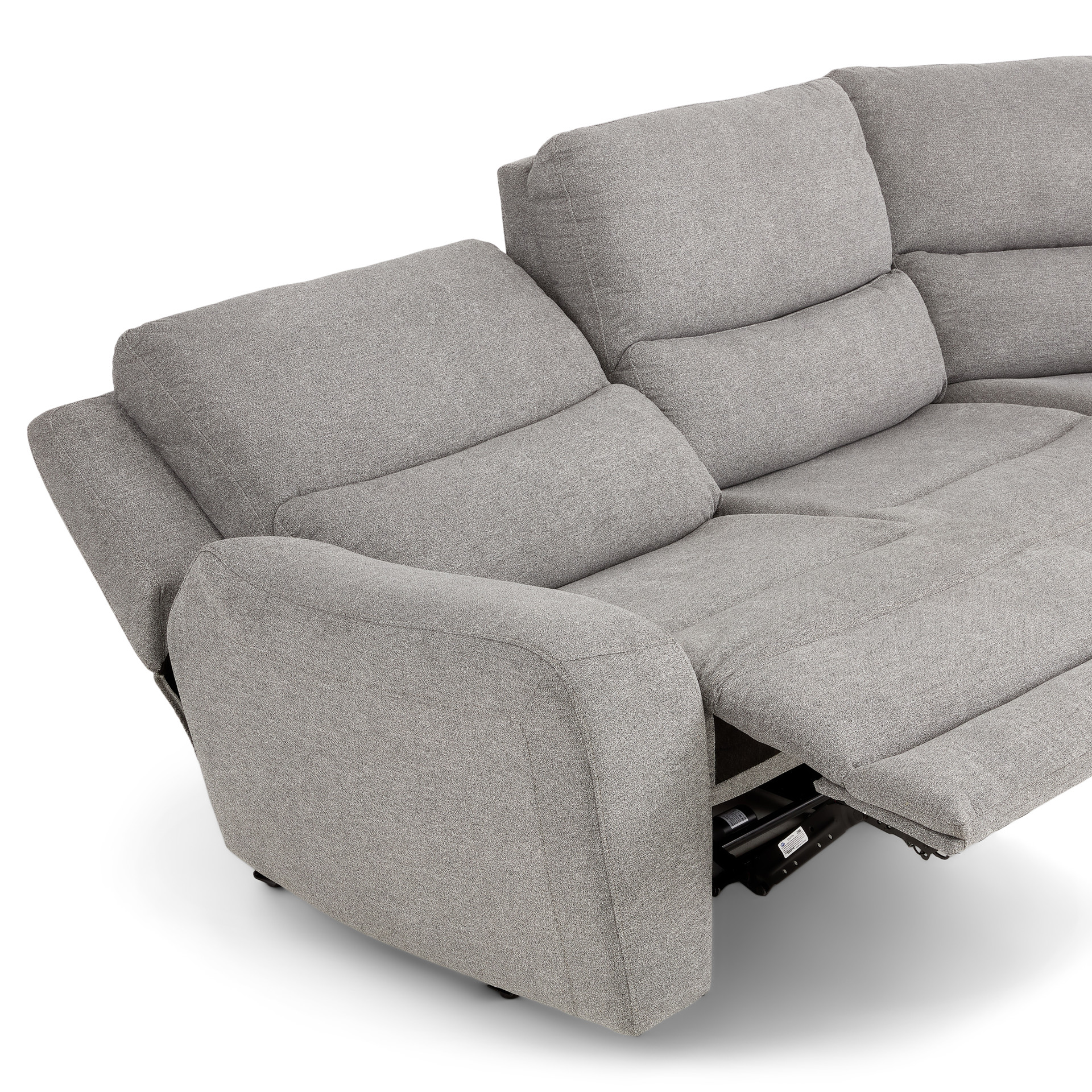 Transform your living room into a true haven of relaxation with this reclinable sectional featuring clean, contemporary lines. Its soft-to-the-touch fabric combines comfort with durability, while its neutral grey tone blends seamlessly with any décor.
