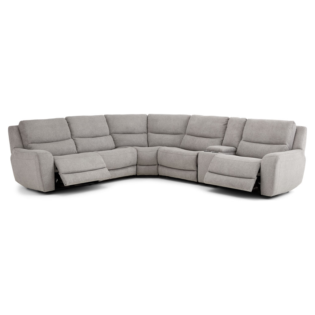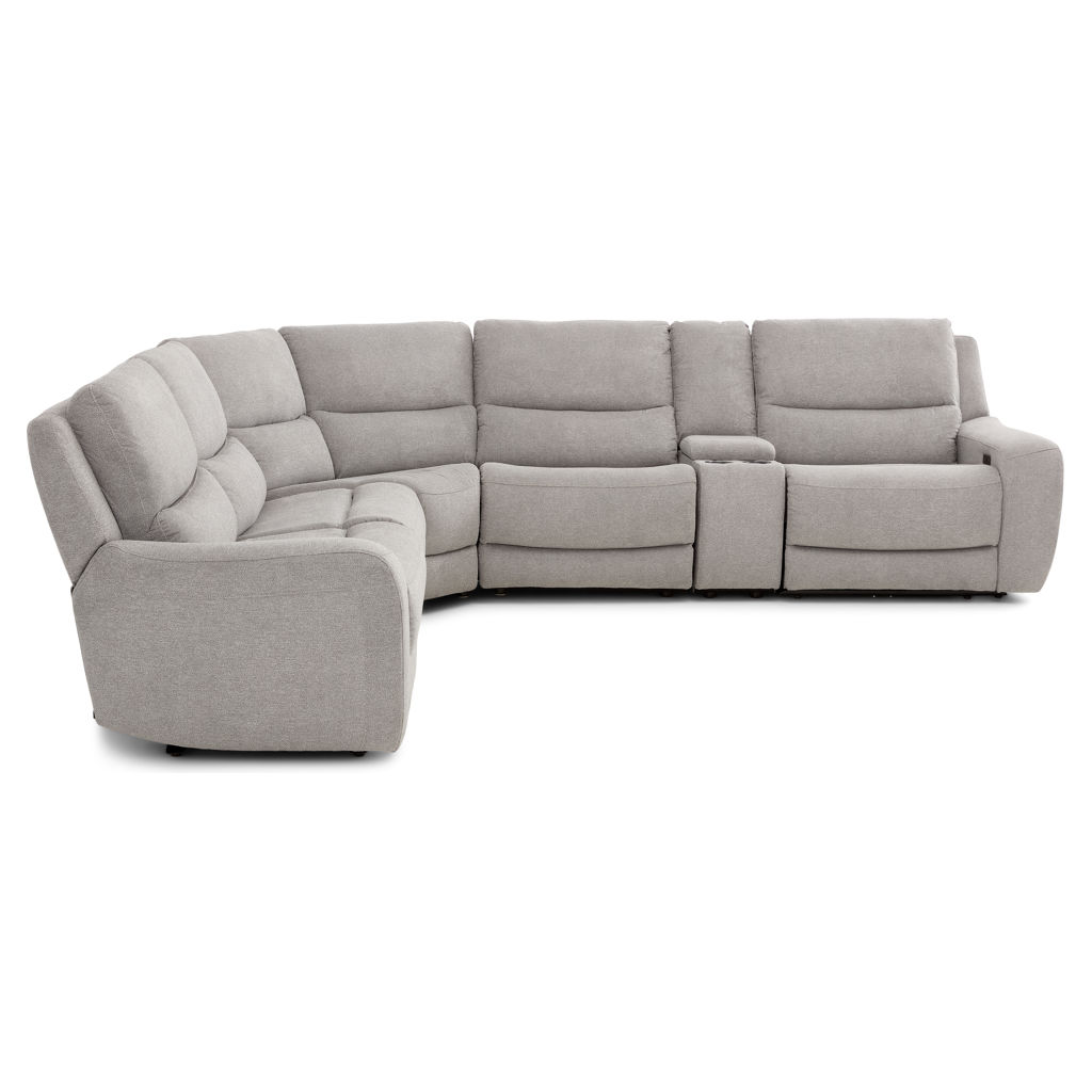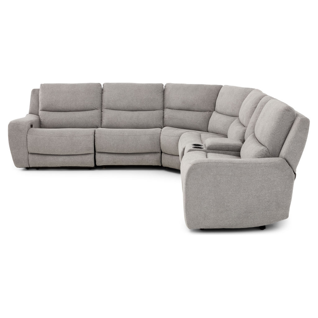 Transform your living room into a true haven of relaxation with this reclinable sectional featuring clean, contemporary lines. Its soft-to-the-touch fabric combines comfort with durability, while its neutral grey tone blends seamlessly with any décor.