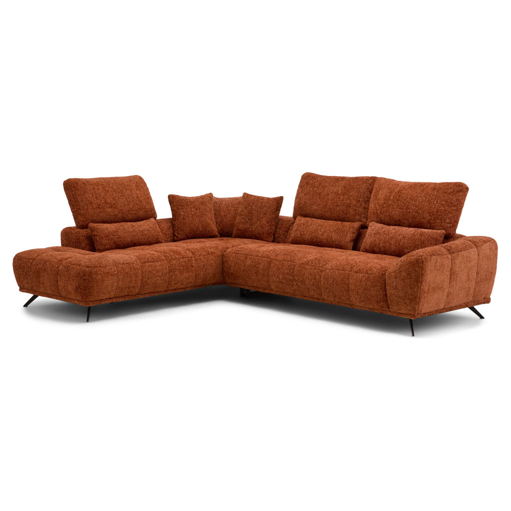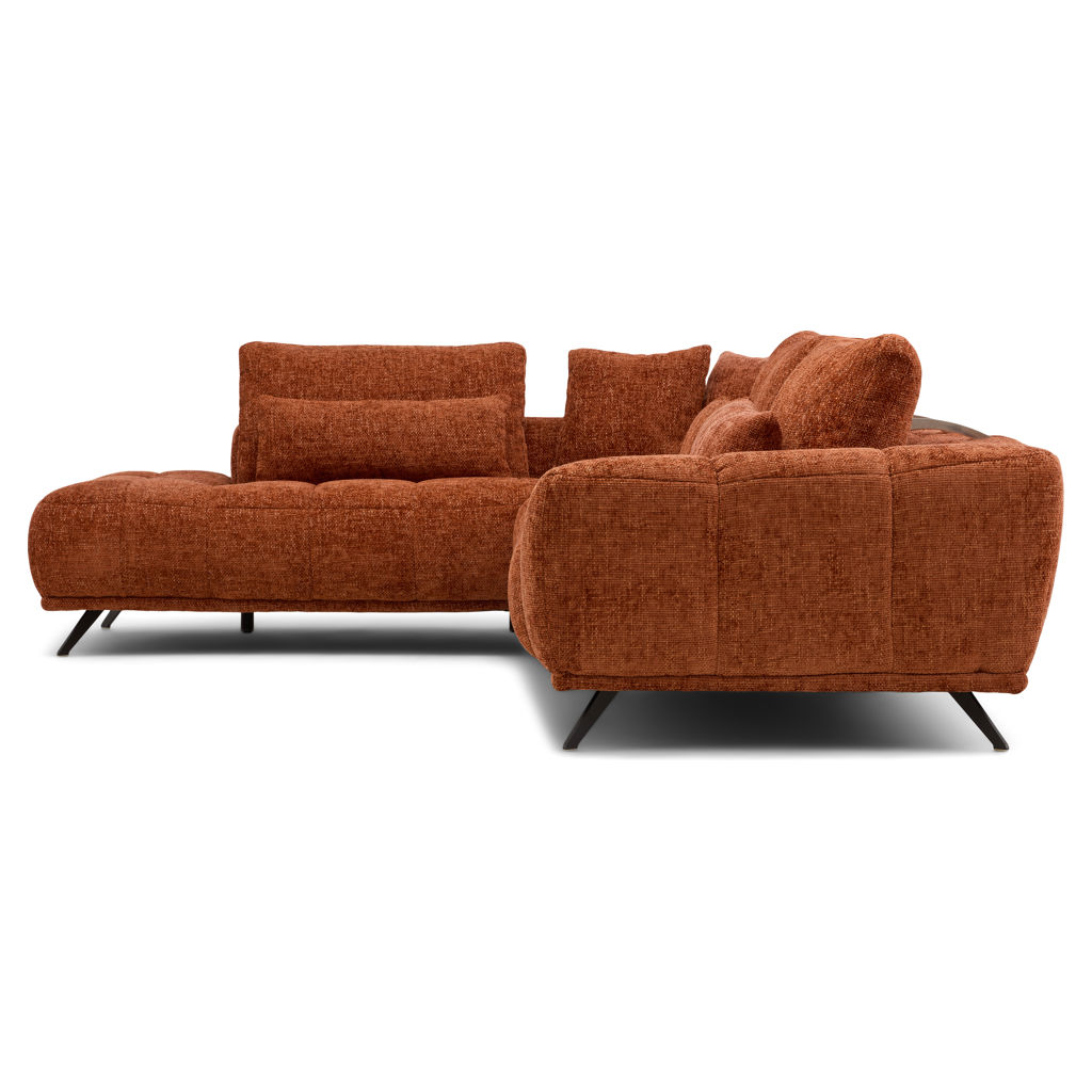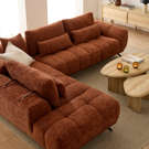 Transform your living room into a true haven of relaxation with this sectional featuring clean, modern lines. Its textured fabric upholstery in a rich caramel hue brings warmth and sophistication to your space.
