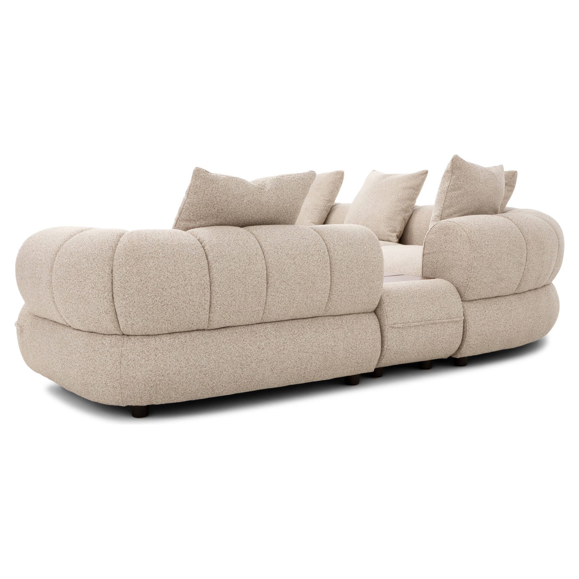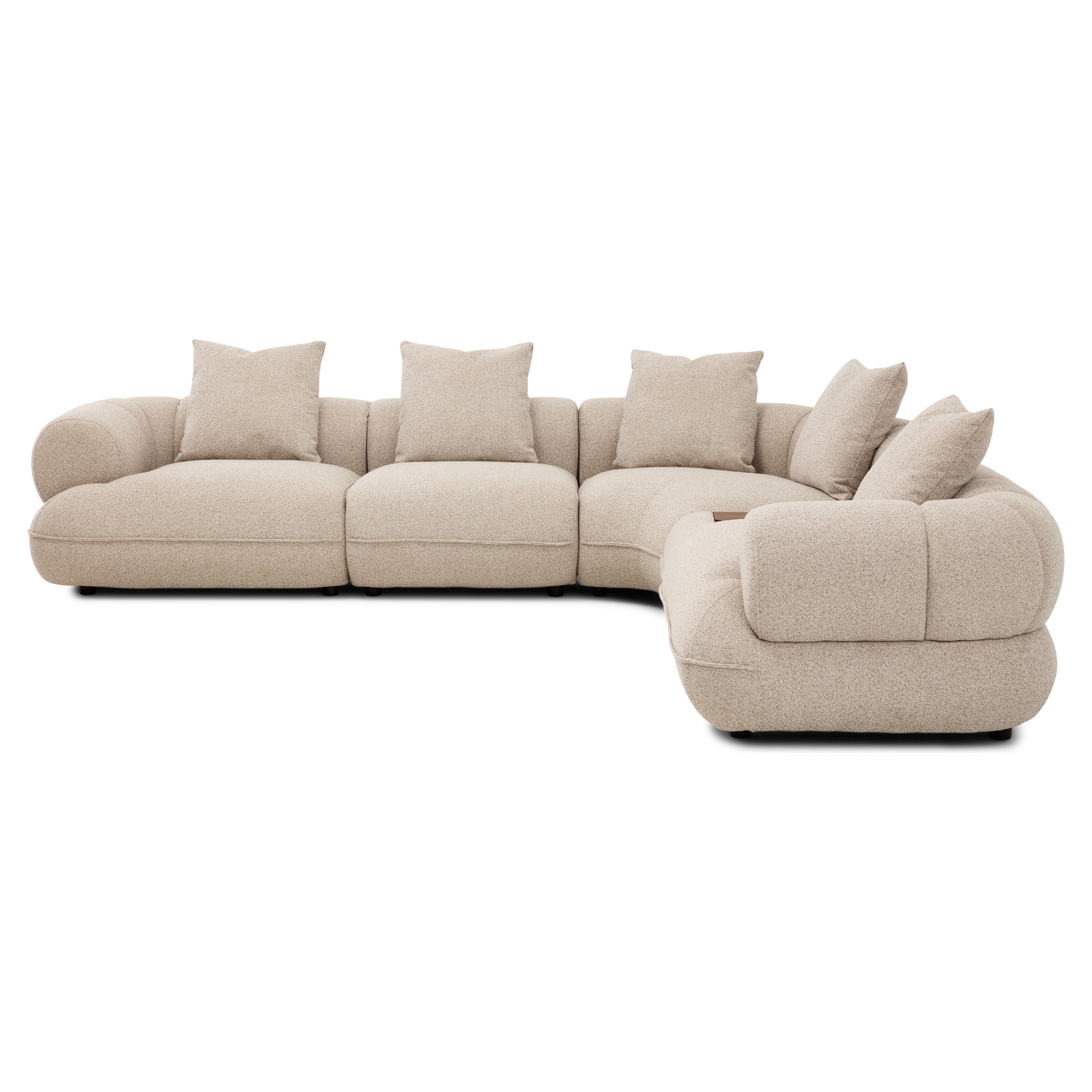 Create a relaxing space with absolute comfort thanks to this modular sectional with a contemporary design. Its rounded silhouette and soft sand-colored fabric bring warmth and elegance to your living room. Perfect for hosting family and friends, it combines style, modularity, and everyday functionality.