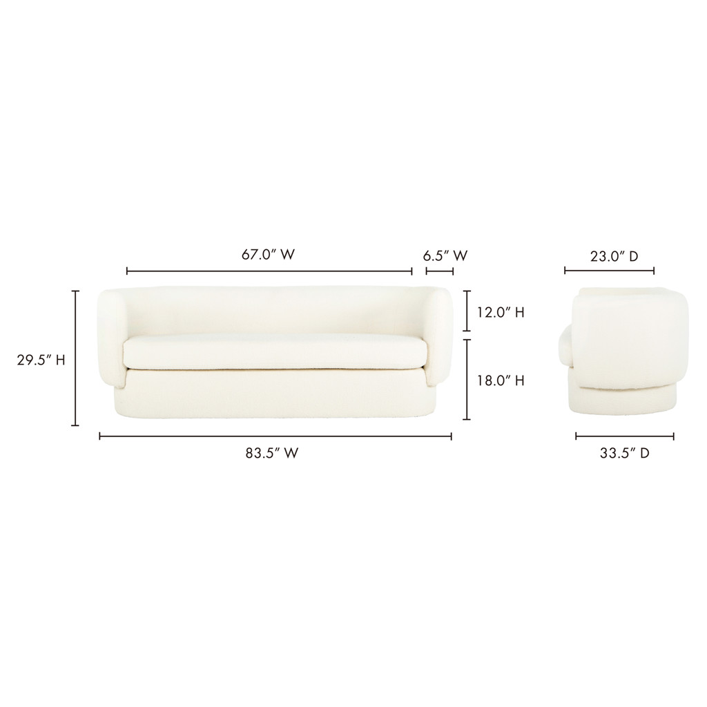 Discover the timeless elegance of this sofa that will instantly elevate your living room. Its bright white fabric upholstery brings a fresh, modern touch to your interior, while the clean lines and generous contours invite relaxation.
