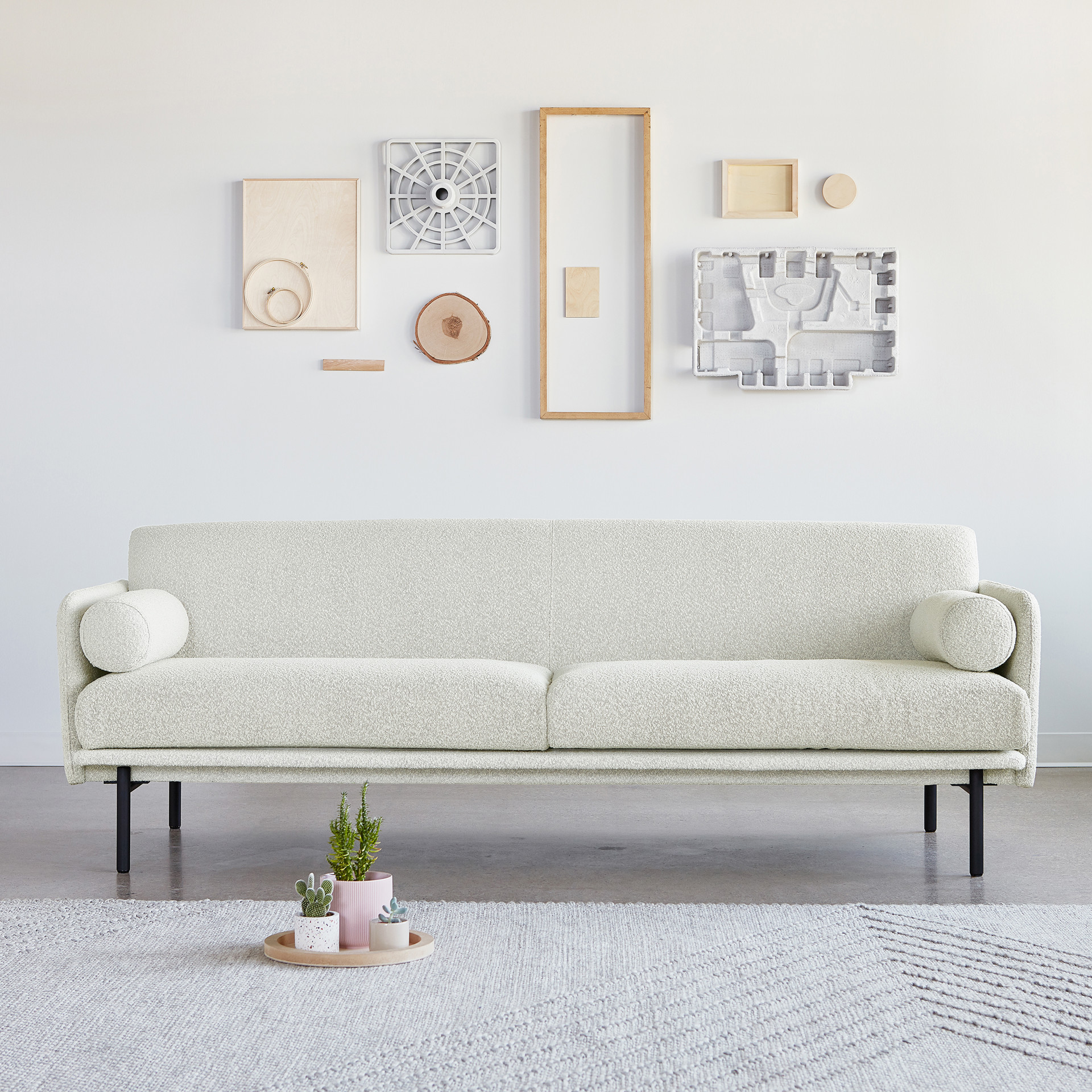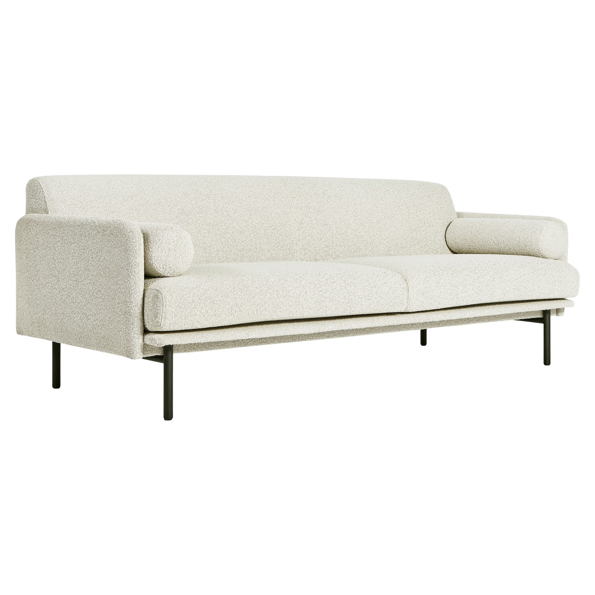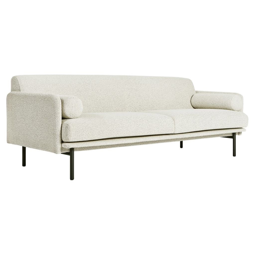 This sofa from the Foundry collection embodies the art of contemporary design with its sleek silhouette and clean lines. Its warm fabric upholstery in neutral tones blends seamlessly with any décor style, while the metal-legged frame adds a touch of sophisticated modernity.