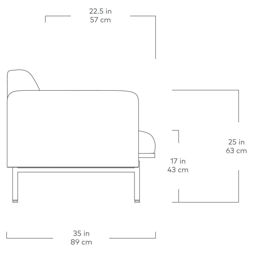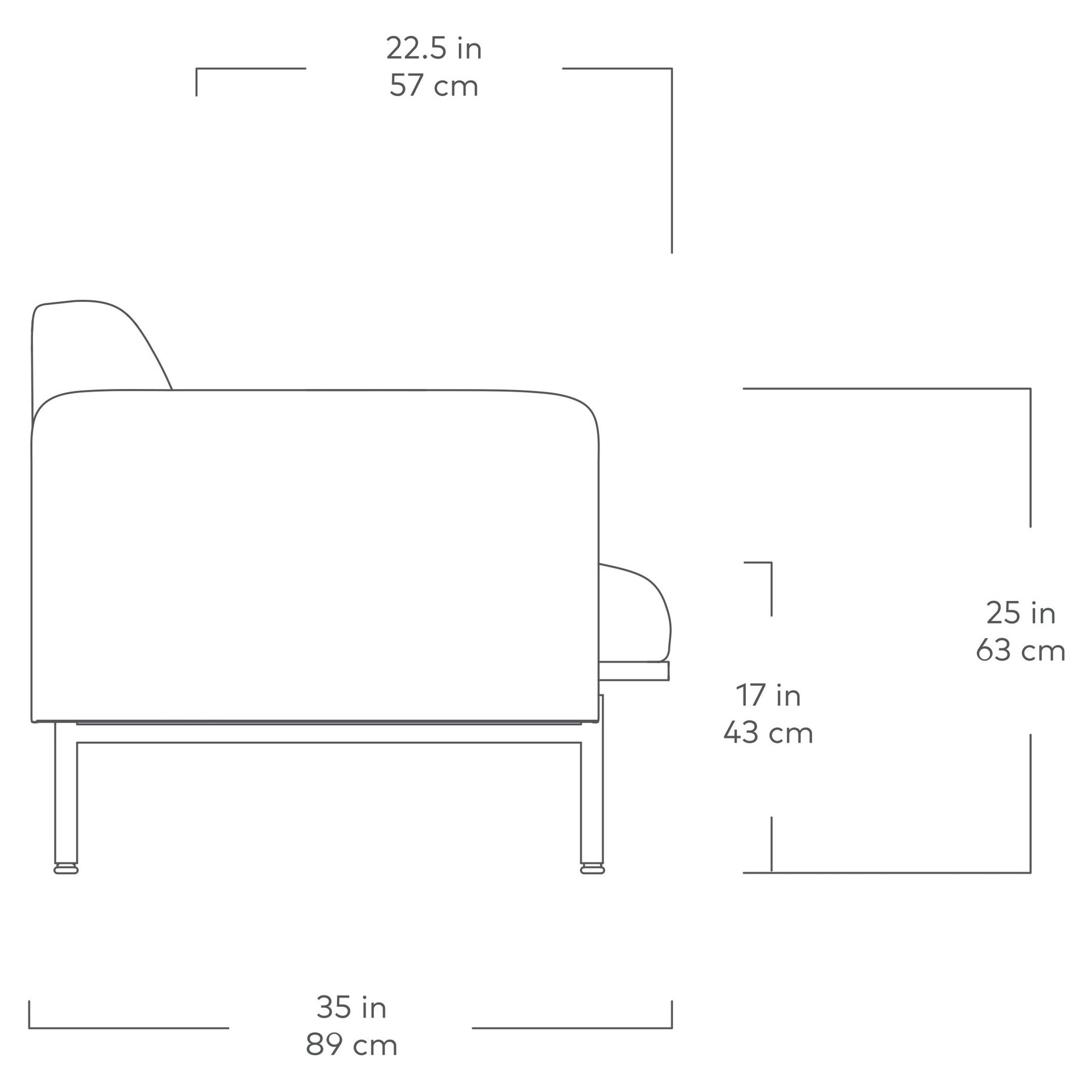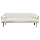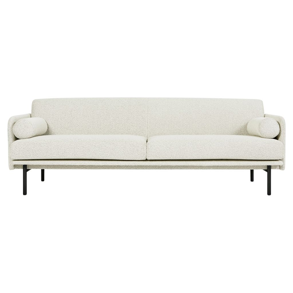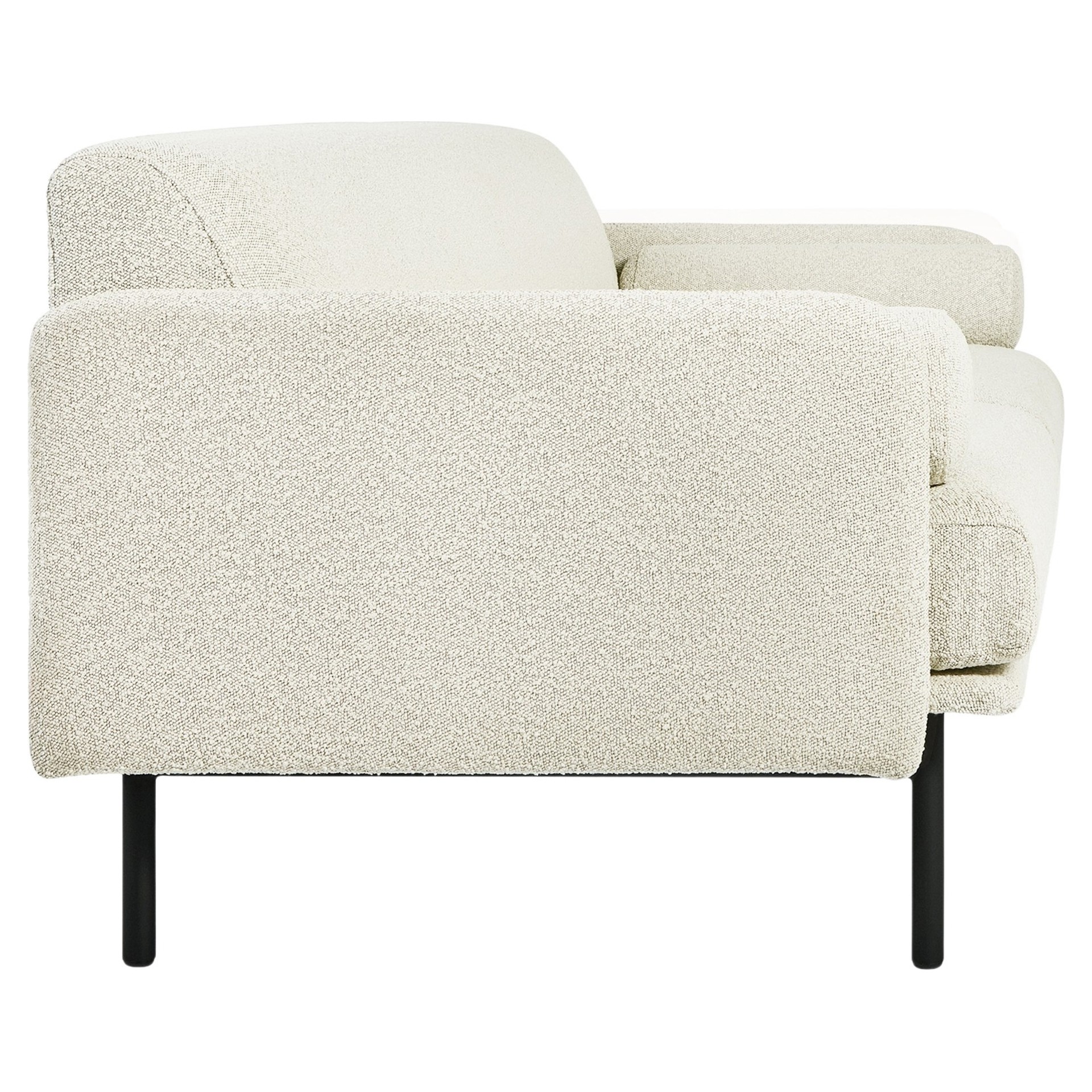 This sofa from the Foundry collection embodies the art of contemporary design with its sleek silhouette and clean lines. Its warm fabric upholstery in neutral tones blends seamlessly with any décor style, while the metal-legged frame adds a touch of sophisticated modernity.