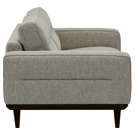 An exposed wooden base offers support and a lovely visual detail carried by sloping wooden legs.