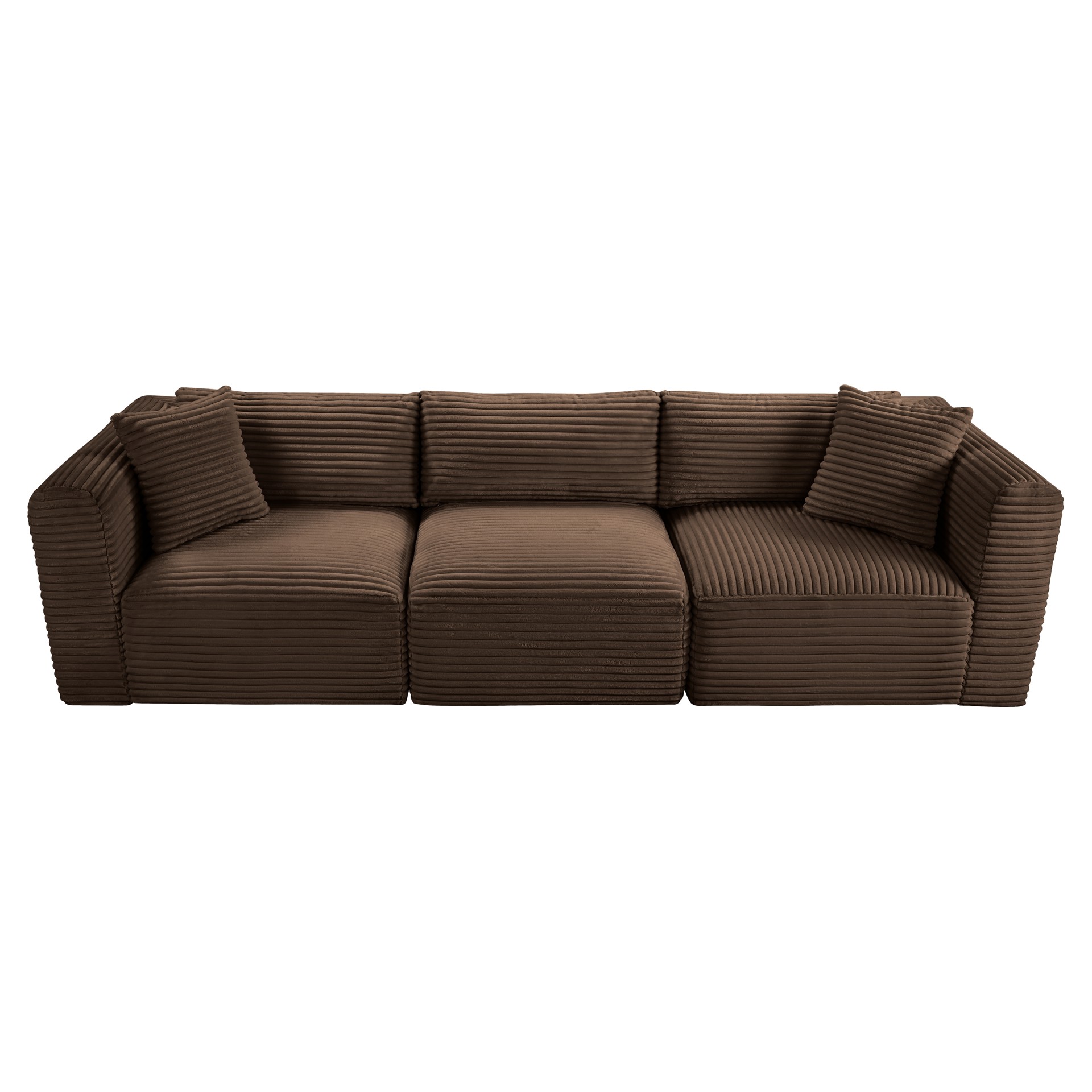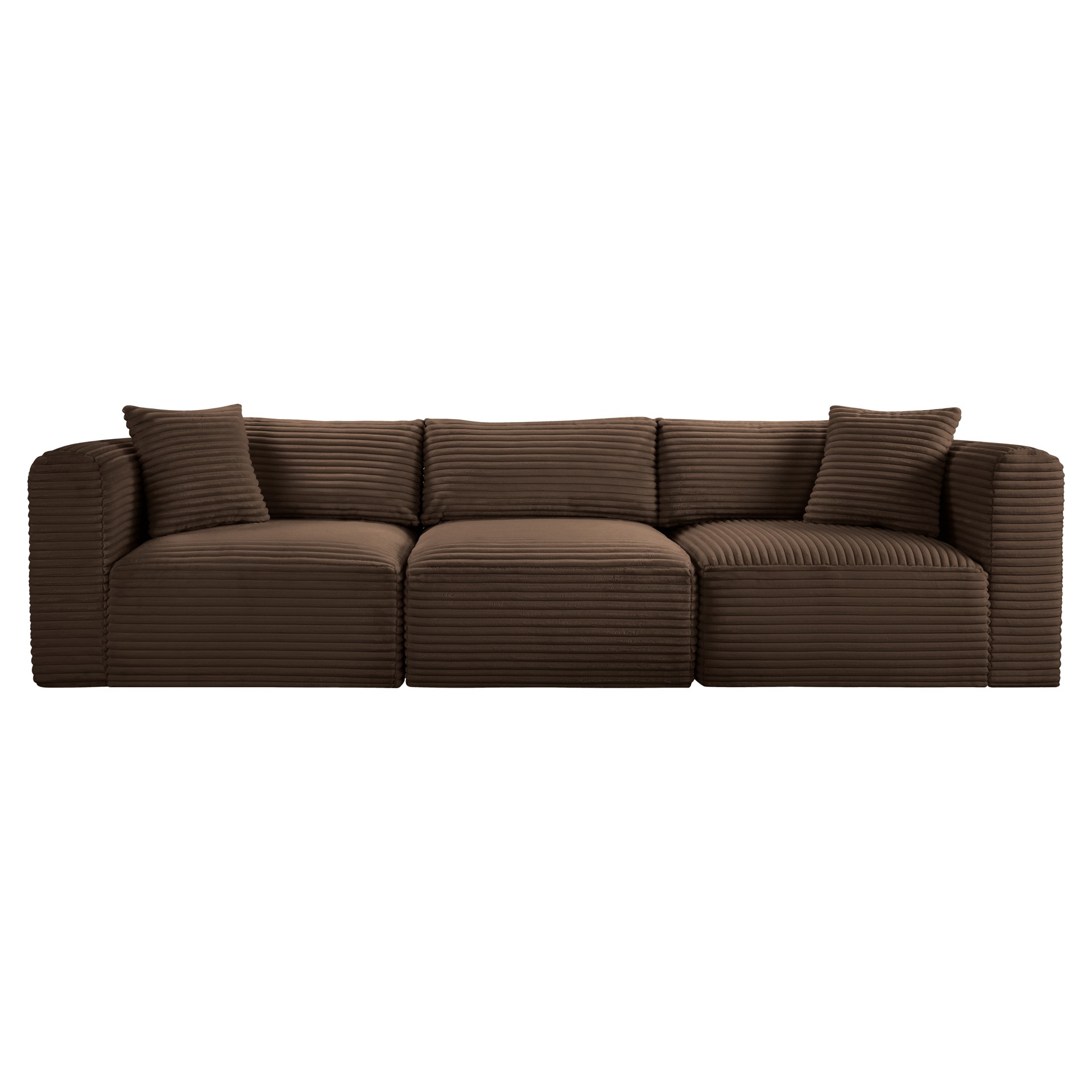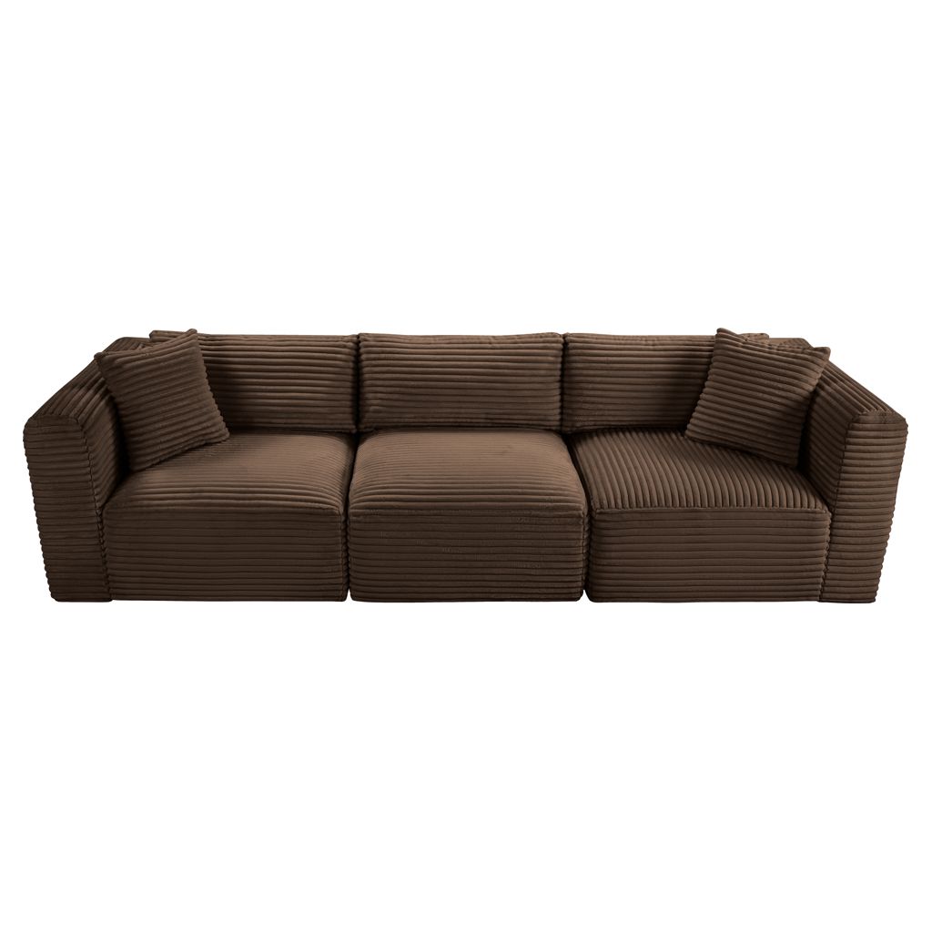 Shaggy 3-Piece Corduroy Modular Sofa Meridian Furniture 641BROWN-S109