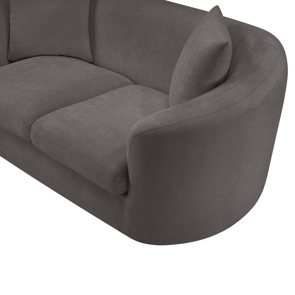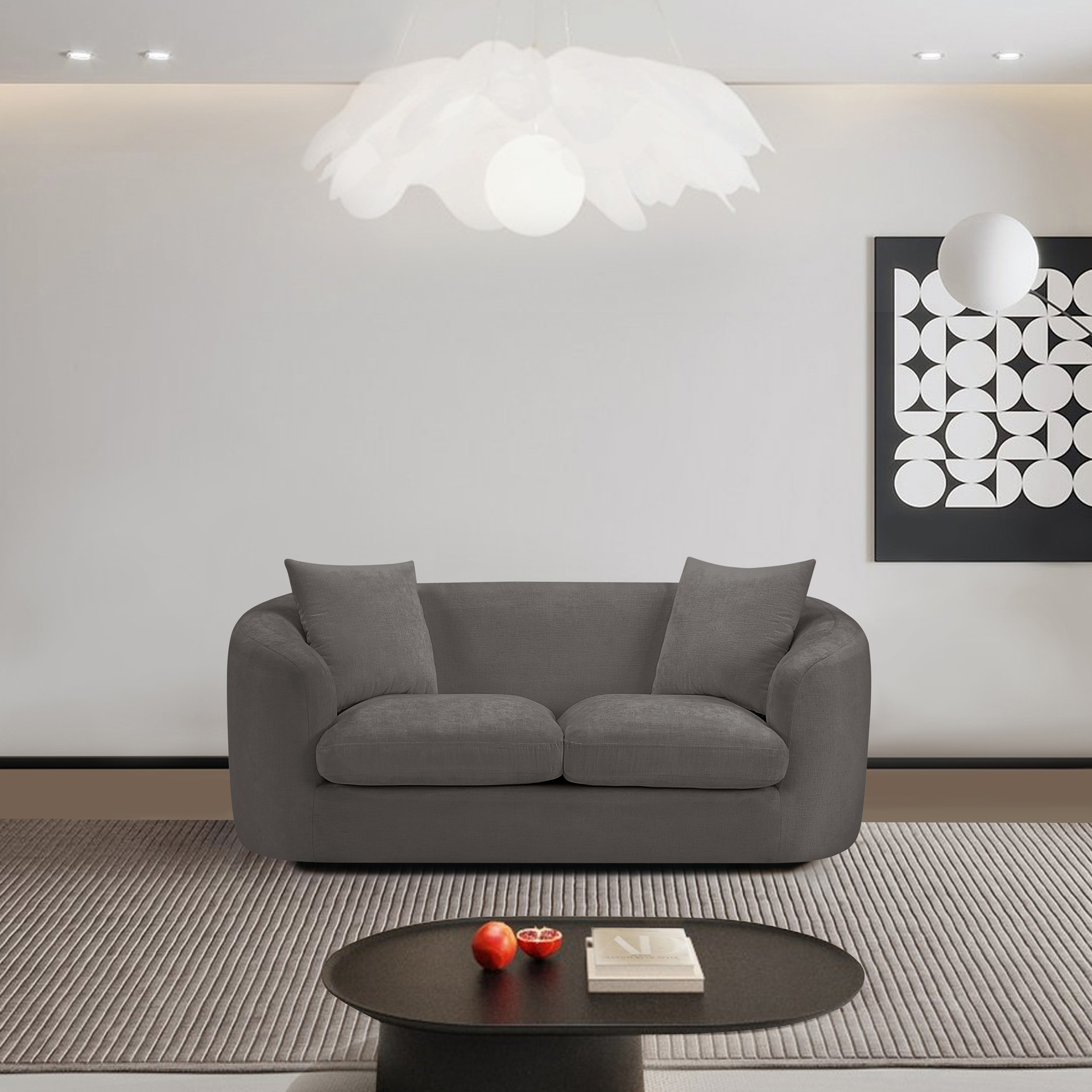 Discover the sophisticated charm of the Penelope loveseat, crafted in luxurious soft grey chenille fabric. This elegant piece features a solid wood inner frame for durability and a contemporary design that elevates any space.