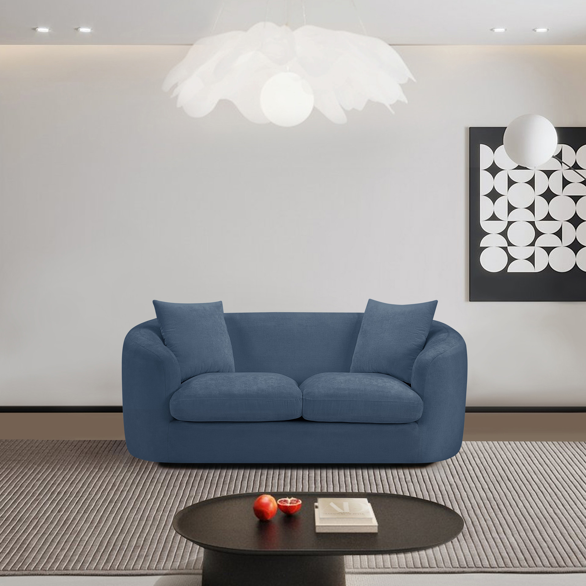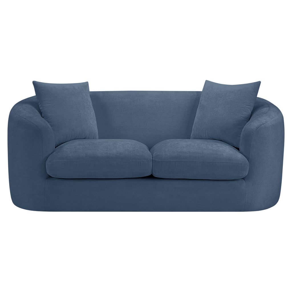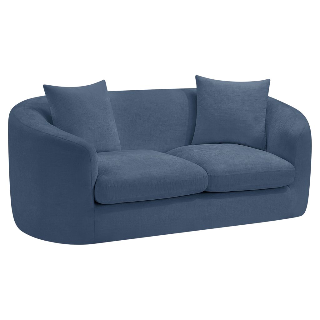 Discover the sophisticated charm of the Penelope loveseat, crafted in luxurious soft blue chenille fabric. This elegant piece features a solid wood inner frame for durability and a contemporary design that elevates any space.