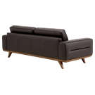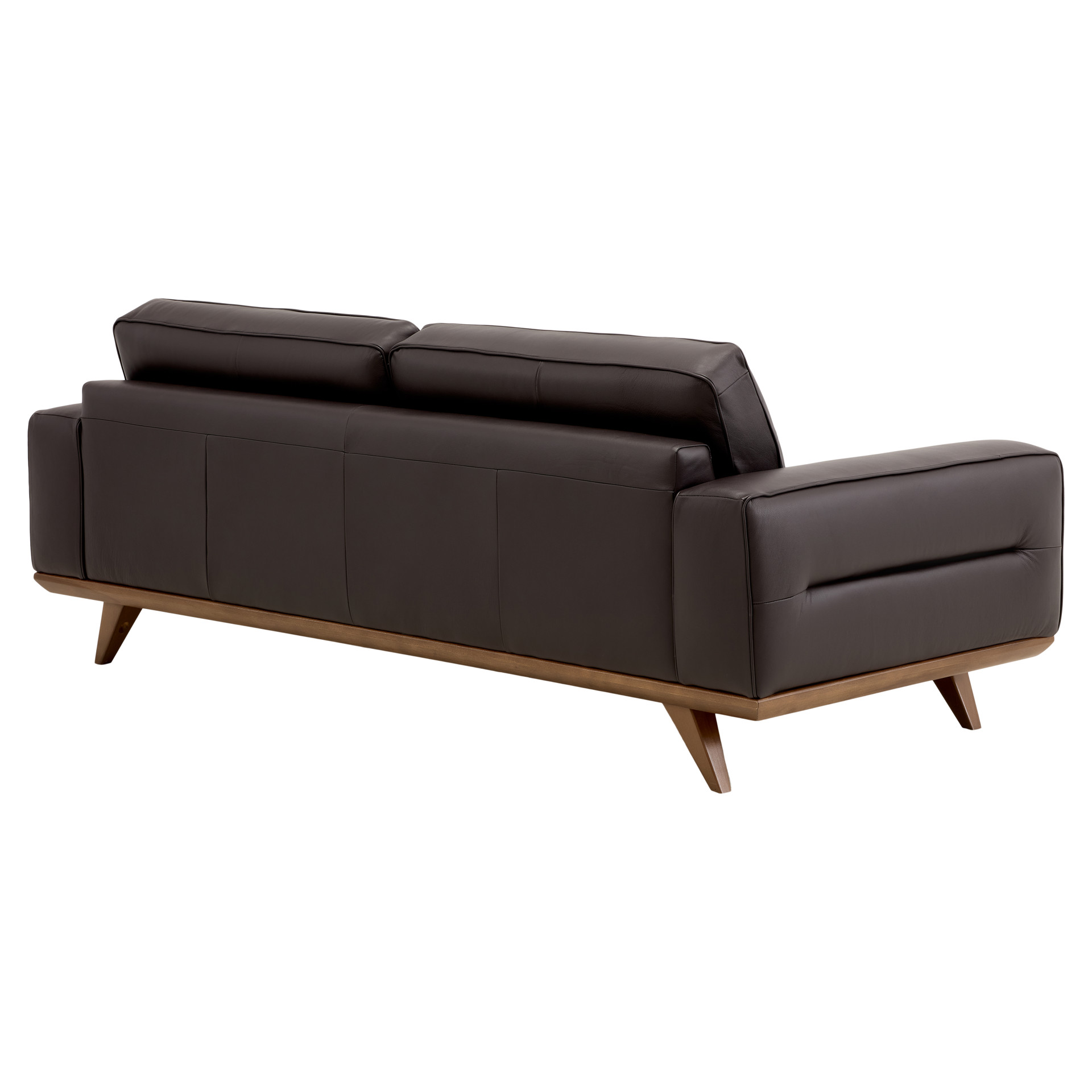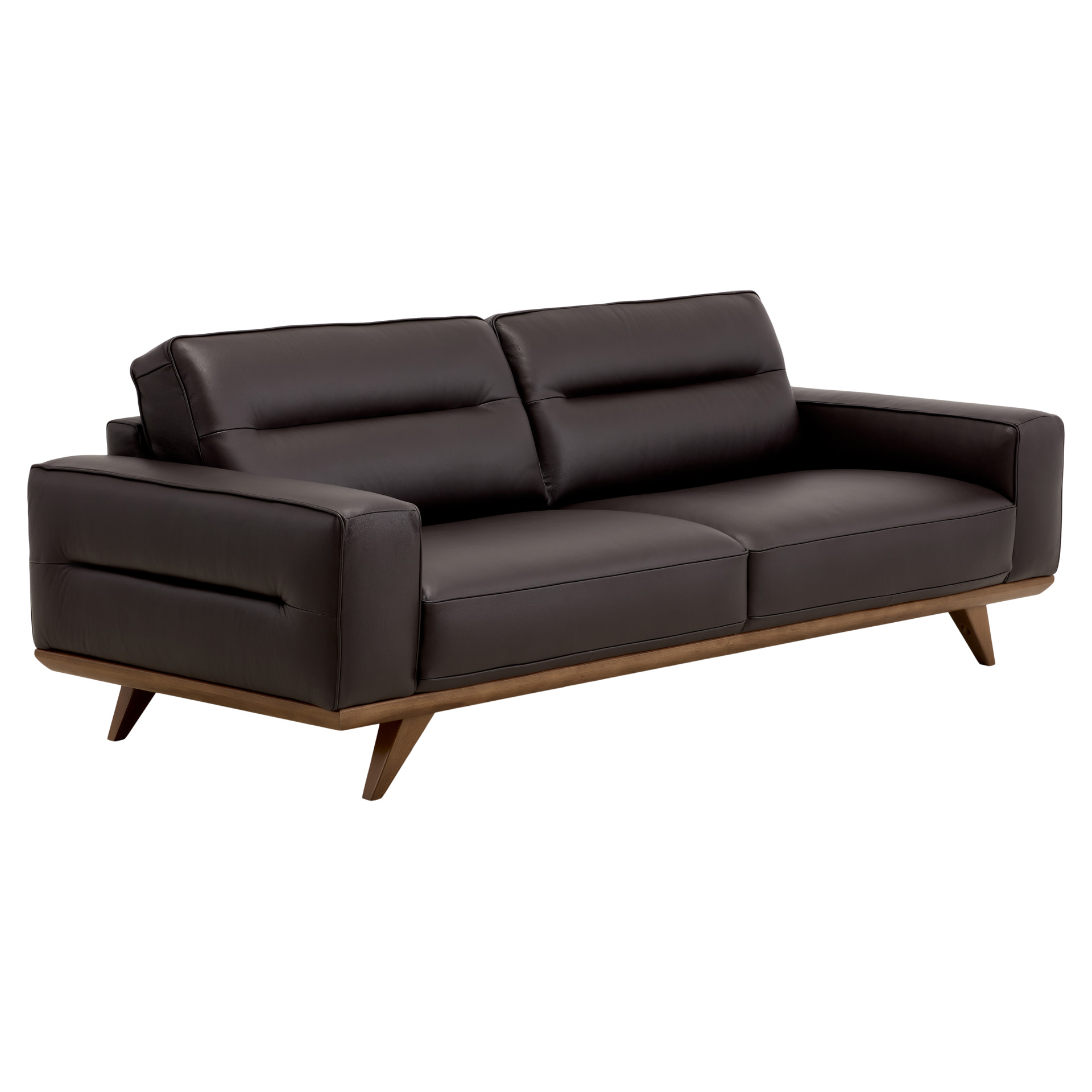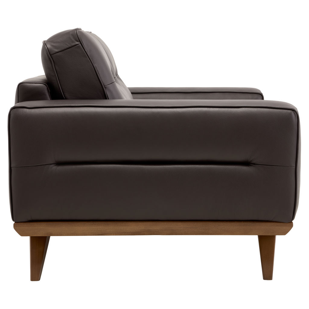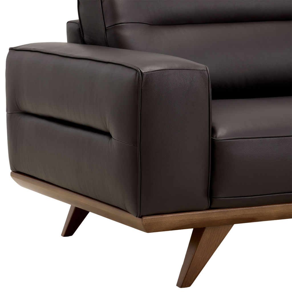 Its clean lines and wooden base create a warm contrast, while its generously padded cushions offer pleasant support for everyday use.