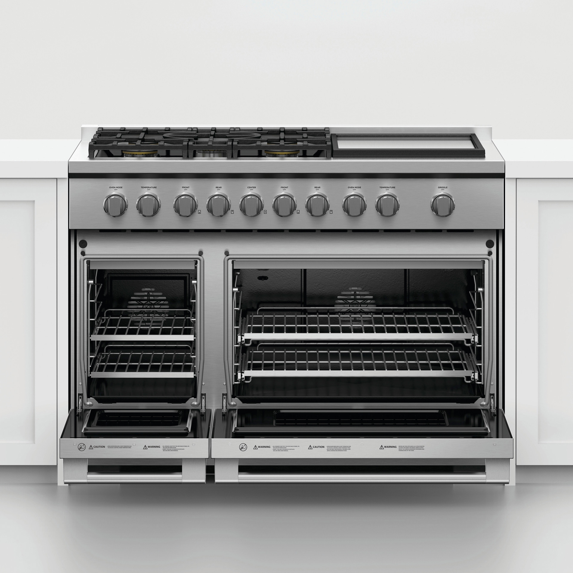 This range has craftsmanship down to the last detail, with genuine stainless steel, cast iron trivets and beautifully weighted, halo-lit dials. Each cavity features incandescent lights and full extension telescoping stands. From the sturdy legs to the powerful cooktop, this range is built to last.