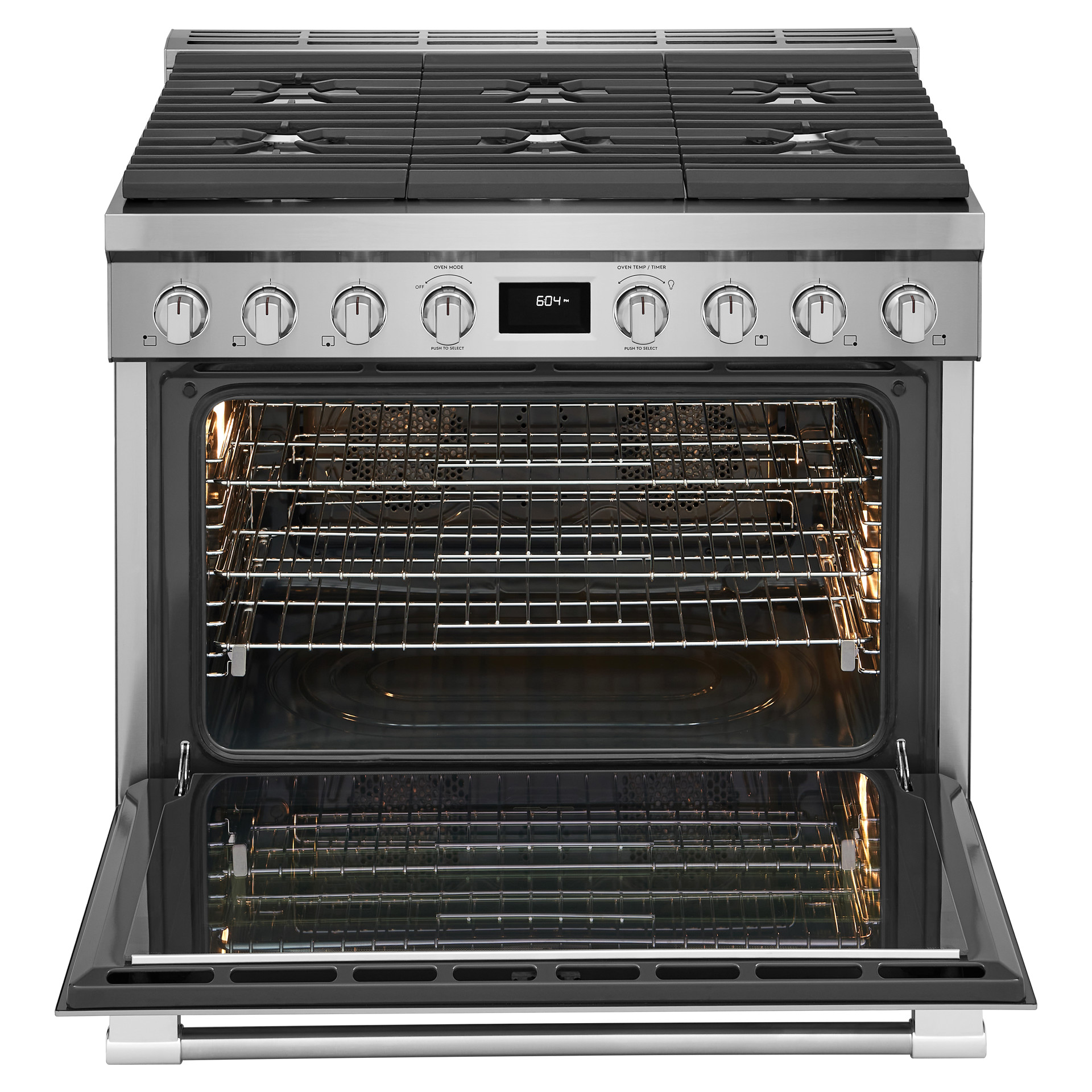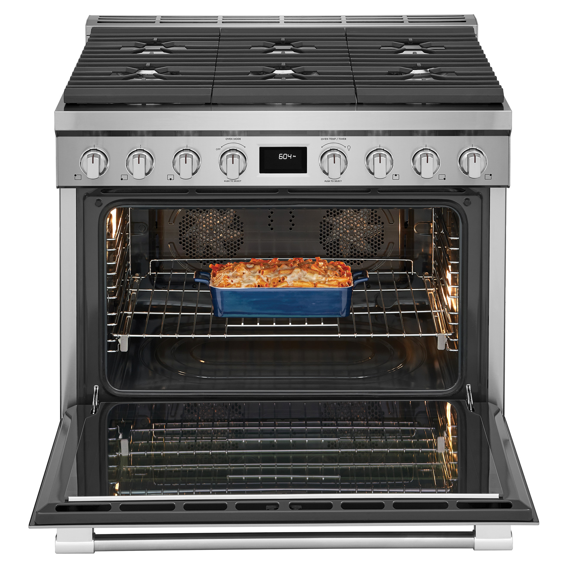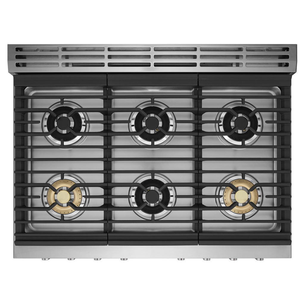 Six burner cooktop provides ultimate cooking flexibility with dual power burners that quickly go from boil to simmer.