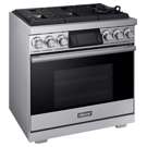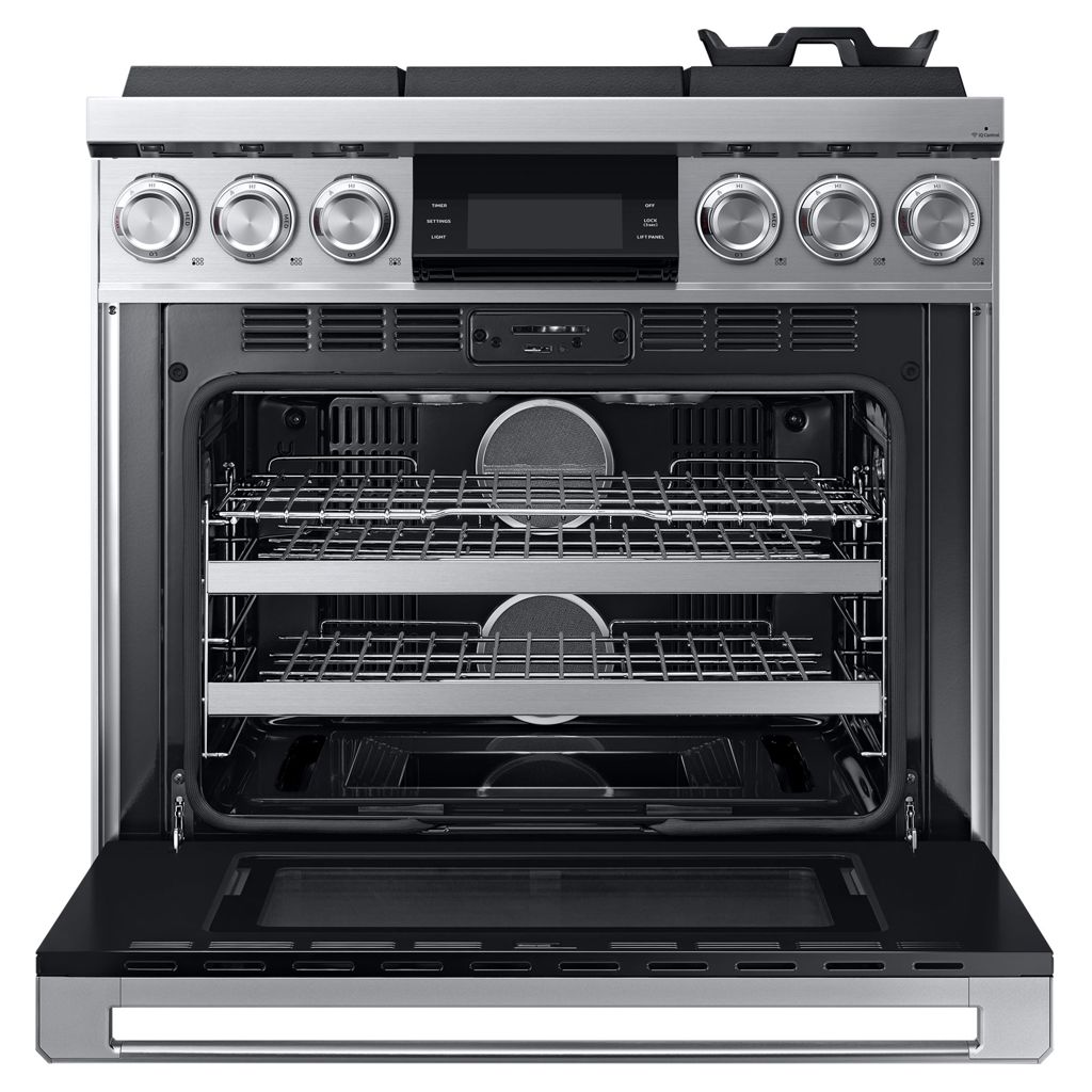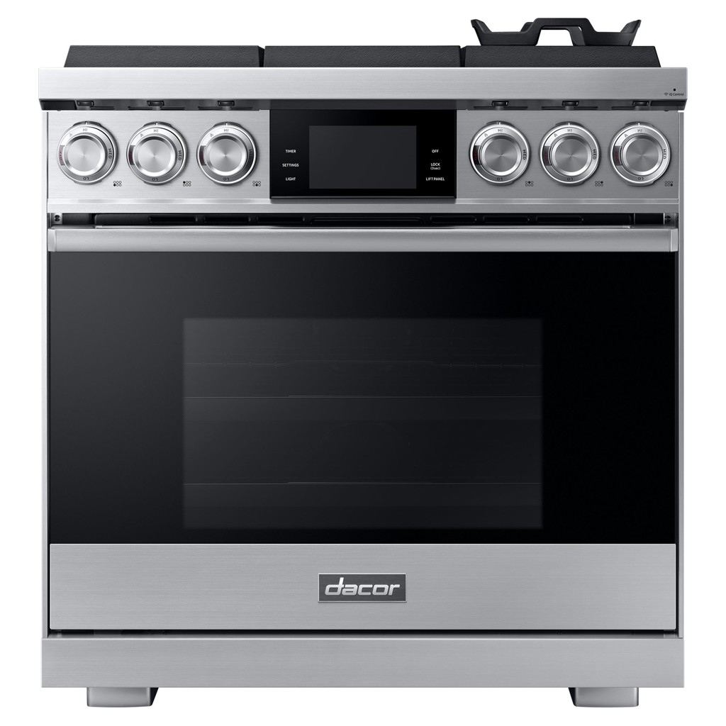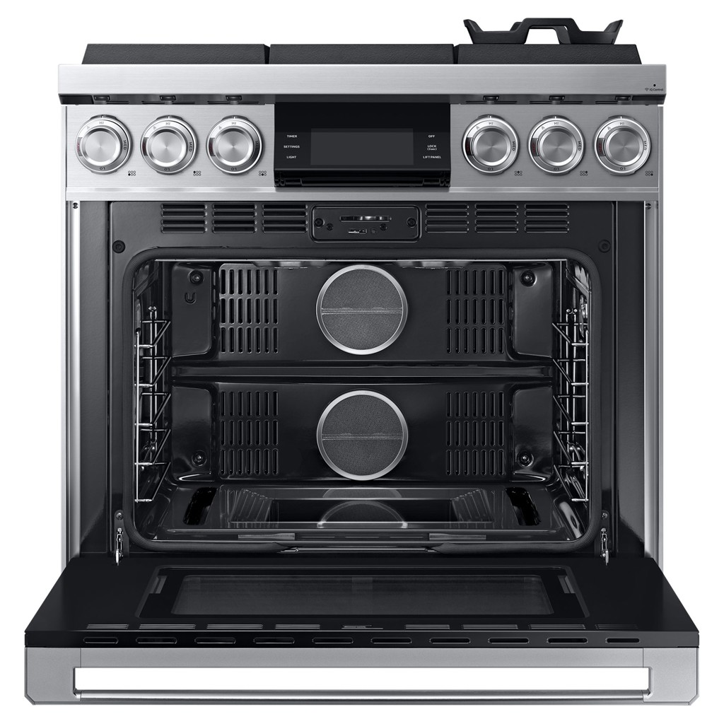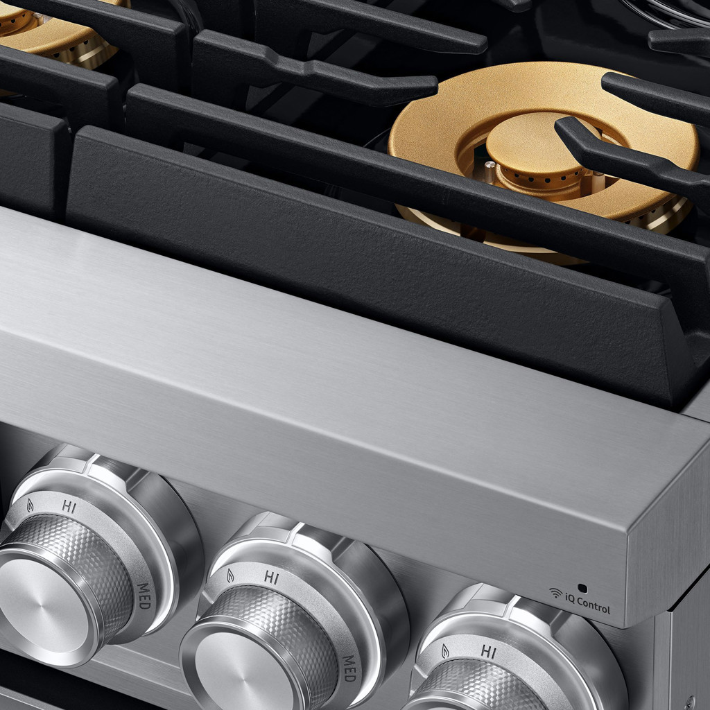 Showcasing a leading powerhouse of gas ranges with a more contemporary design, the 36” Gas Pro Range features 116K total BTU cooktop, 18K BTU dual infrared broilers, Wi-Fi capabilities, and a dual 3-Part convection system.