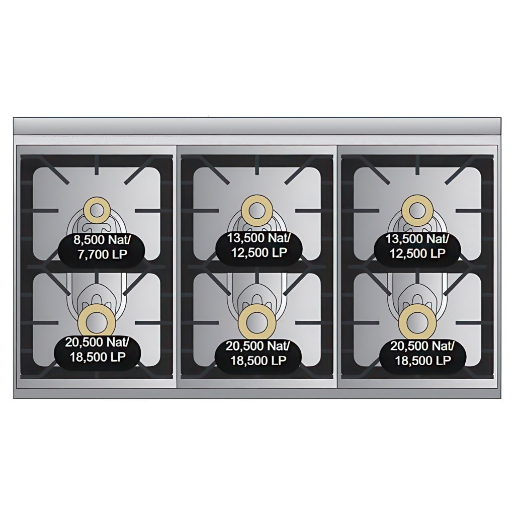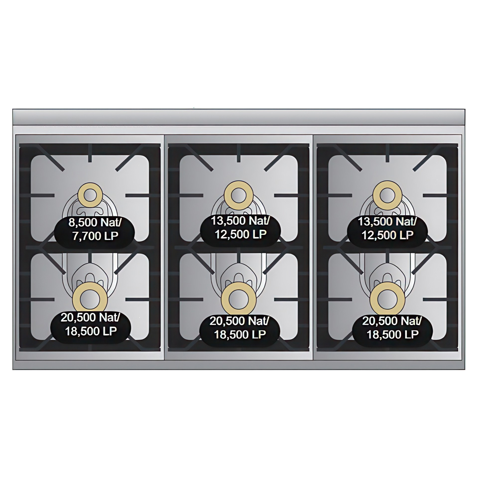High-performance burners offer fast boiling times and gentle simmering with high burner outputs from 20,000 BTU to 8,500 BTU.