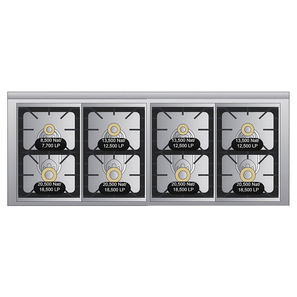 This 66” dual-fuel range features 8 sealed gas burners that offer high performance for fast boiling times and a gentle simmering flame to help you get your sauces right.
