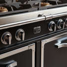This range also features electronic single point, spark ignition and re-ignition on all burners, porcelain-coated cast-iron burner grates and polished chrome die-cast knobs.