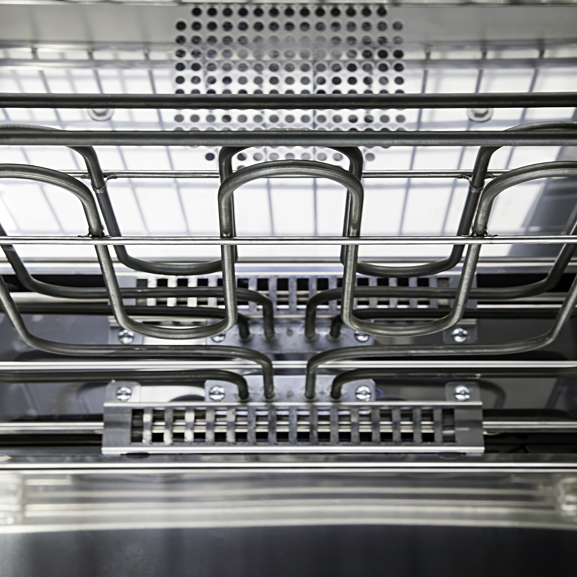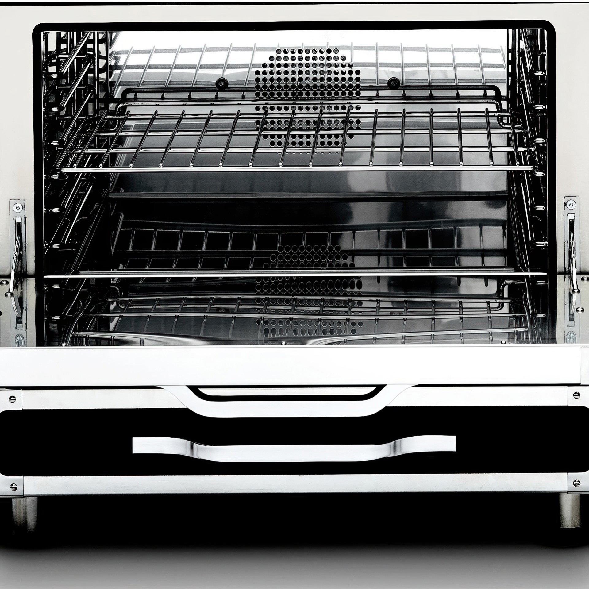 This range is equipped with two ovens, with a capacity of 3.8 cu. ft. in each, both with stainless steel cavities for easy cleaning.