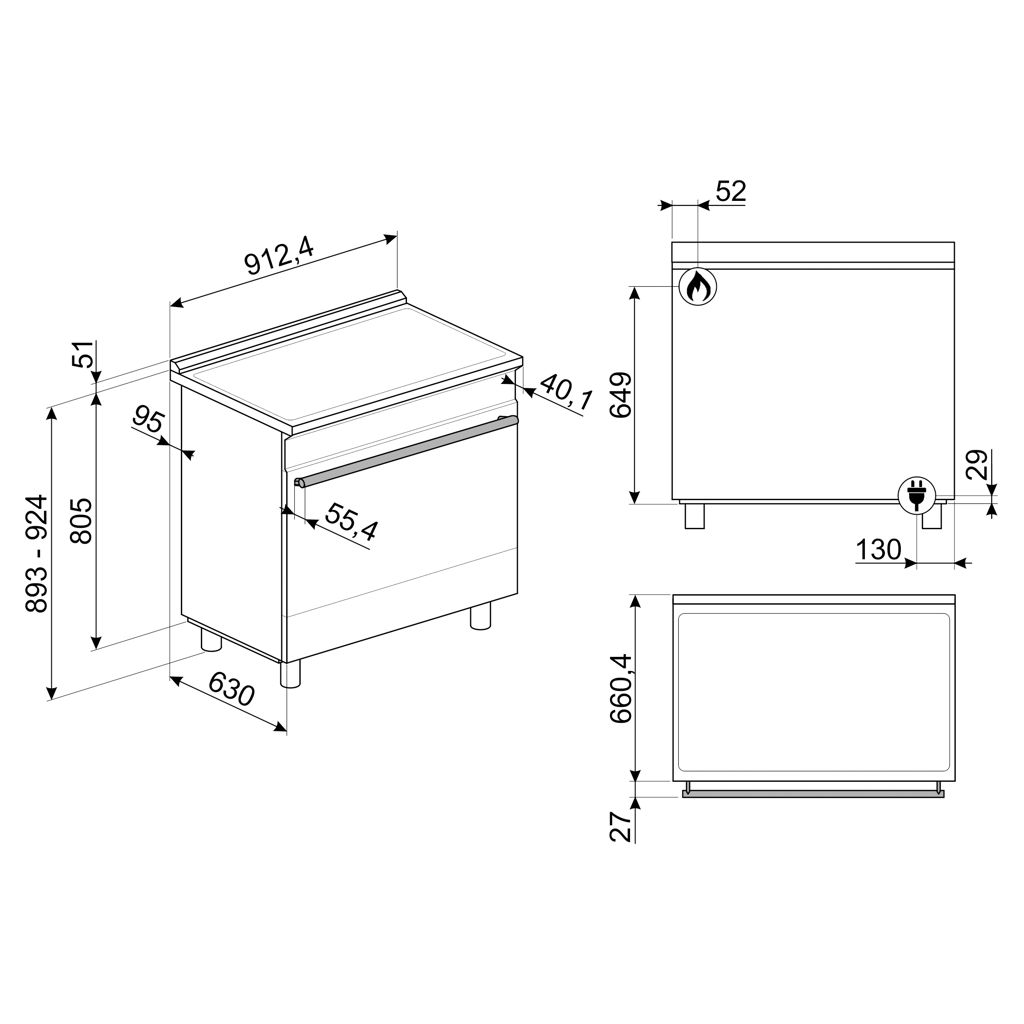 36" Dual Fuel Professional Range with True Convection Smeg SPR36UGMX