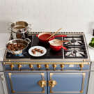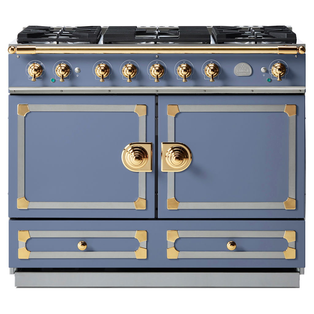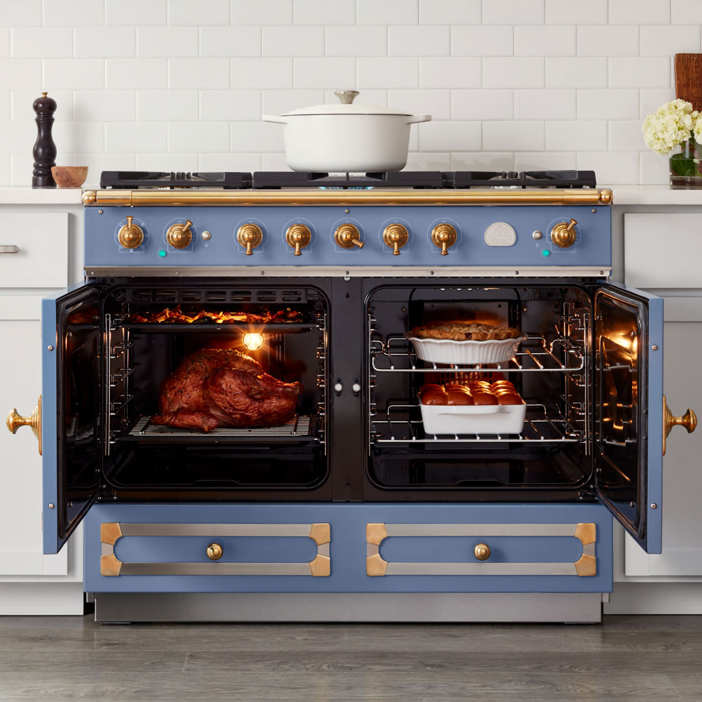This model features a dual electric convection oven setup, allowing you to prepare two dishes at once under ideal conditions, ensuring even, perfectly controlled cooking. The gas cooktop is equipped with five sealed brass burners, including an ultra-powerful central burner (17,500 BTU) and a low-heat simmer burner (6,000 BTU) for delicate tasks, offering a wide and versatile heat range.