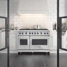- Exclusive Combination System: A powerful 30,000 BTU U-shaped burner paired with an infrared broiler and SureSpark™ ignition (plus a 15,000 BTU burner in the left oven on 48” models).