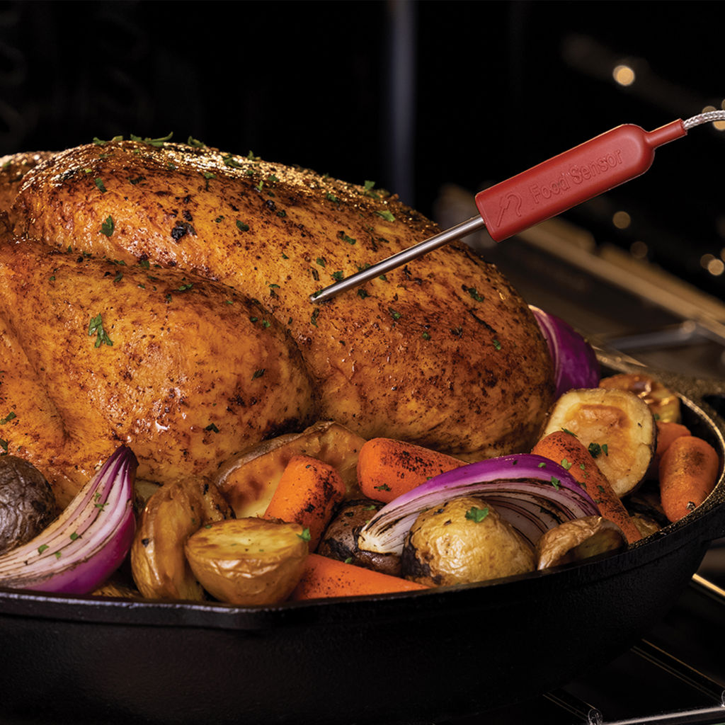The Temperature Probe monitors and alerts when the desired finished cooking temperature has been reached.