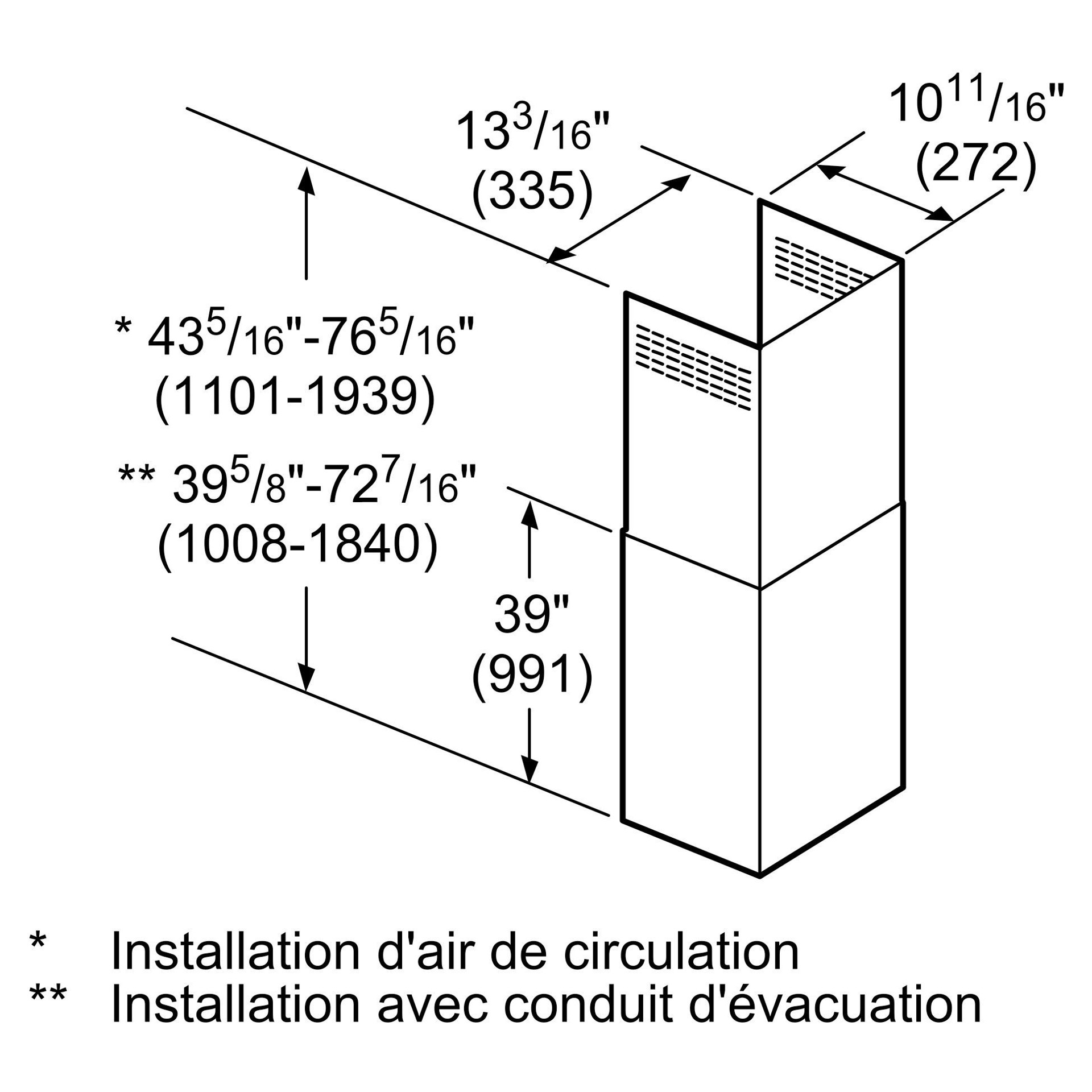 Wall-mounted extension kit for chimney hood - available for 9' and 12' ceilings.