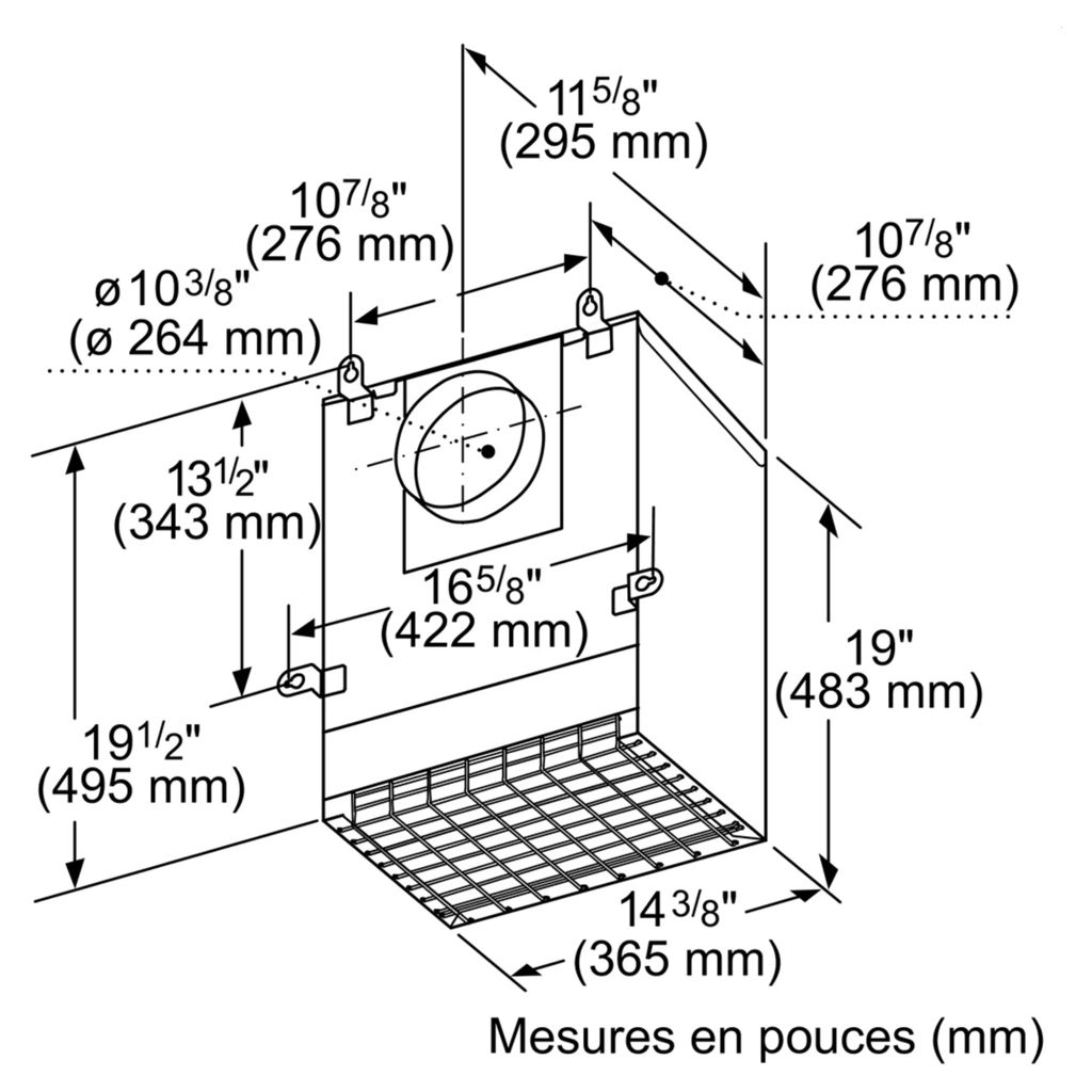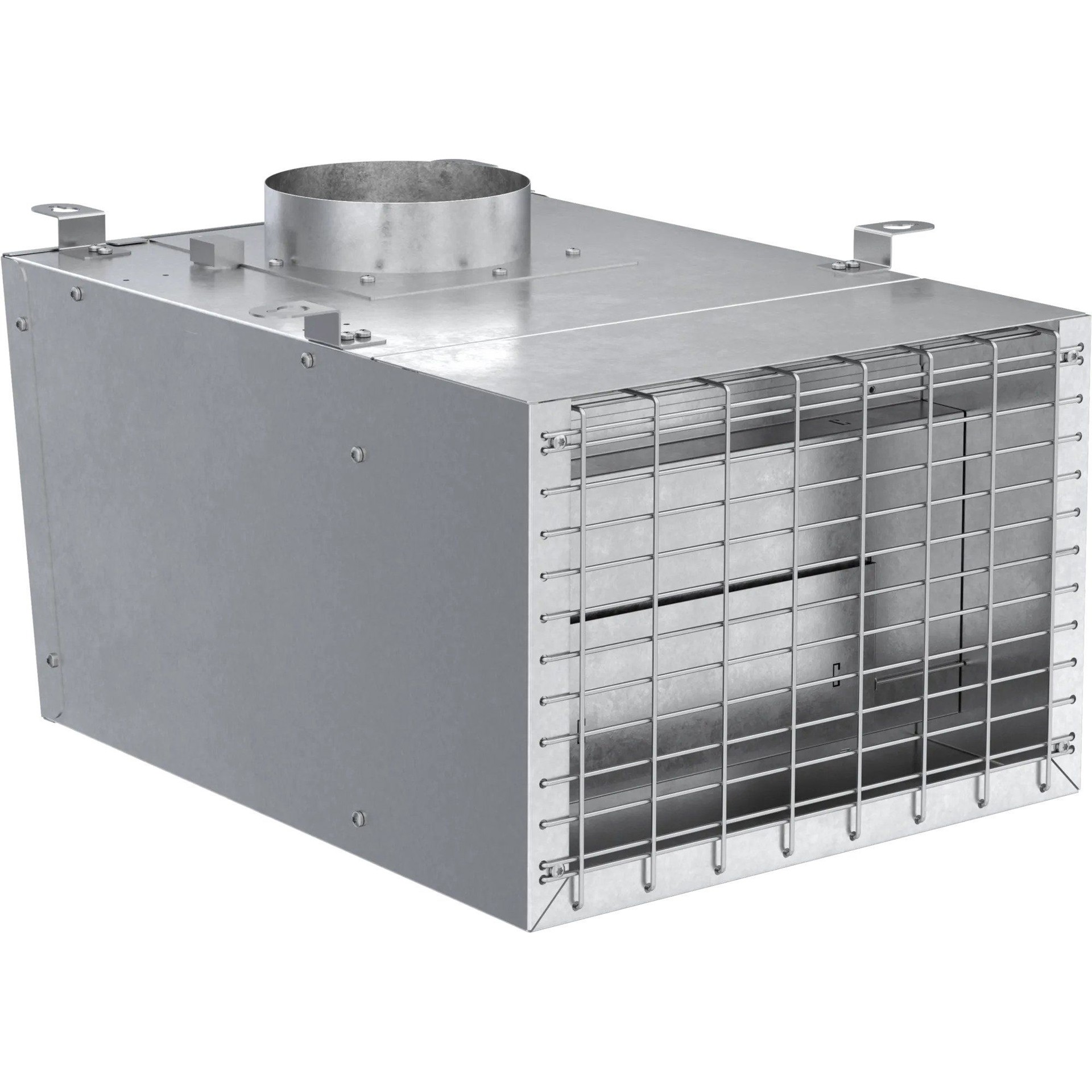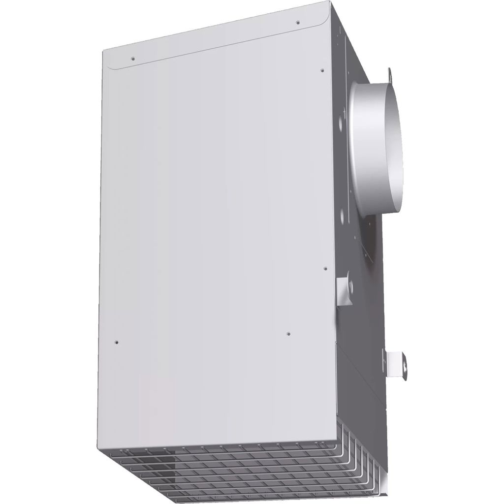 It is designed to be mounted outside the downdraft hood; it is installed on the exterior of the house, either on a wall or on the roof, depending on the application.