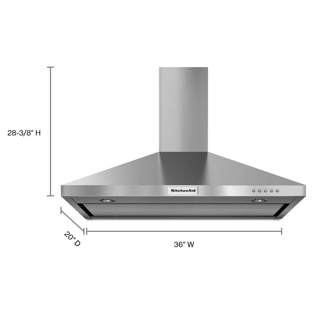 36" Wall Mount Chimney Range Hood KitchenAid KVWB406DSS