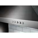 The power of this 36-inch hood effectively evacuates most cooking surfaces. One of the top-of-the-line features of this hood is the automatic speed detection that adjusts the fan speed to help protect cabinets from steam, grease and potentially harmful odours.