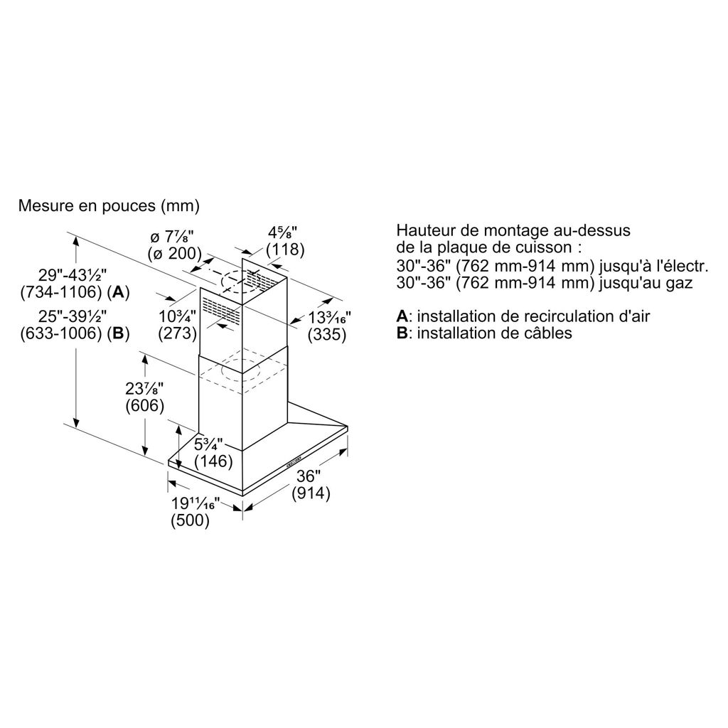 36" Wall Mount Chimney Hood