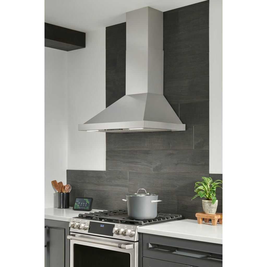 The distinctive T-shape chimney style hood offers a modern touch with powerful ventilation that can match the challenges of any home chef while maintaining a innovative design that fits into almost any kitchen.