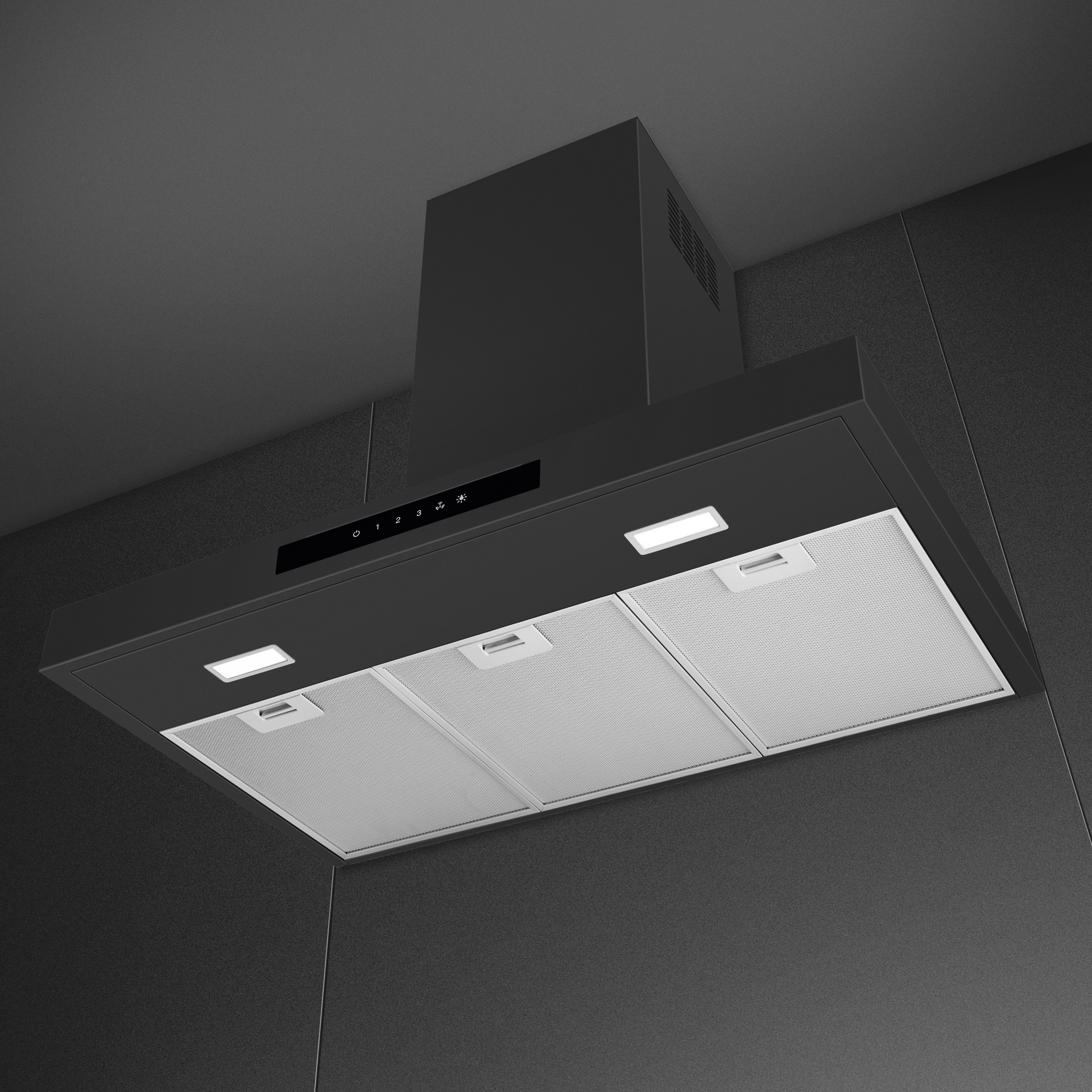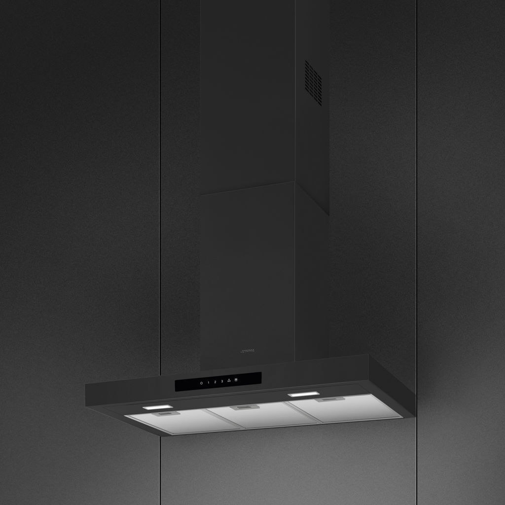 Made in Italy, SMEG's 30” T-shaped flat hood combines sleek design with powerful performance. Its matte black finish and minimalist profile fit perfectly into any modern kitchen, especially as a complement to SMEG appliances.