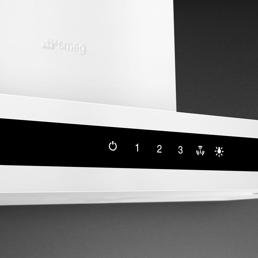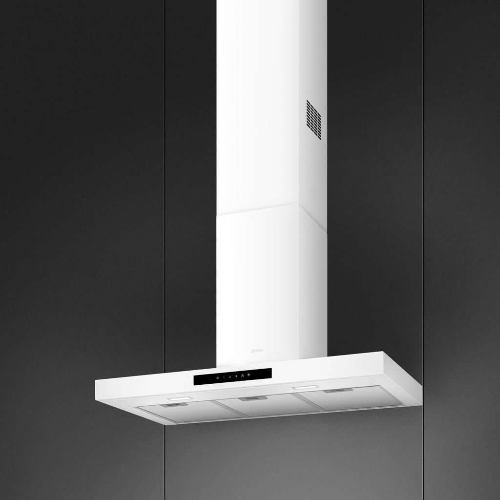 This Smeg range hood combines sleek contemporary design with powerful performance. Its clean white finish blends effortlessly into any kitchen style, from ultra-modern to classic.