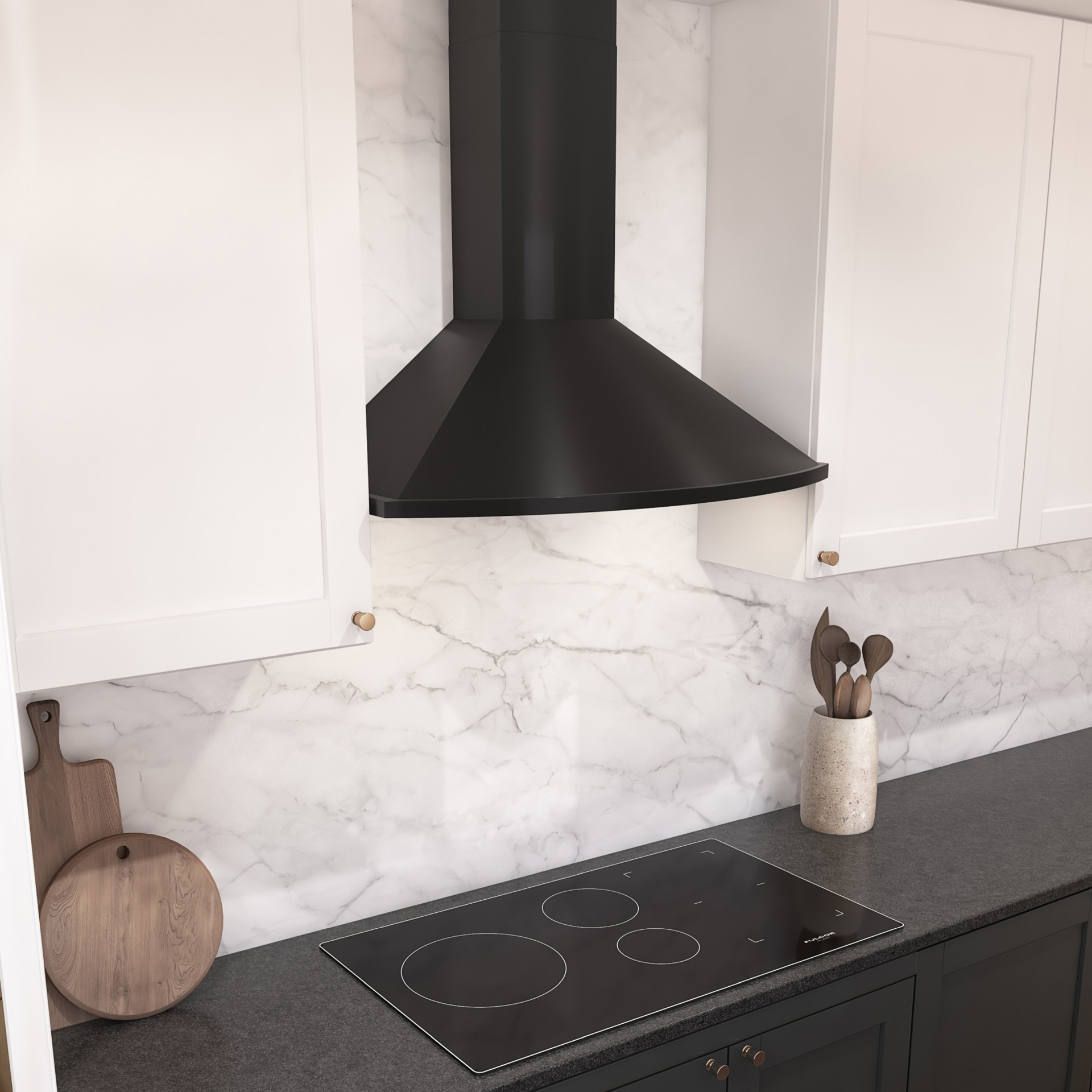 The Savona’s semi-circular surfaces highlight its European-inspired design with delicate plays of light and shadow. Available in stainless steel, powder-coated black, white, and black stainless steel, an elegant alternative to traditional stainless steel.