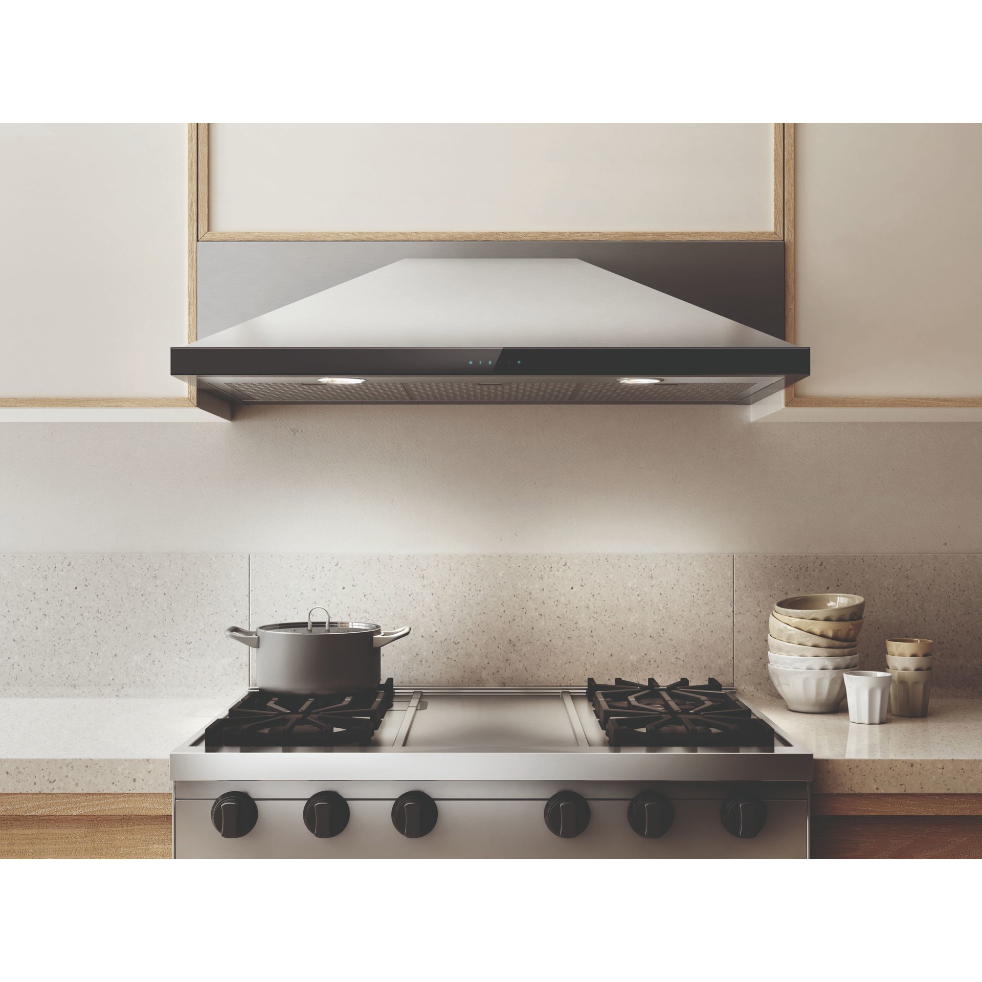 Modena offers a classic chimney design look for under-cabinet installations, with a striking 9" tall pyramid shape. Modena also offers premium features not commonly found in under-cabinet hoods, including a 520 CFM blower, dimmable LED lighting, stainless steel micro-hole filters and easy-to-use glass capacitive touch controls that offer convenience and safety.